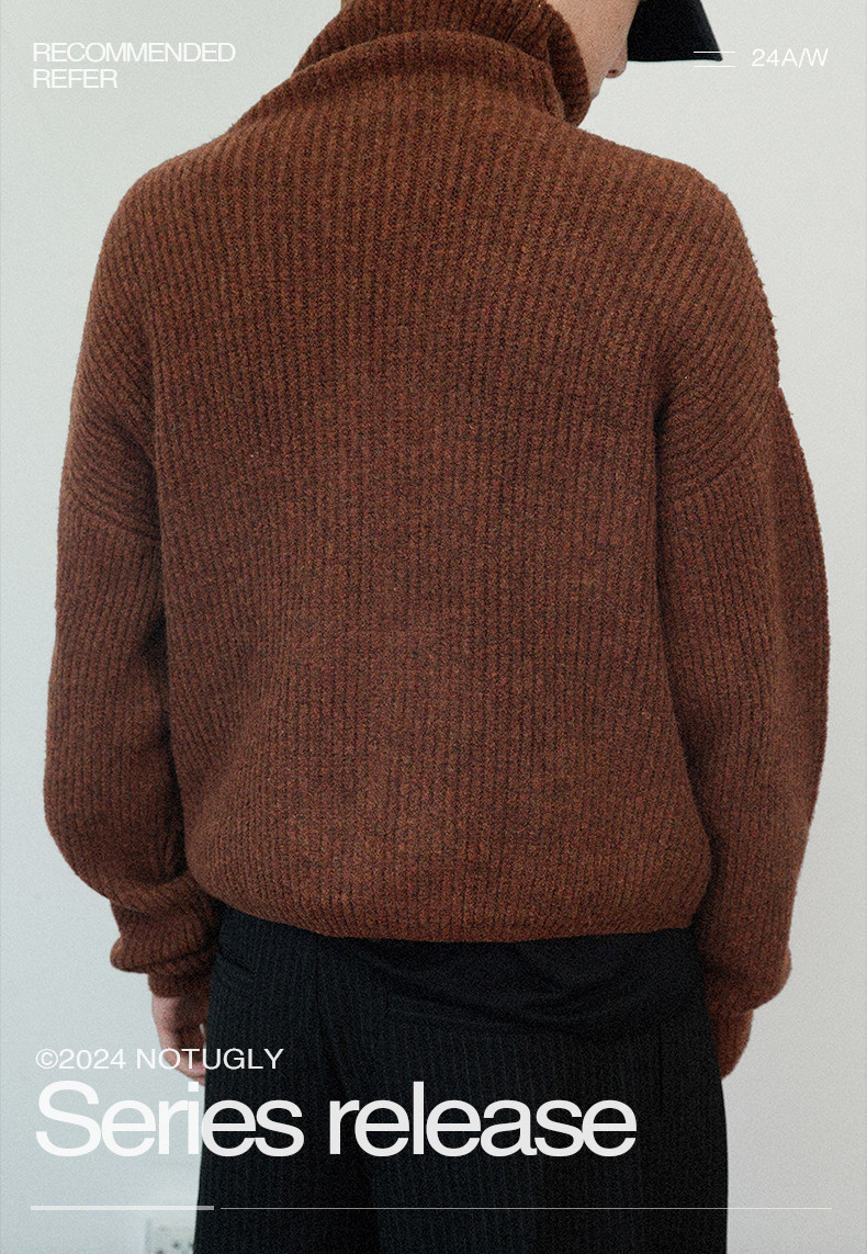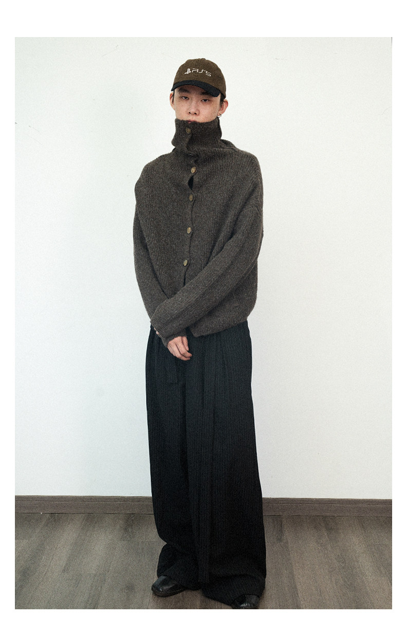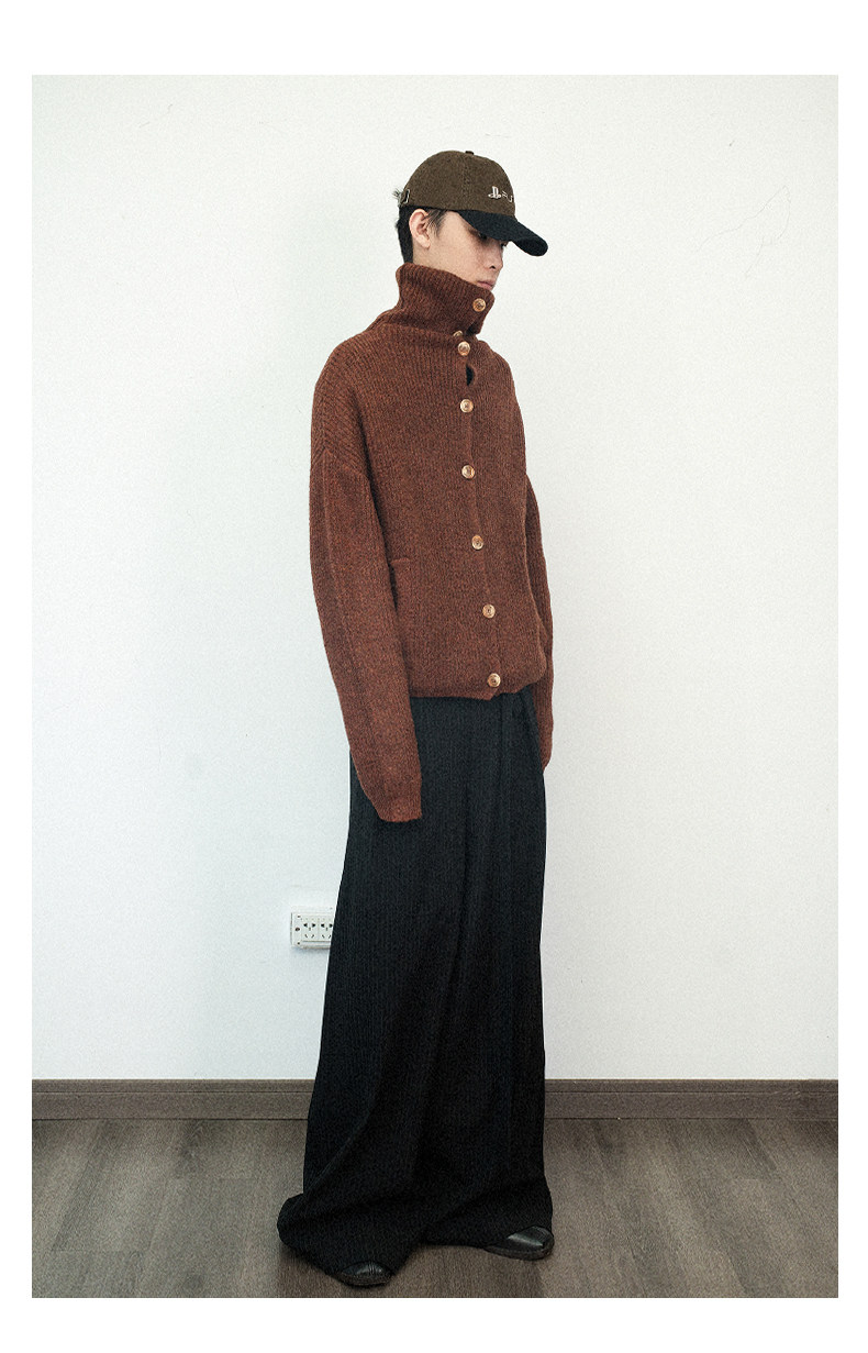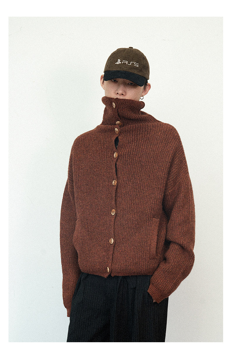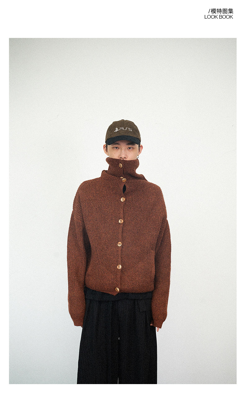 Not Ugly 24Aw Mottled High-Neck Cuffed Wool Vintage Multi-Button Short Knit Sweater Cardigan