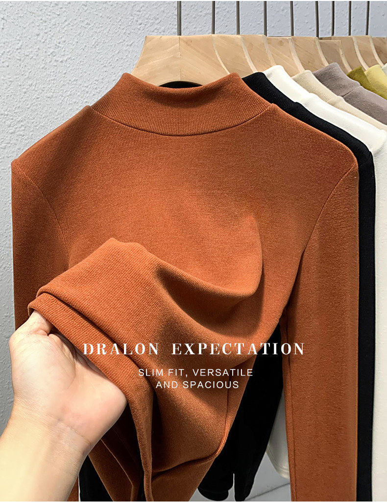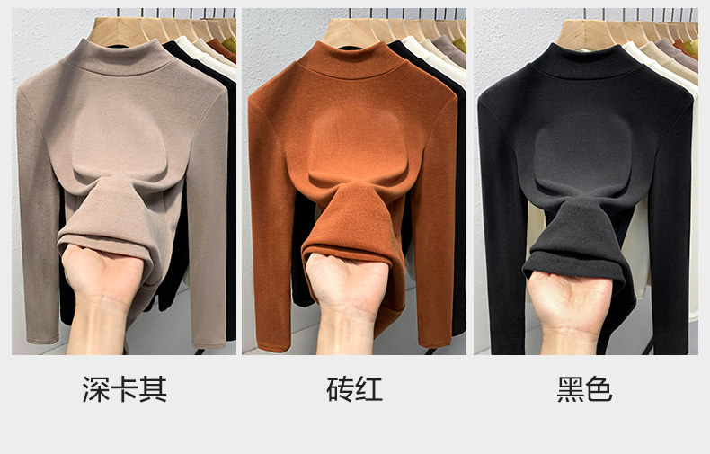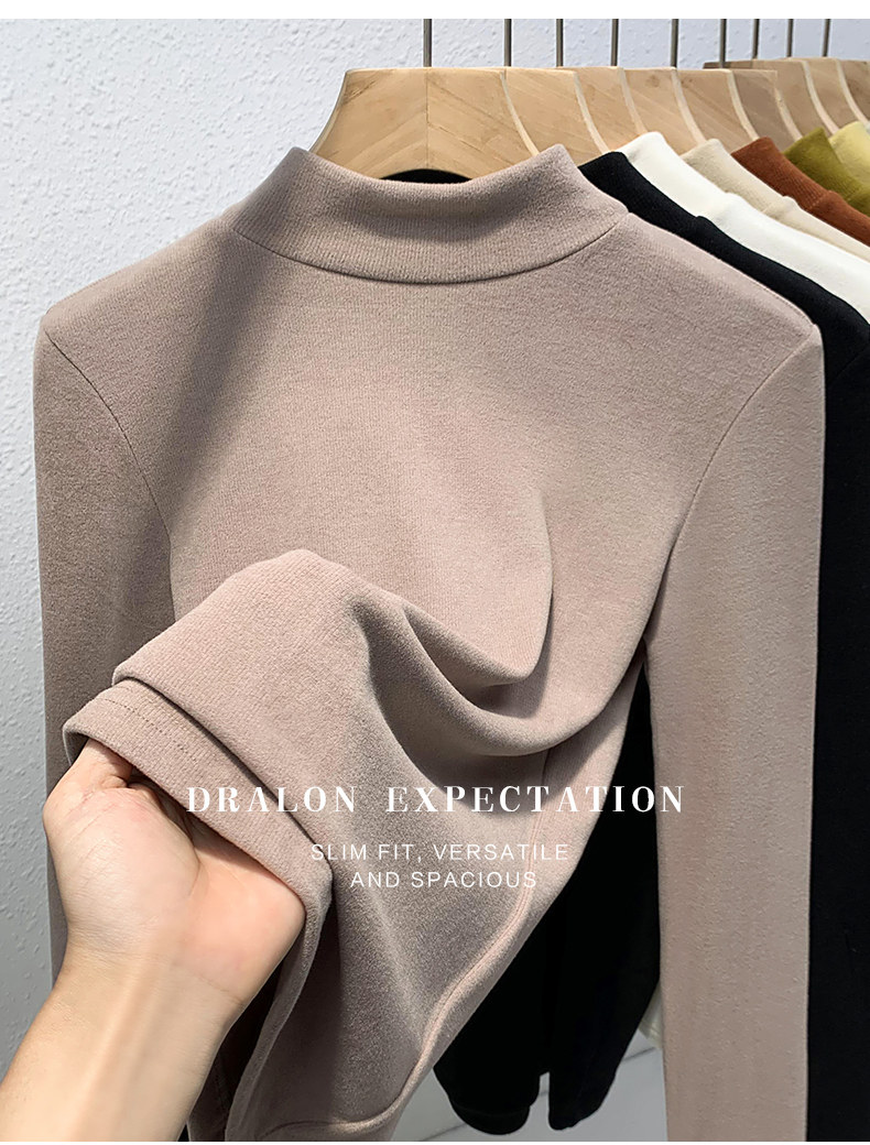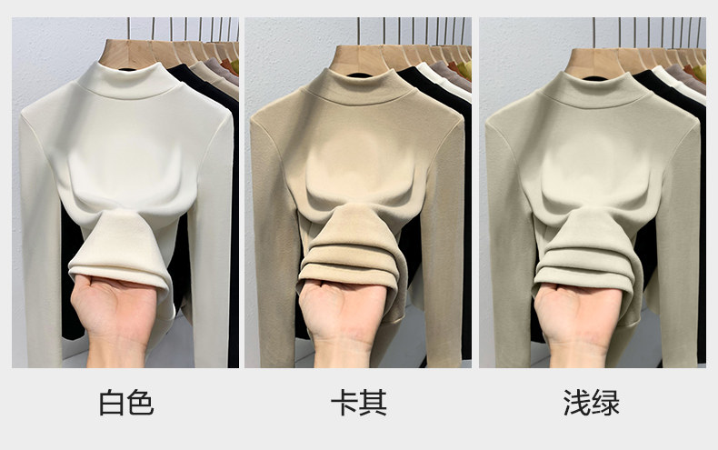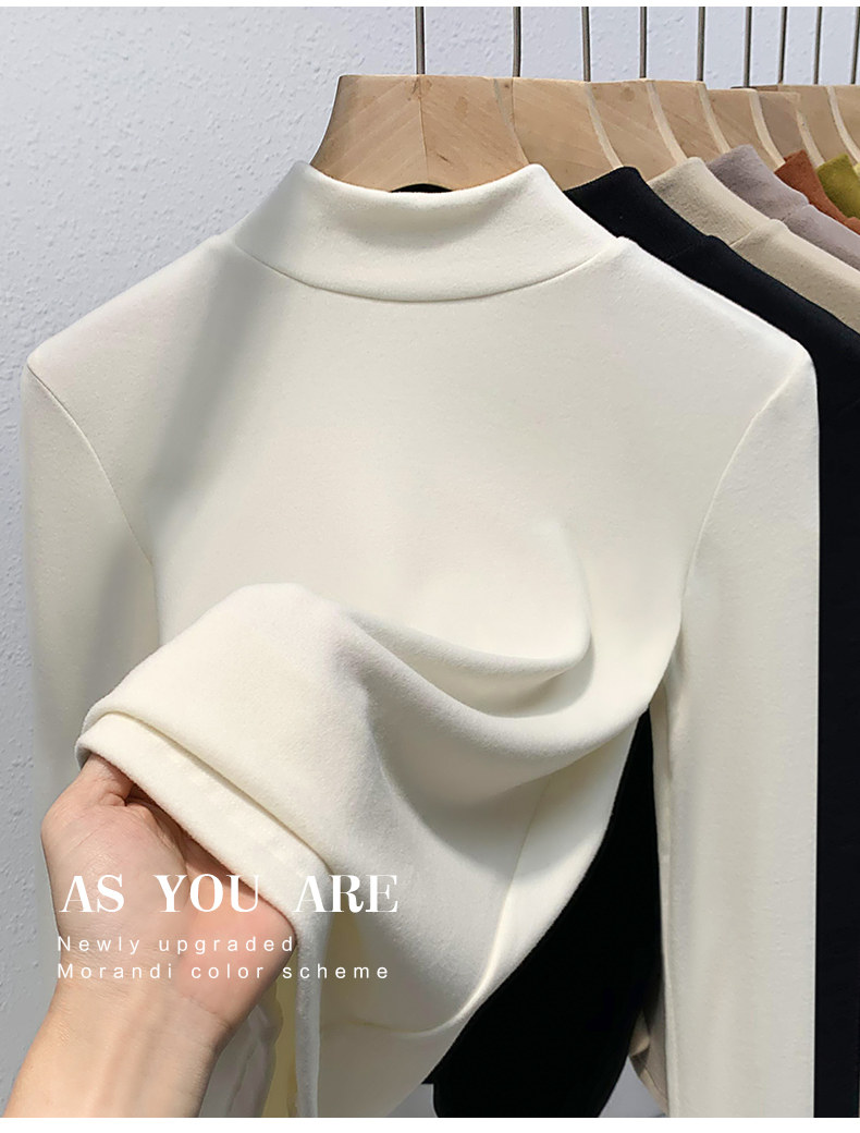 Catman De Rong Half-High Collar Base Layer Shirt 2025 New Women's Autumn and Winter Inner Wear Double-Sided Long-Sleeve Thermal White Warm Clothing