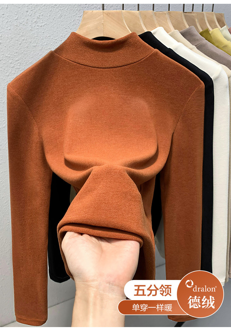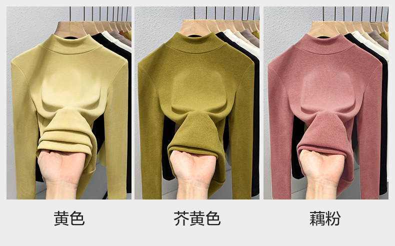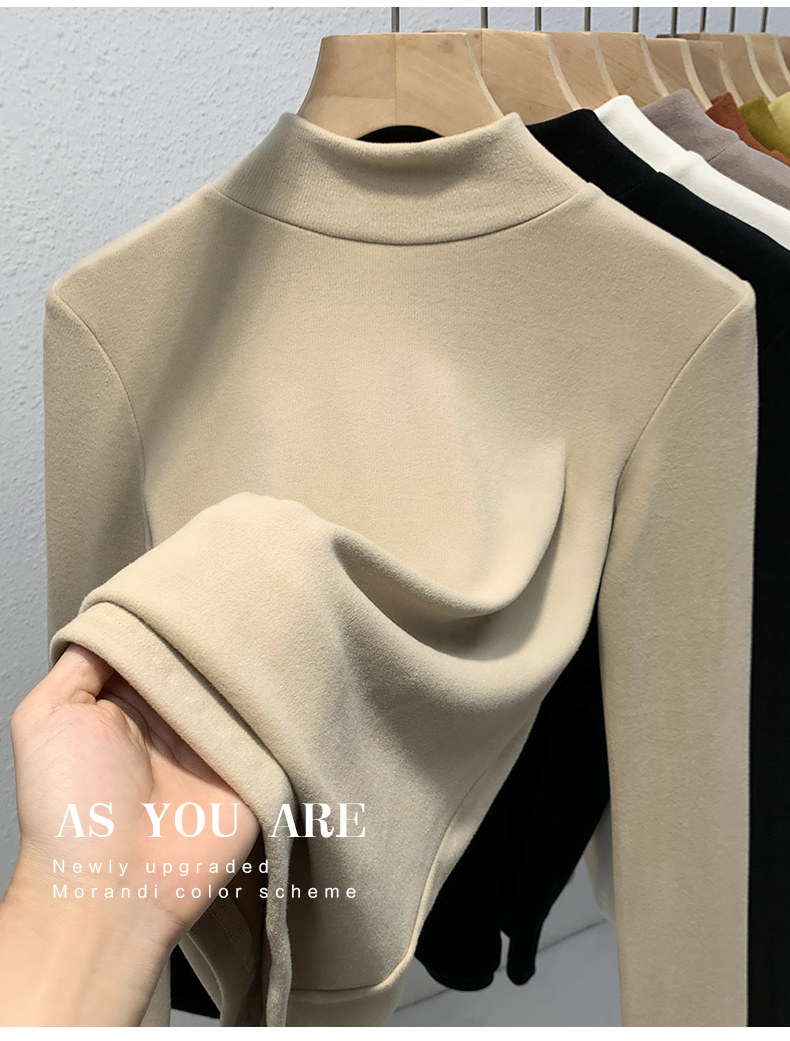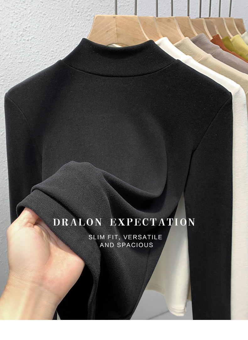 Catman De Rong Half-High Collar Base Layer Shirt 2025 New Women's Autumn and Winter Inner Wear Double-Sided Long-Sleeve Thermal White Warm Clothing