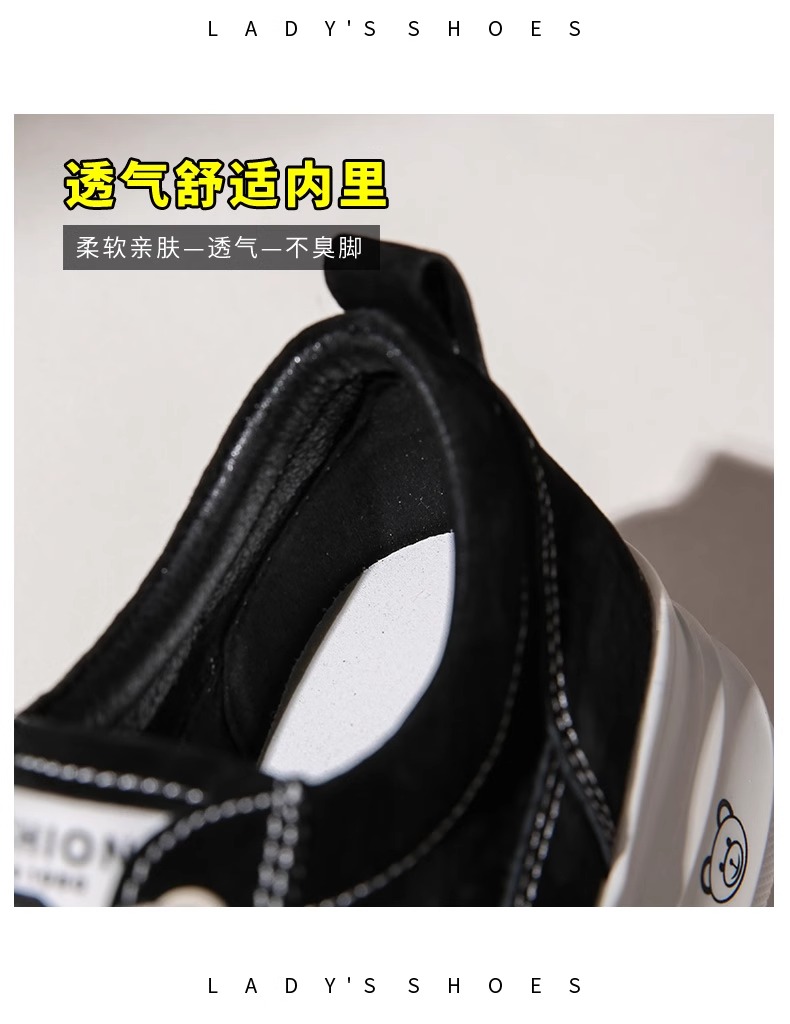 Hong Kong British Retro Matte Sneakers for Women 2025 Spring and Autumn New Thick-Soled Versatile Korean Style Genuine Leather Casual Sports Shoes