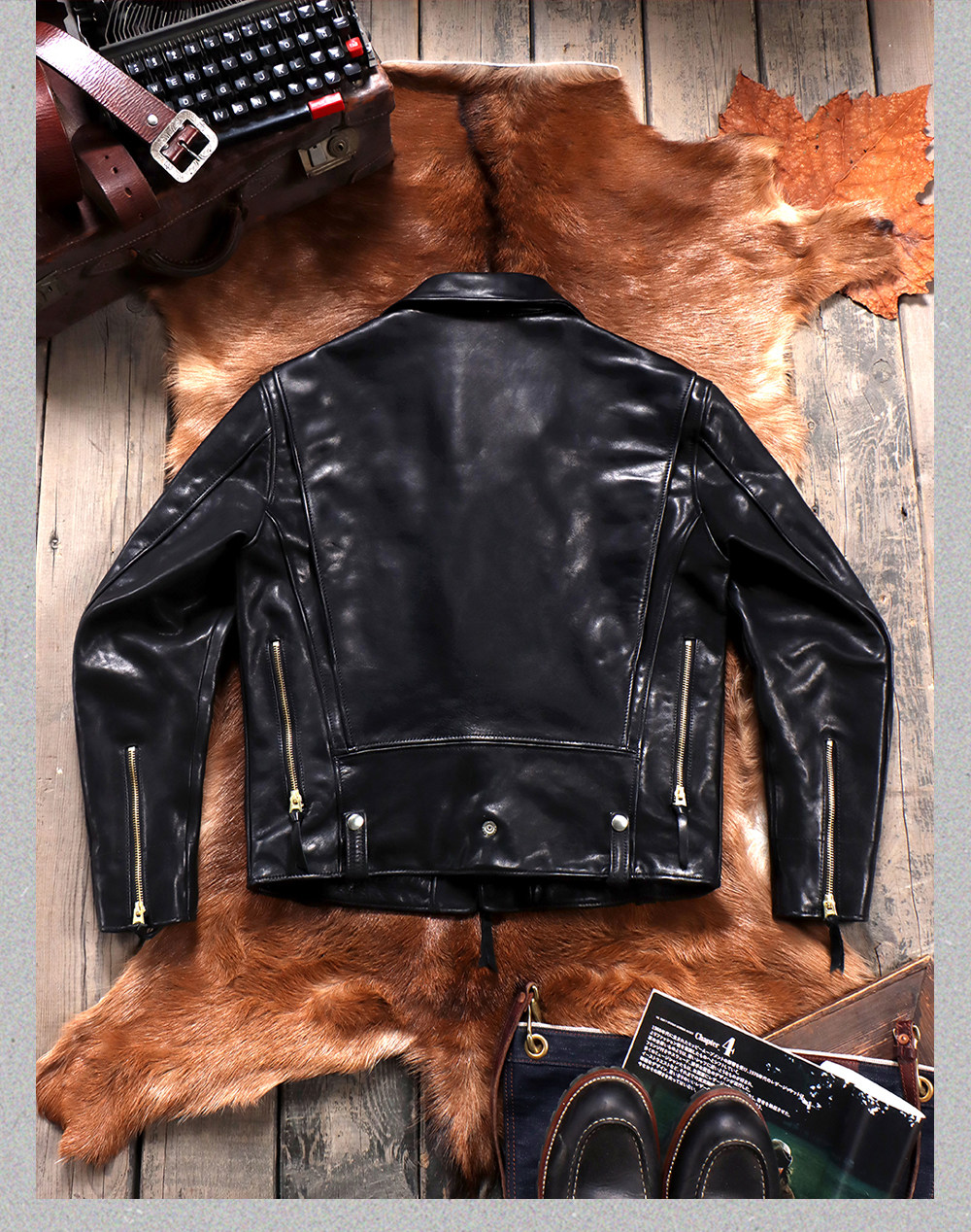 Graduation Edition 1.6mm Italian-Made Uncoated Water-Dyed Vegetable-Tanned Calfskin Vintage J24 Genuine Leather Men's Motorcycle Leather Jacket