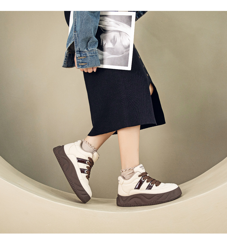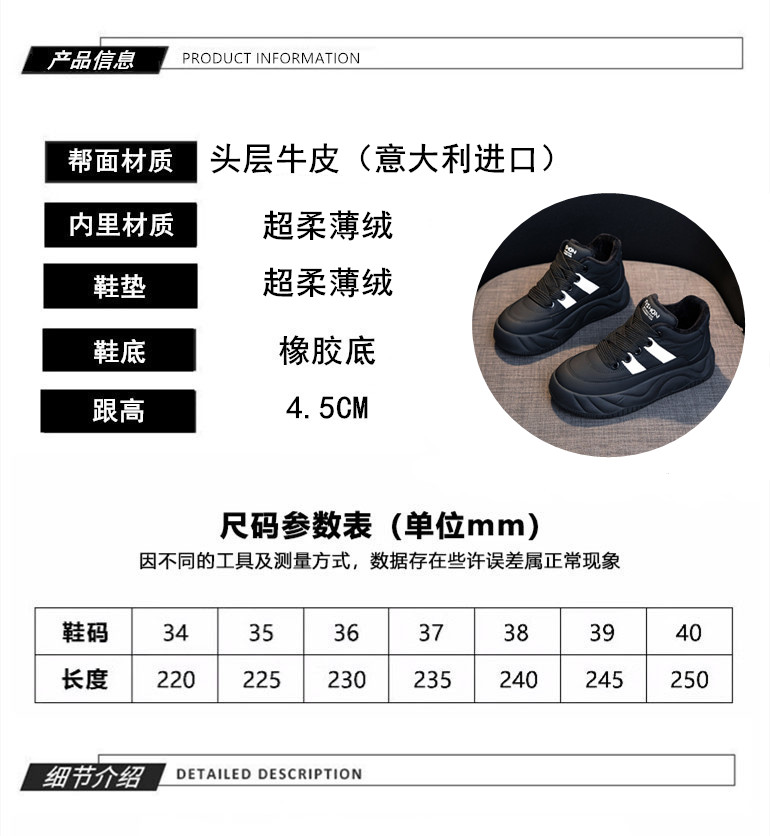 Hong Kong Bread Shoes High-Top Shoes for Women 2025 Autumn and Winter Hot-Selling Genuine Leather Thick-Soled Sneakers Sports Casual Shoes Warm Cotton Shoes