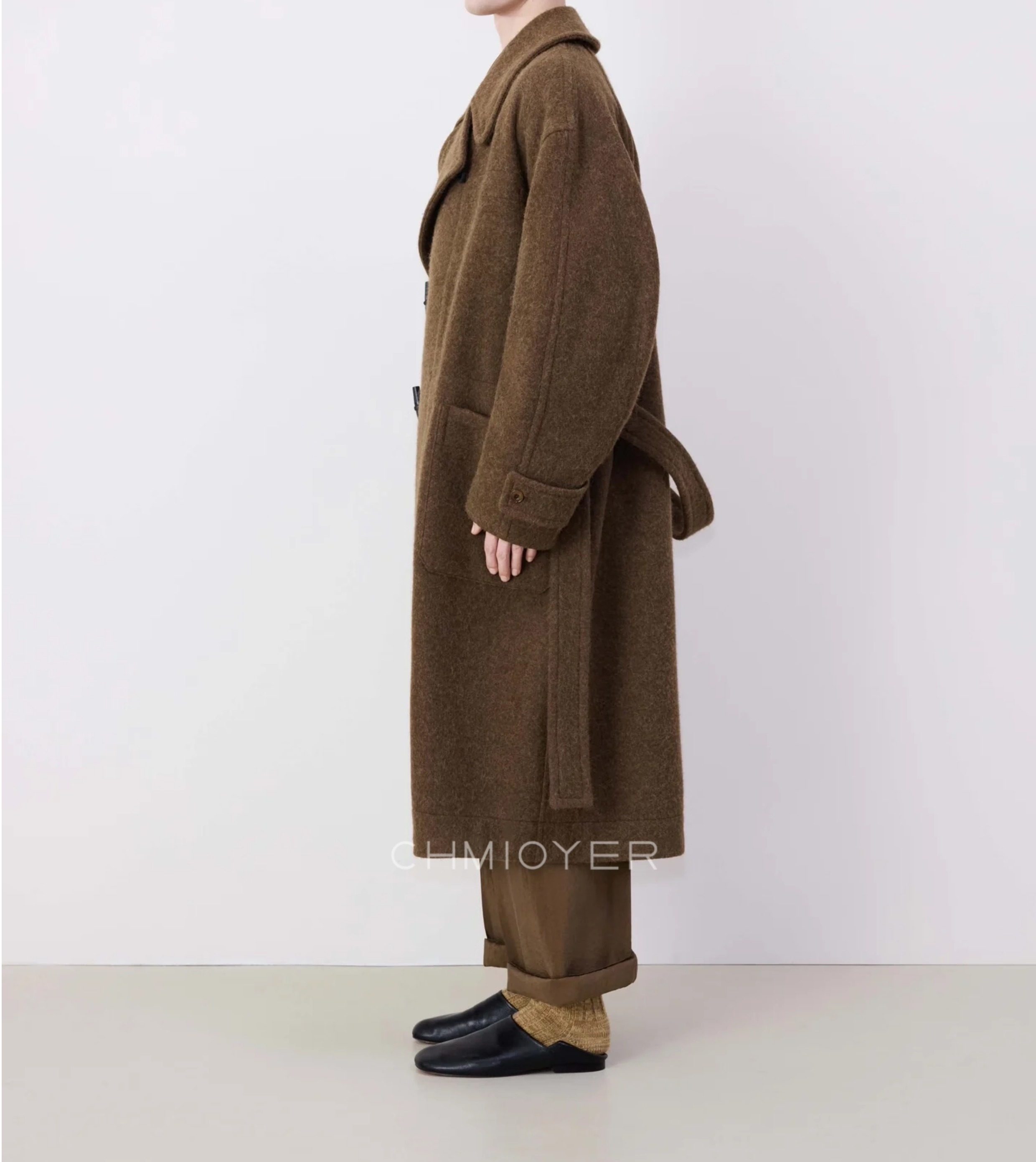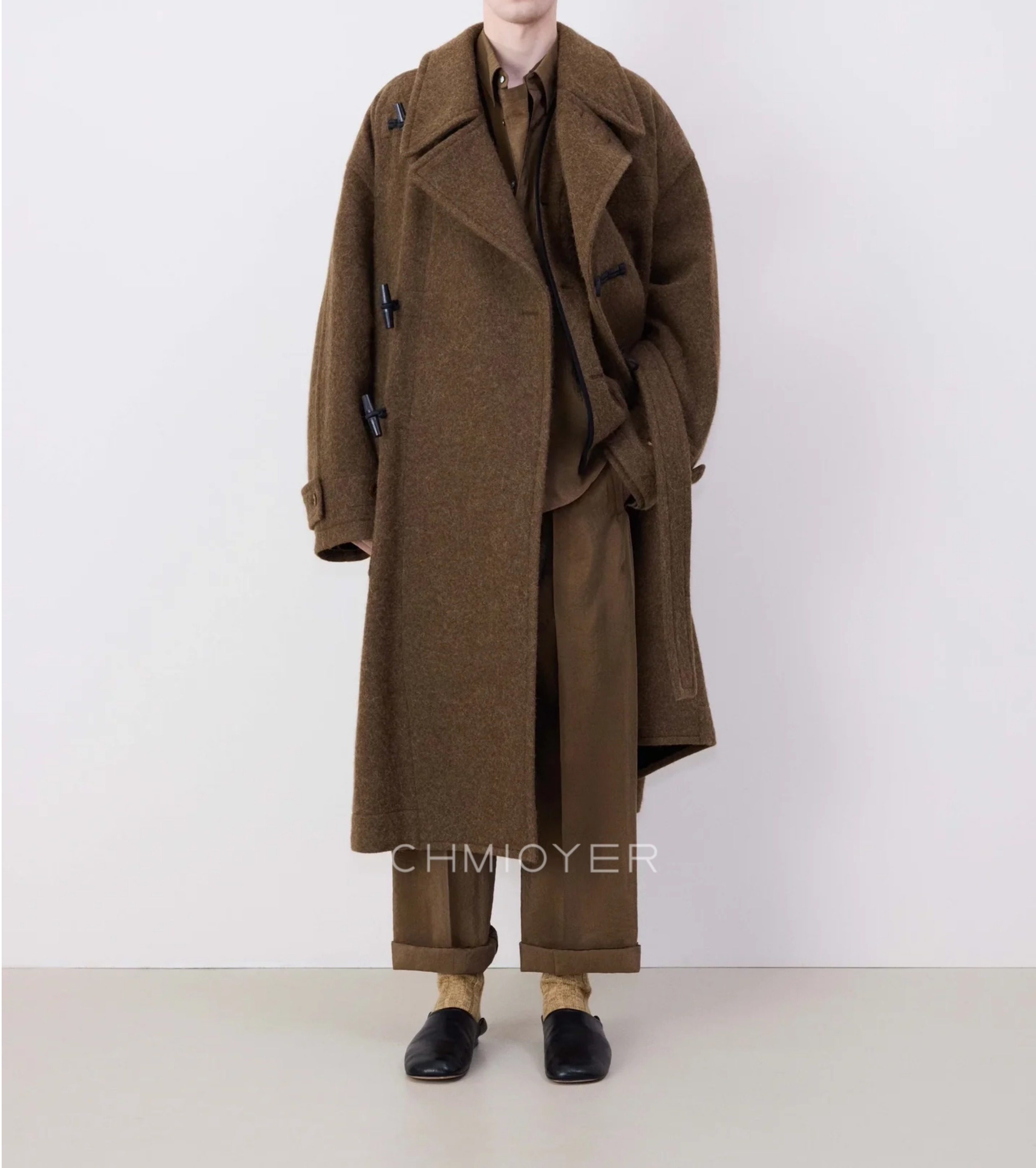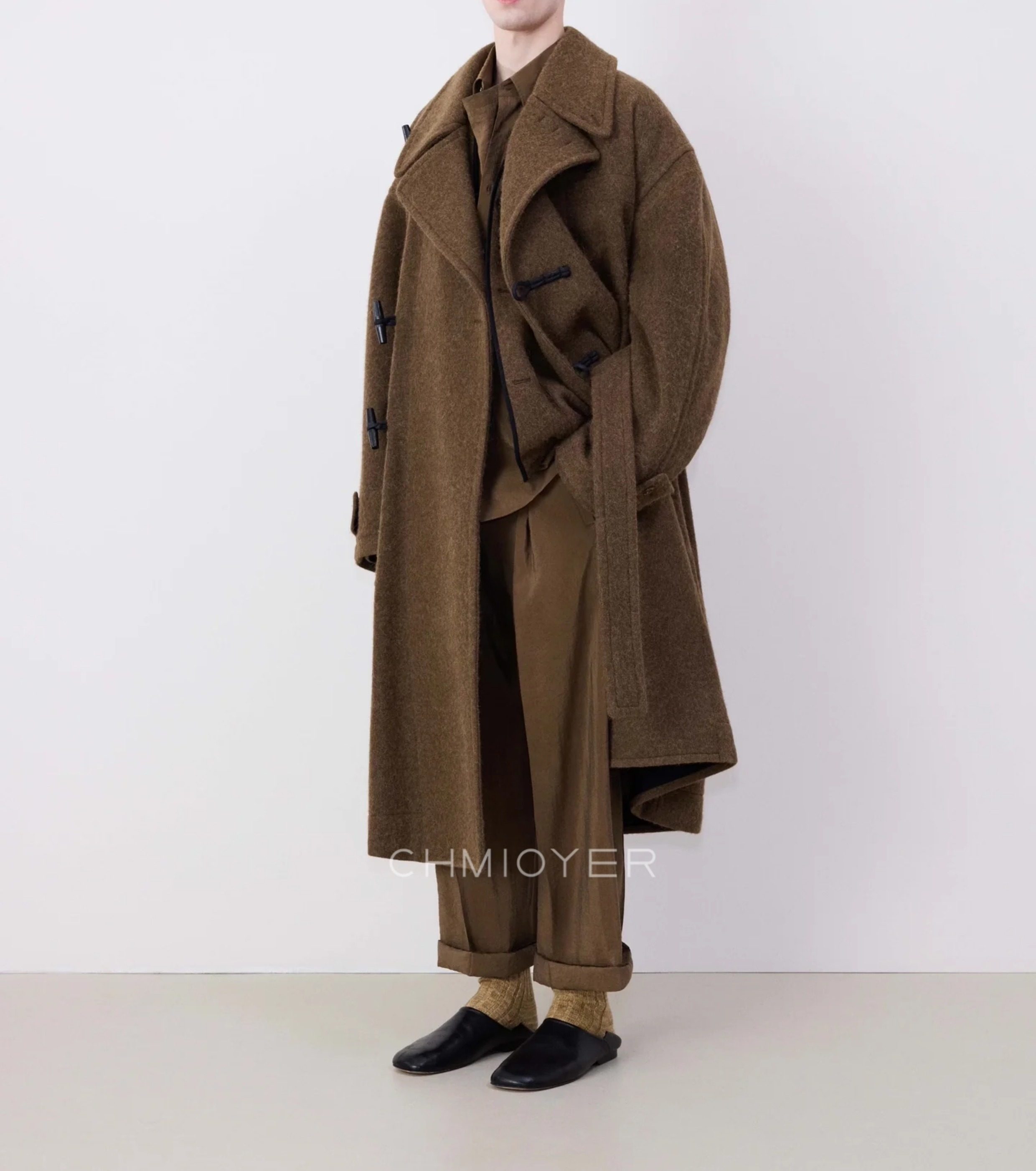 Spring Seconds Lema*I~ Asymmetrical Toggle Coat for Men, 24 Autumn/Winter Brown Alpaca Wool Belted Long Coat
