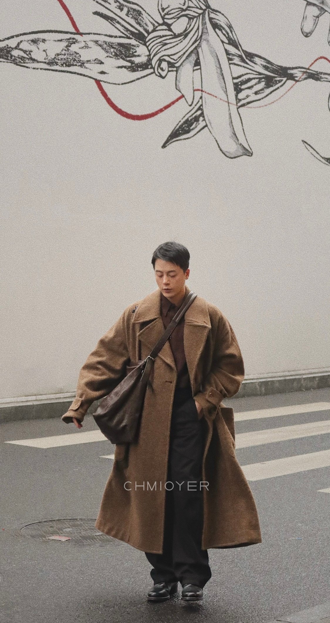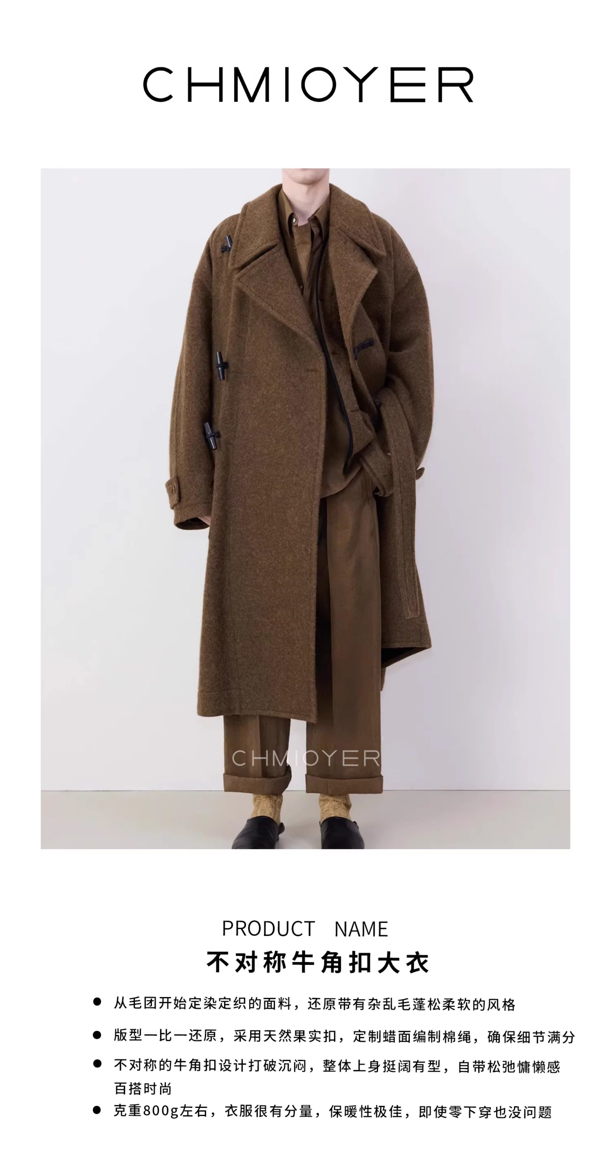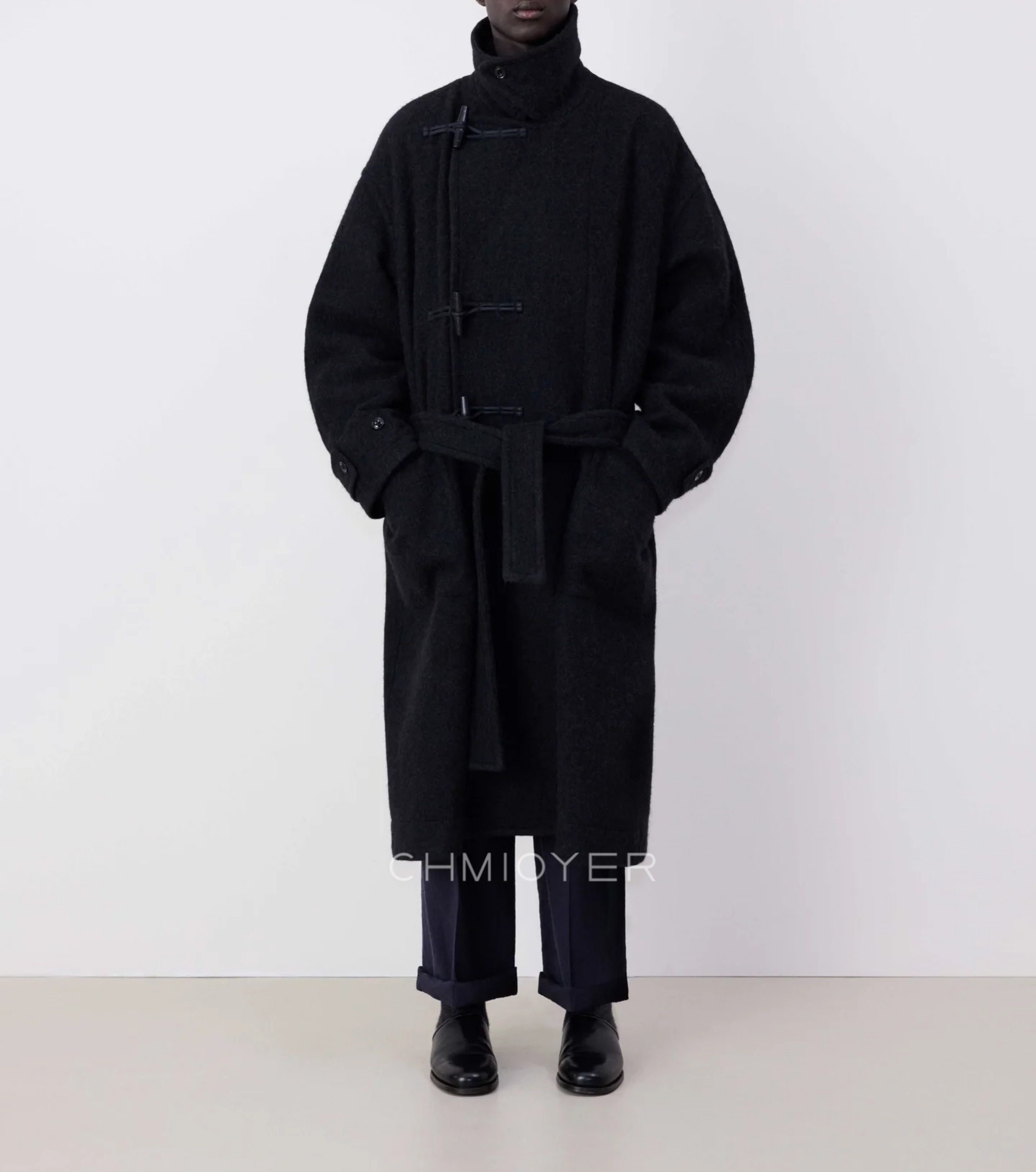 Spring Seconds Lema*I~ Asymmetrical Toggle Coat for Men, 24 Autumn/Winter Brown Alpaca Wool Belted Long Coat