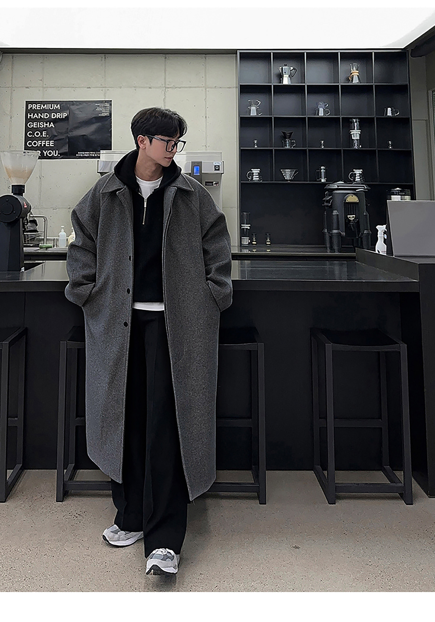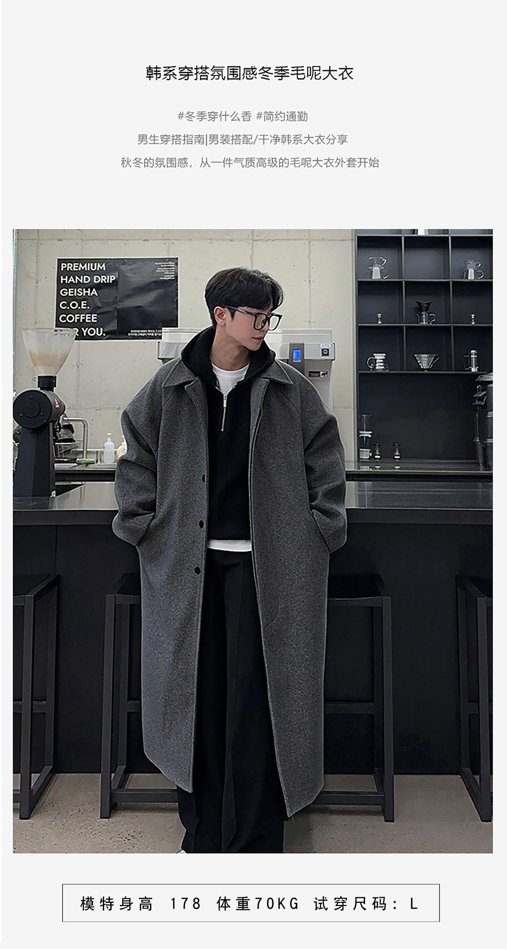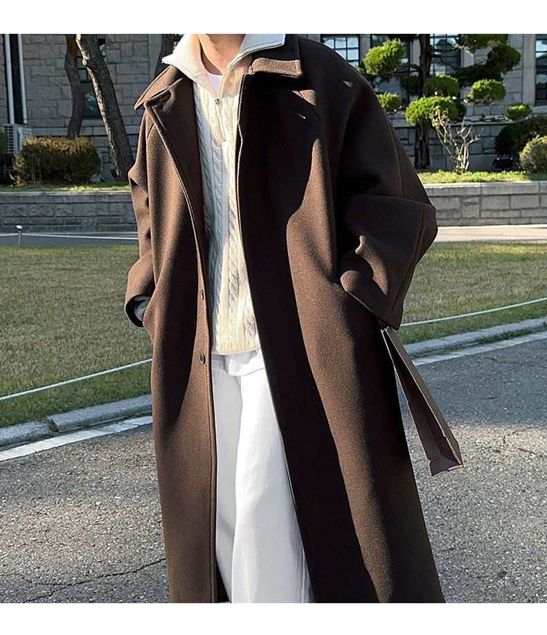 Bishe Trendy Autumn and Winter Thick Woolen Coat for Men, Mid-Length, Over-The-Knee, Korean Style, Loose Design, Casual Woolen Jacket