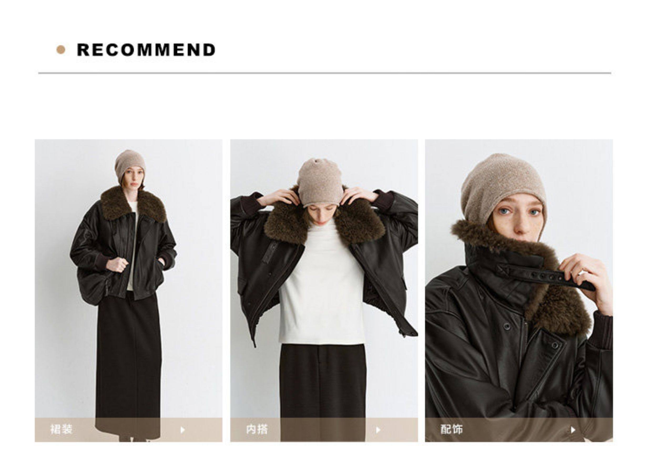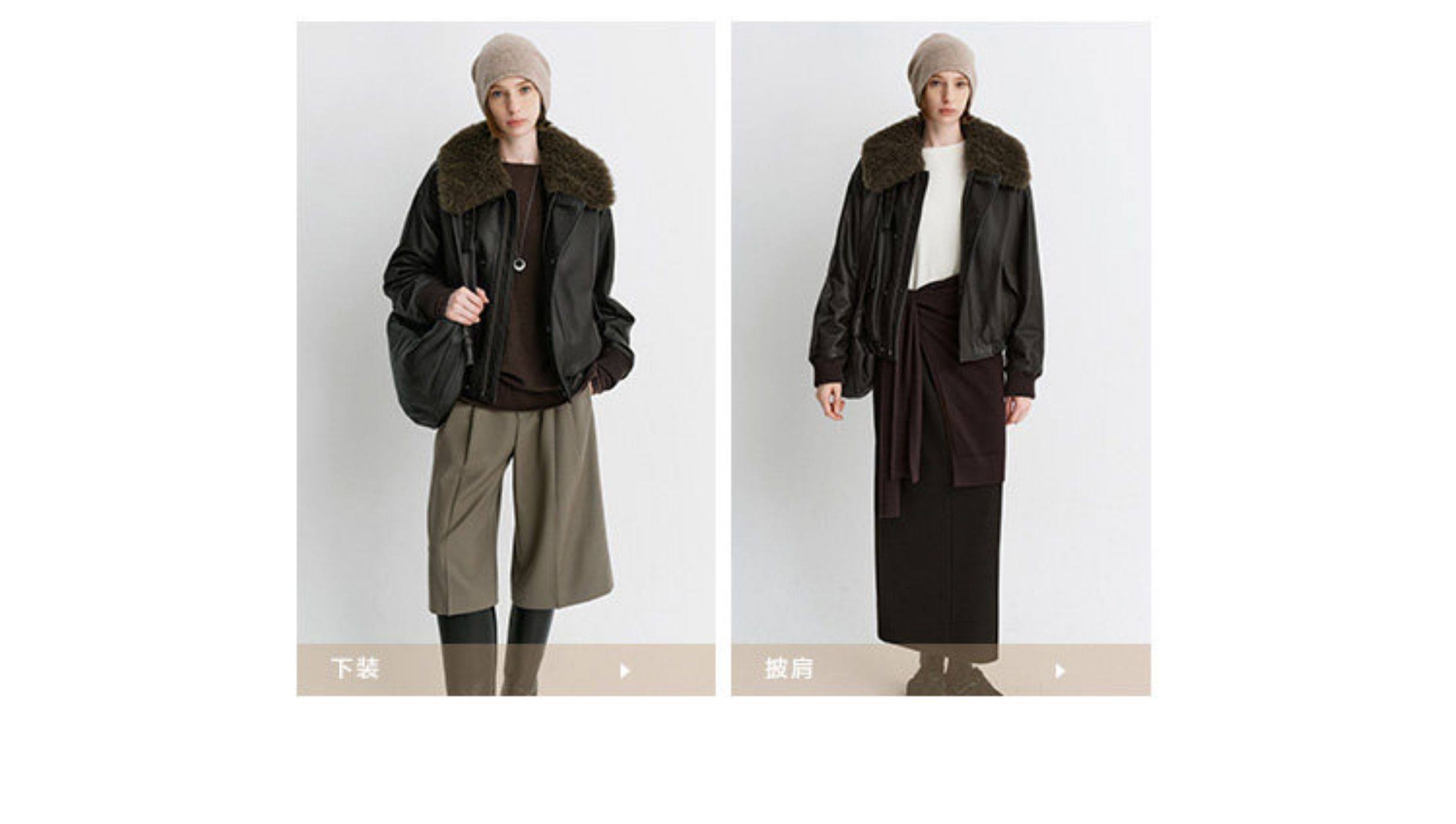 Amyy Studios Jin Brand Calfskin Quilted Cashmere Fur Integrated Lapel Bomber Leather Jacket