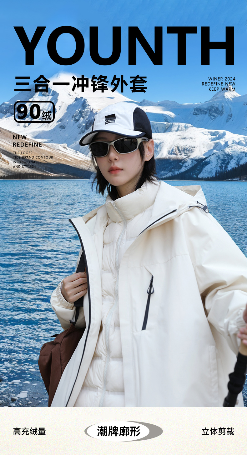 Wassup Cmkpo Three-In-One down Jacket, Men's and Women's Style, Detachable down Liner, Mountaineering Jacket
