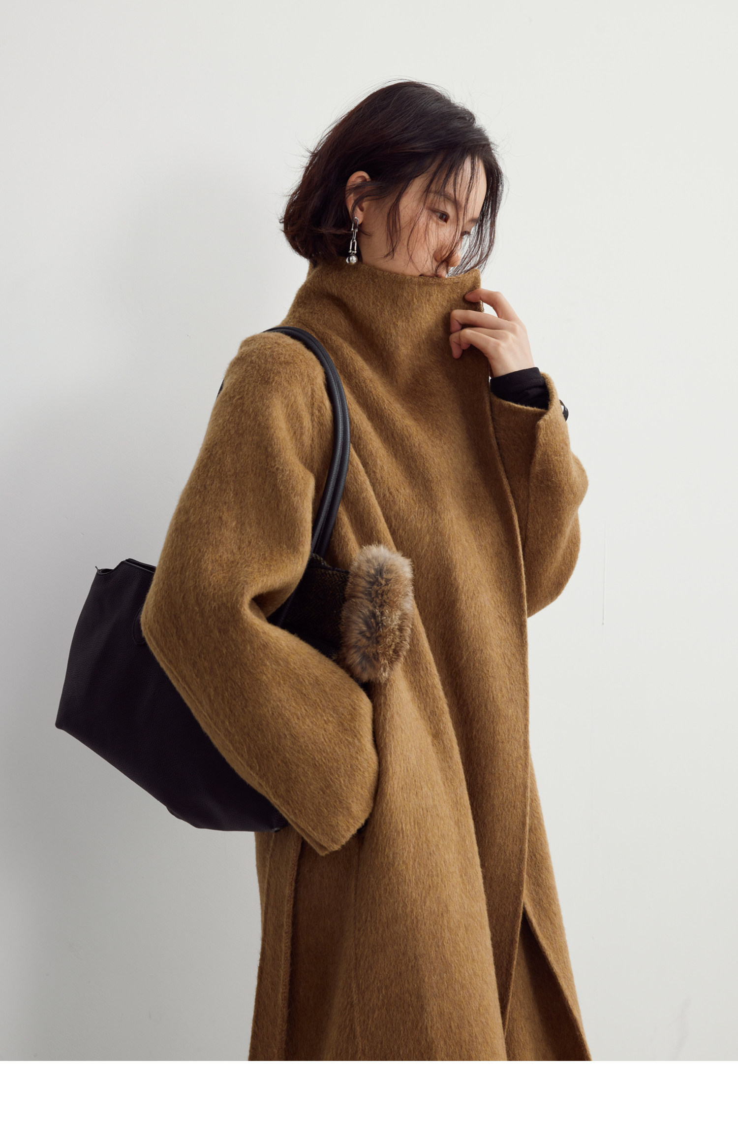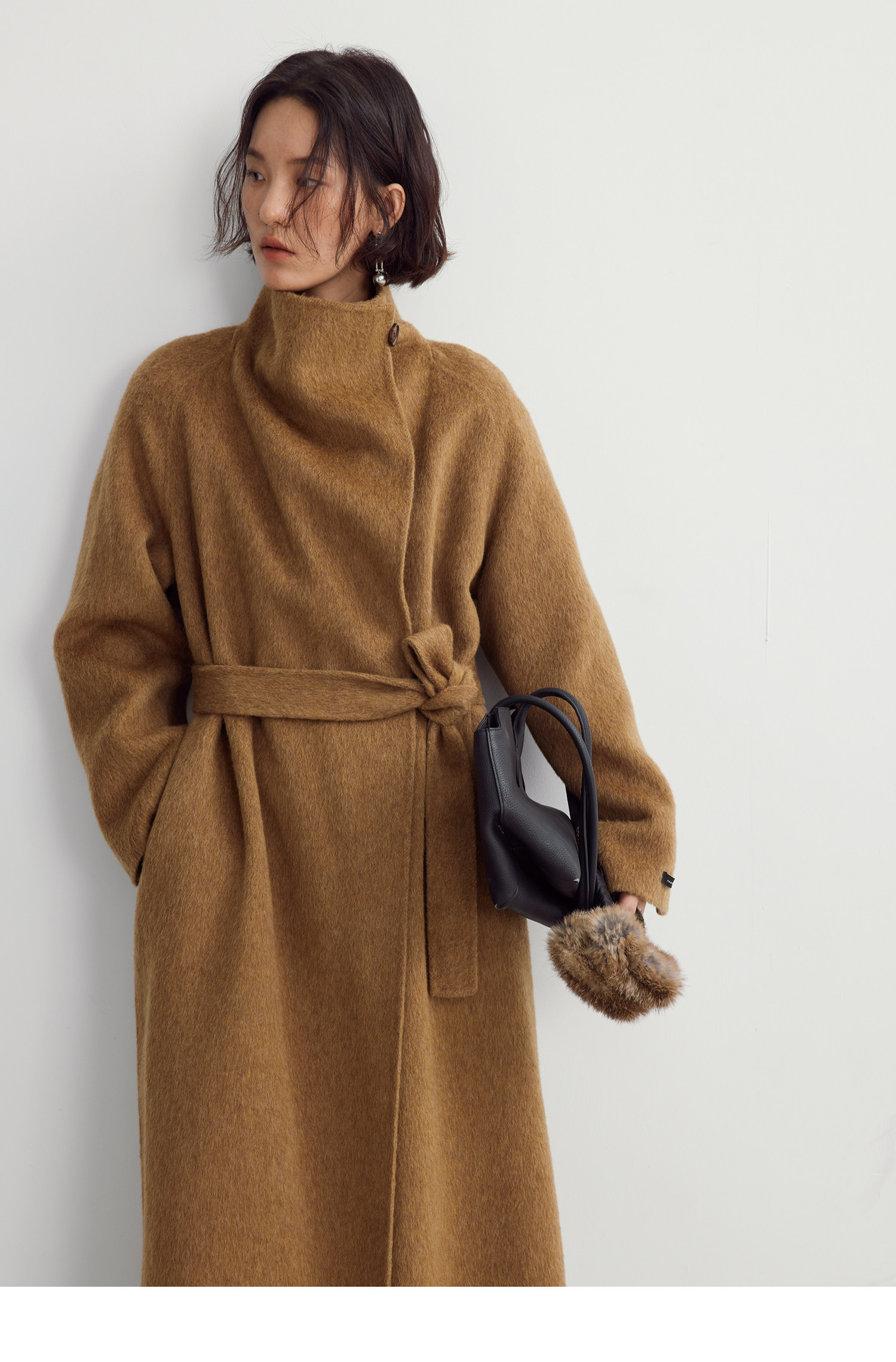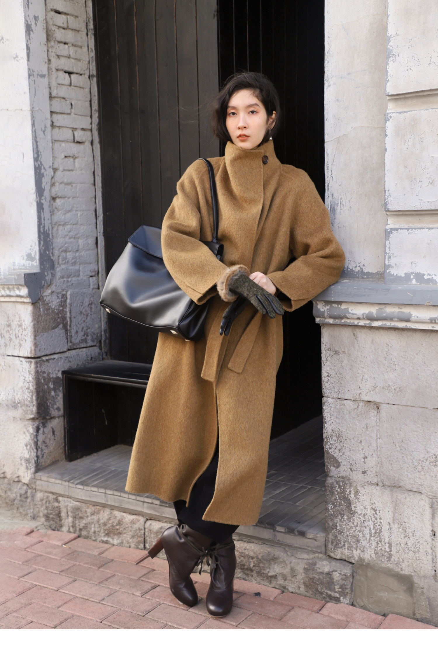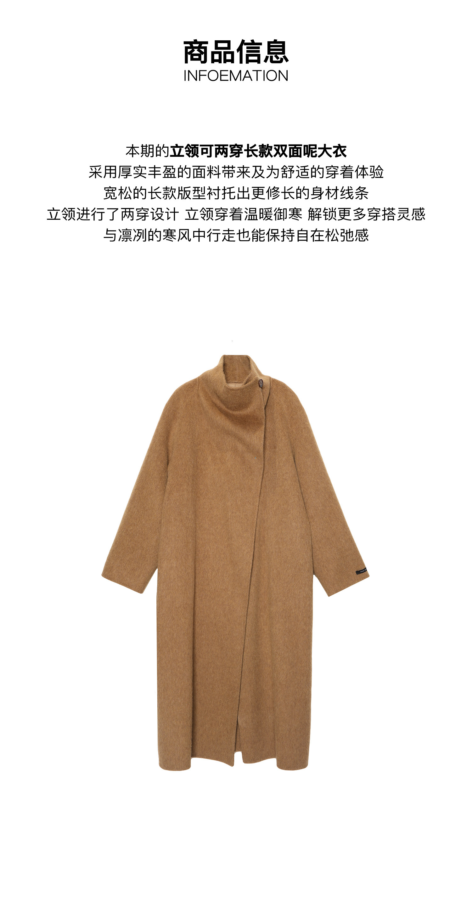 Subo Commuting Simple Style Camel Wool Sheep Wool Stand Collar Convertible Double-Sided Wool Coat with Elegant Atmosphere