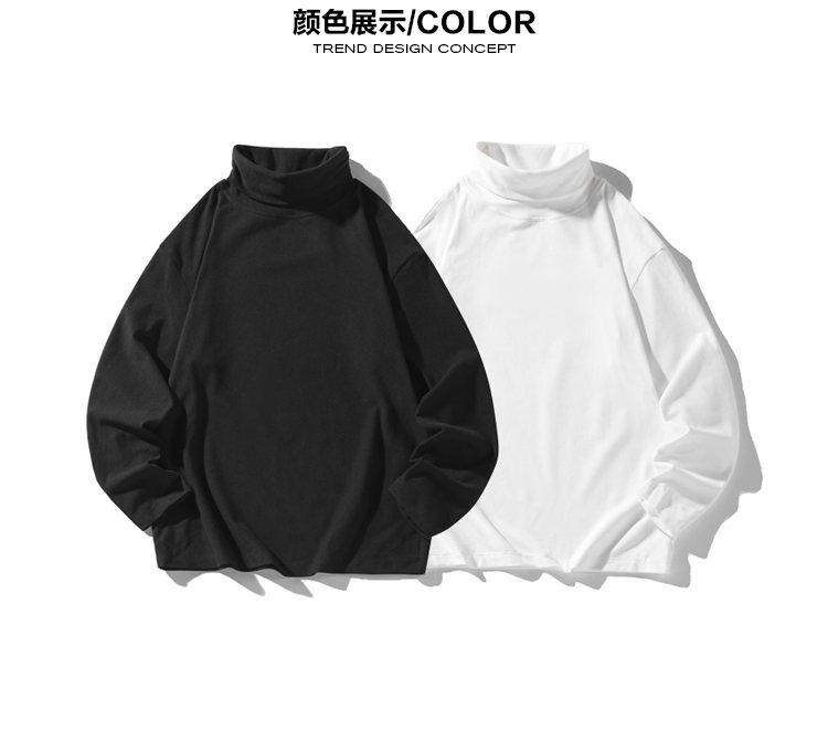 Black Turtleneck Thermal Base Layer Shirt for Men, Autumn and Winter American Style Regular Shoulder Slim Fit Long Sleeve T-Shirt, Cool and Stylish Inner Wear Sweatshirt