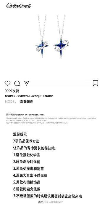 [999 Pure Silver | Luminous] Firemonkey Azure Silver Light Meteor Starburst Texture Simple Cross Necklace