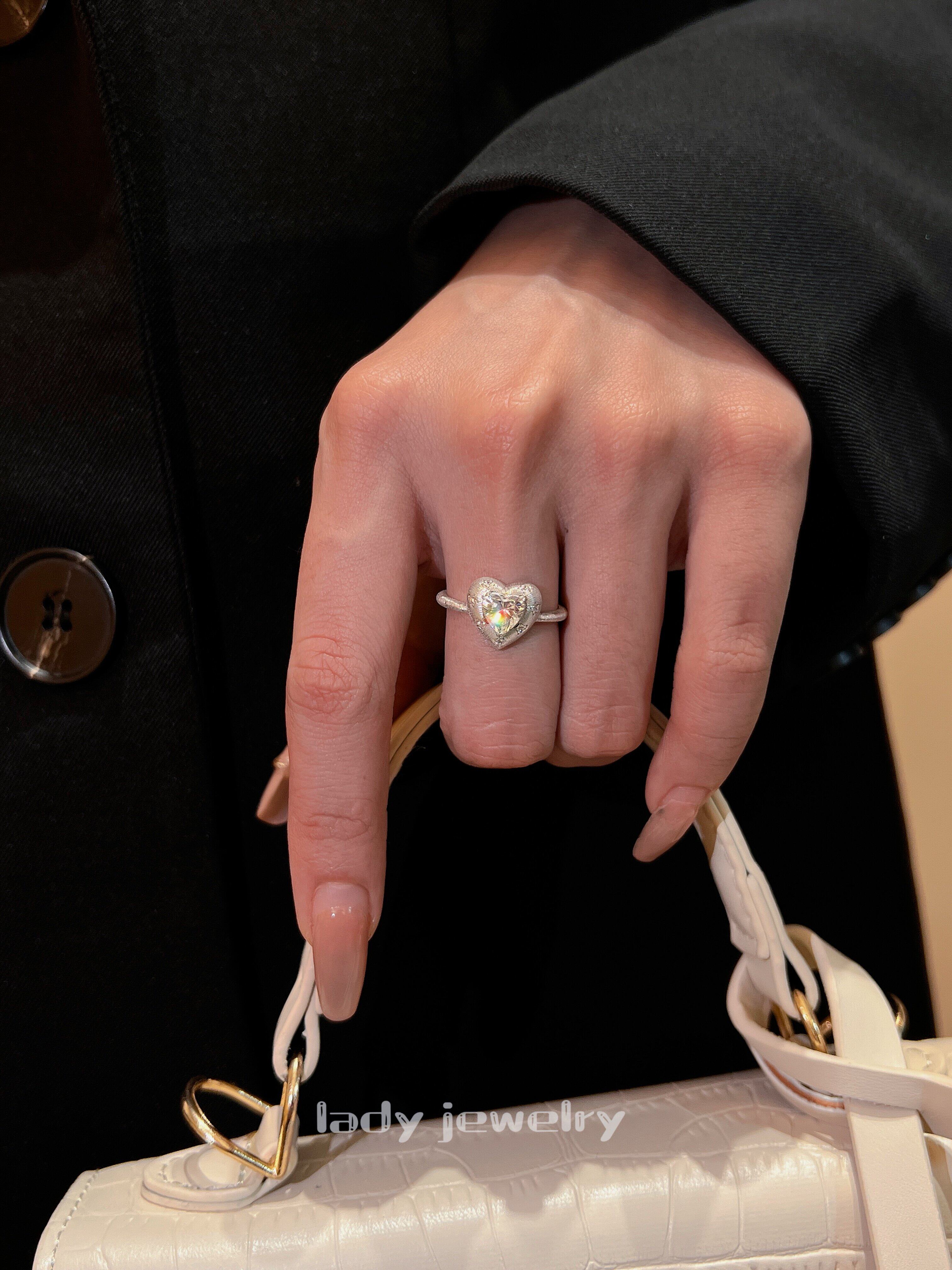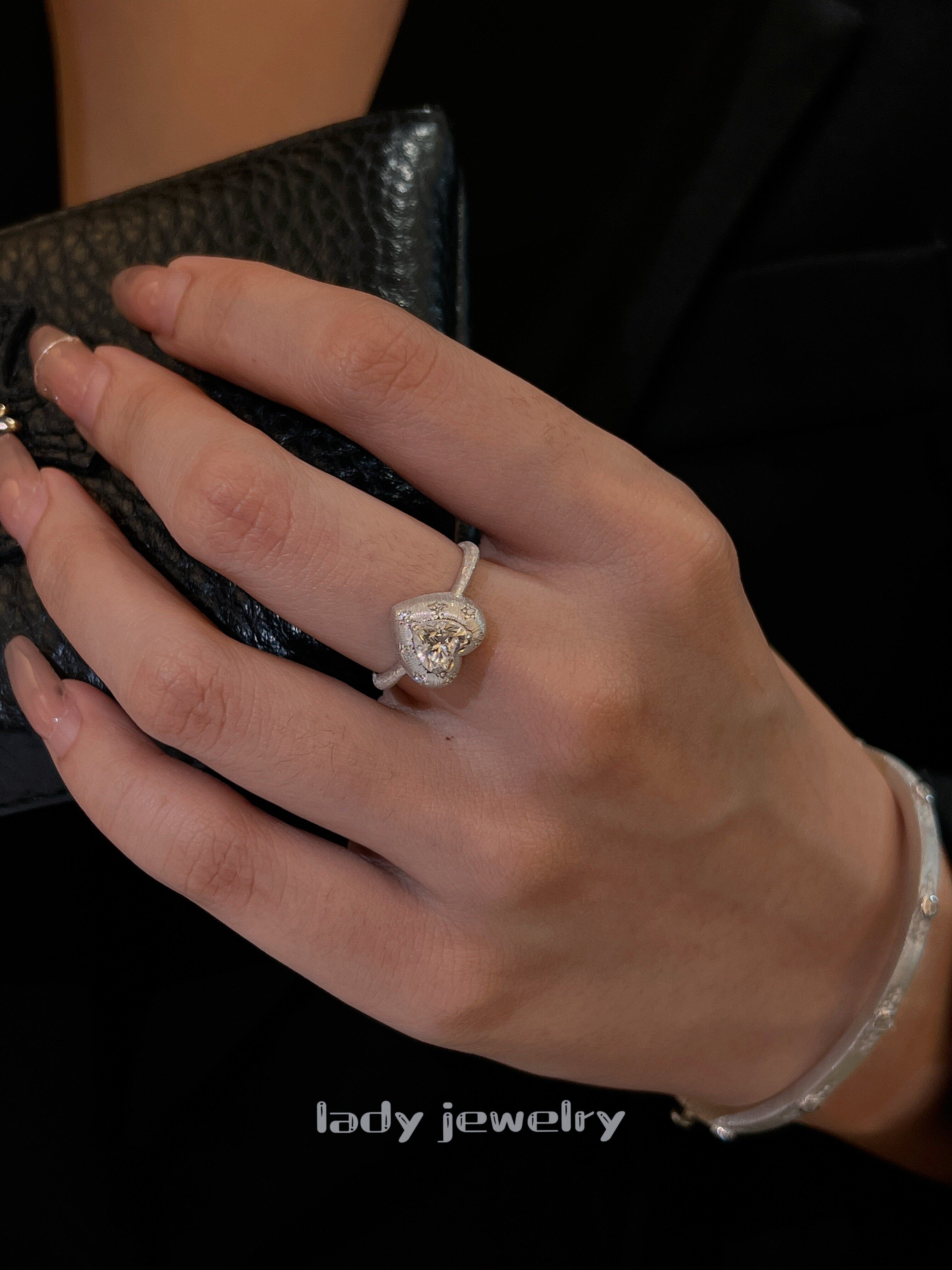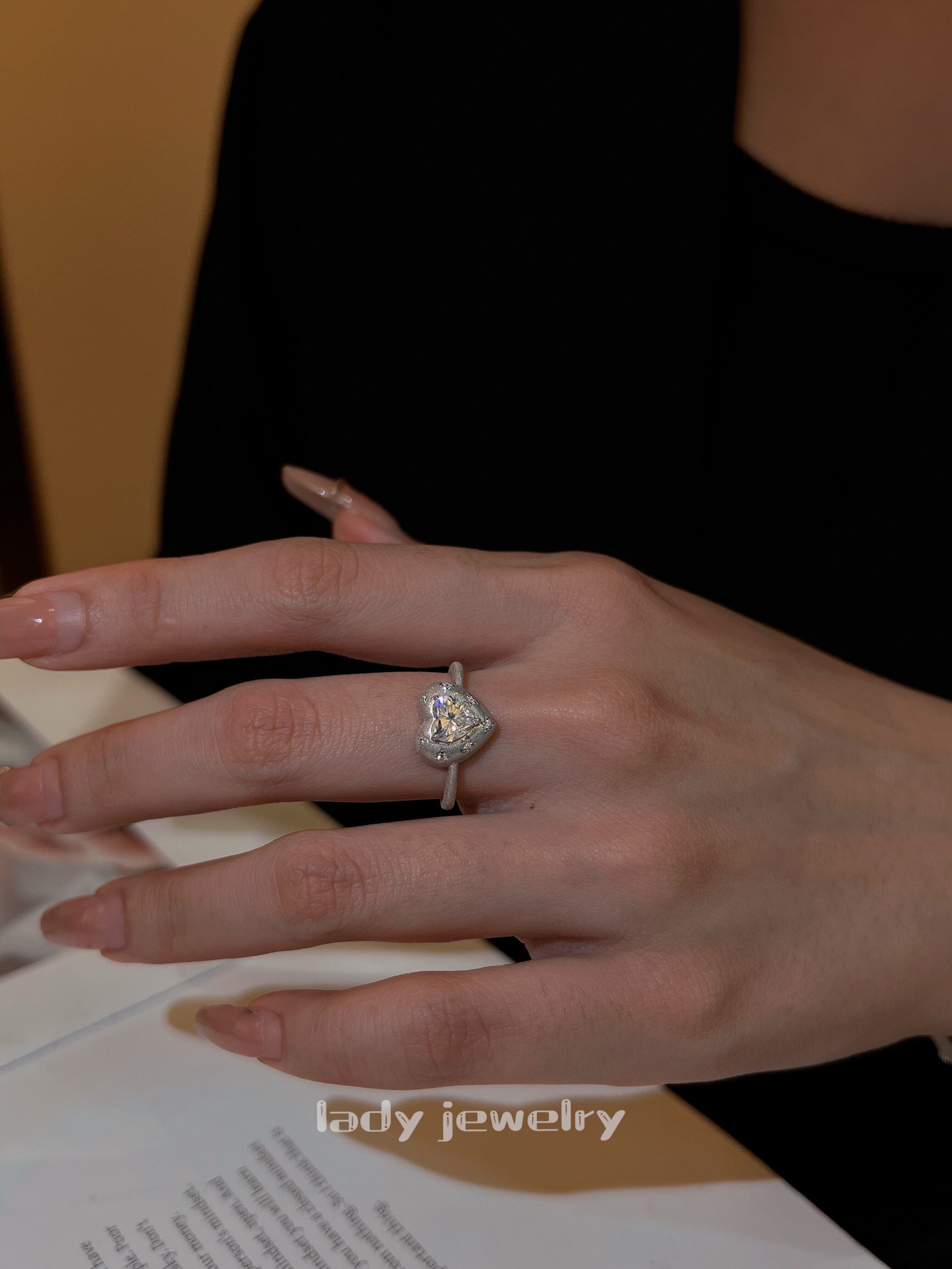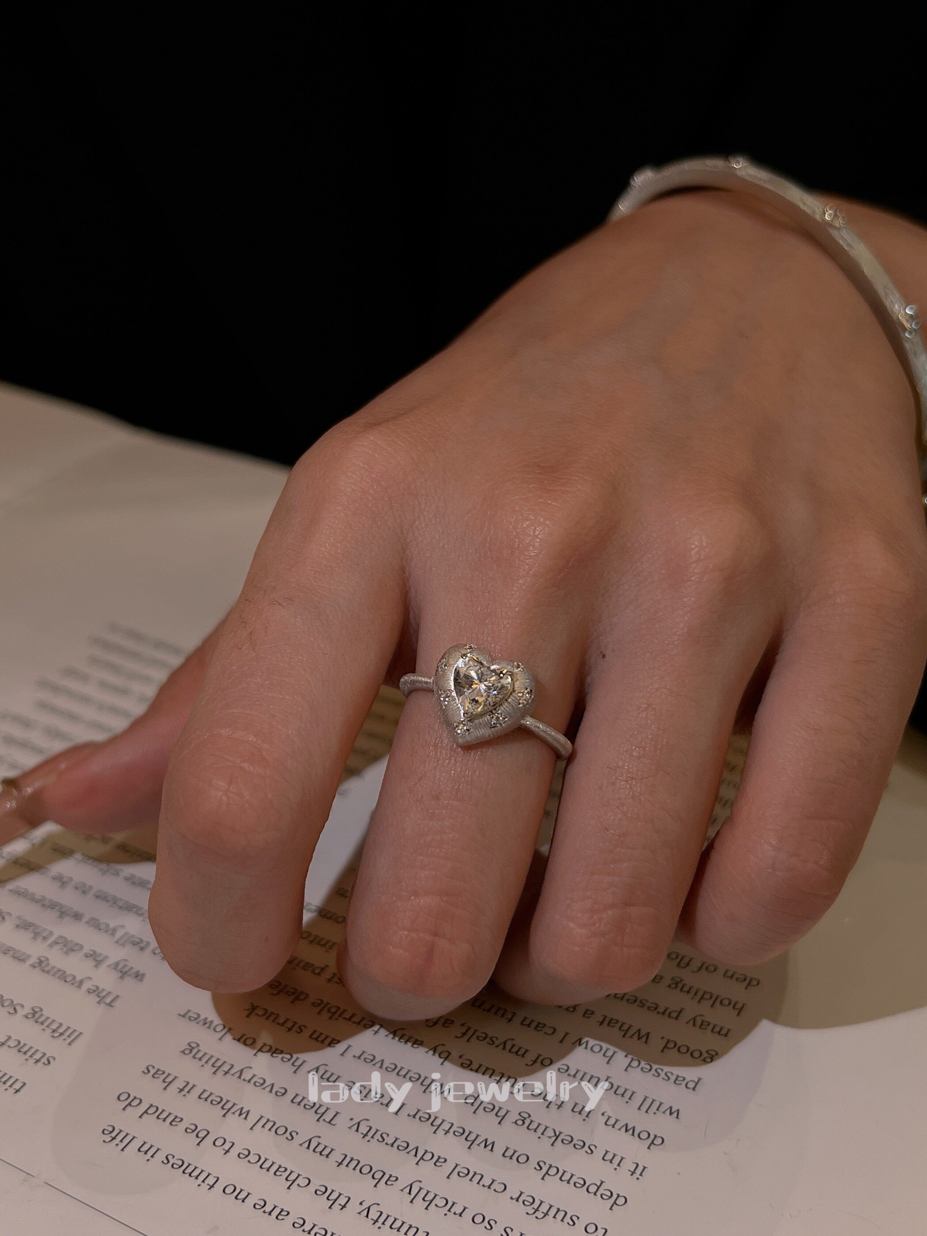 Lidi [Brushed Flower Heart] S925 Silver 1 Carat Italian Engraved Heart Diamond Elegant Versatile Ring