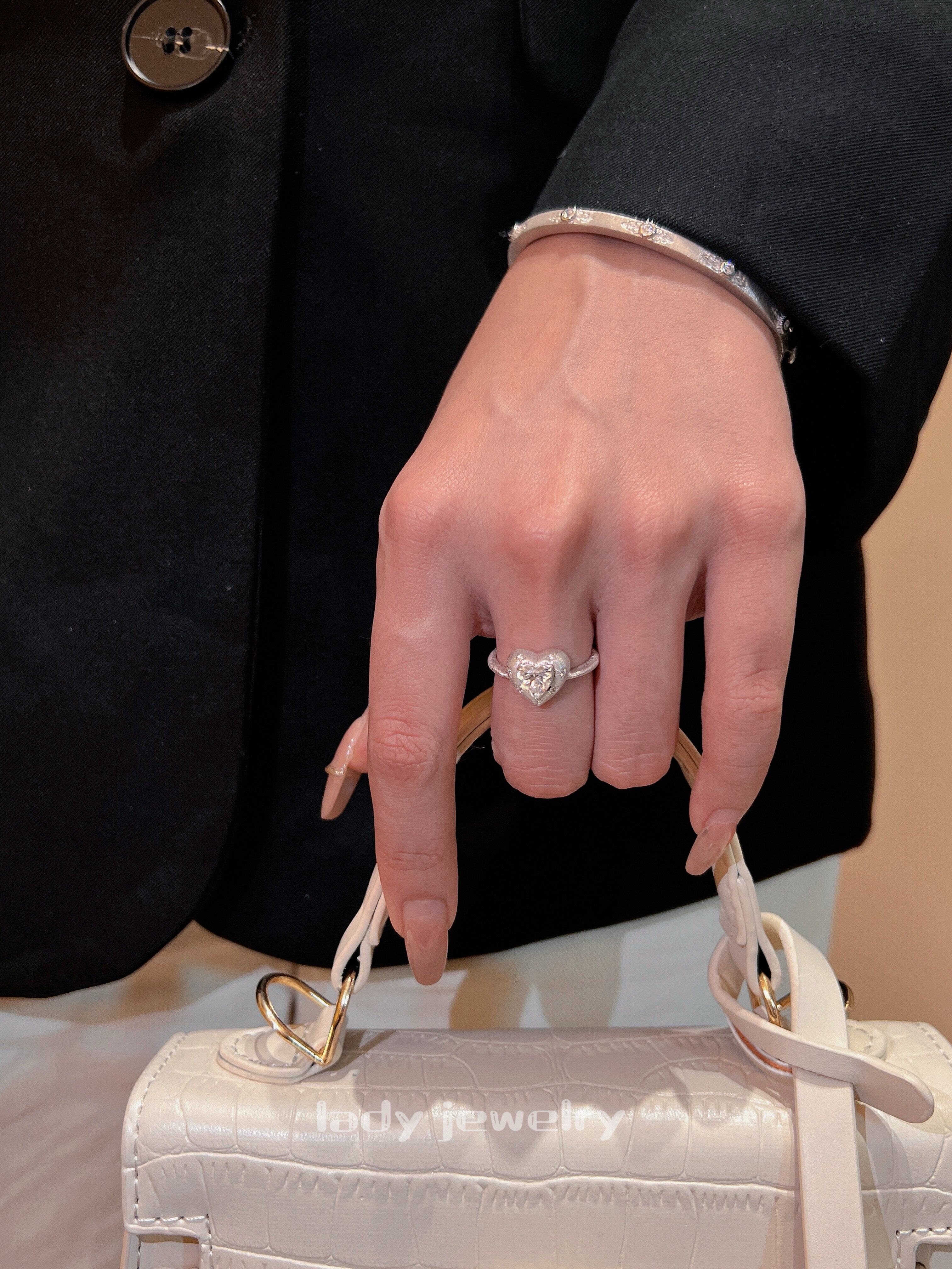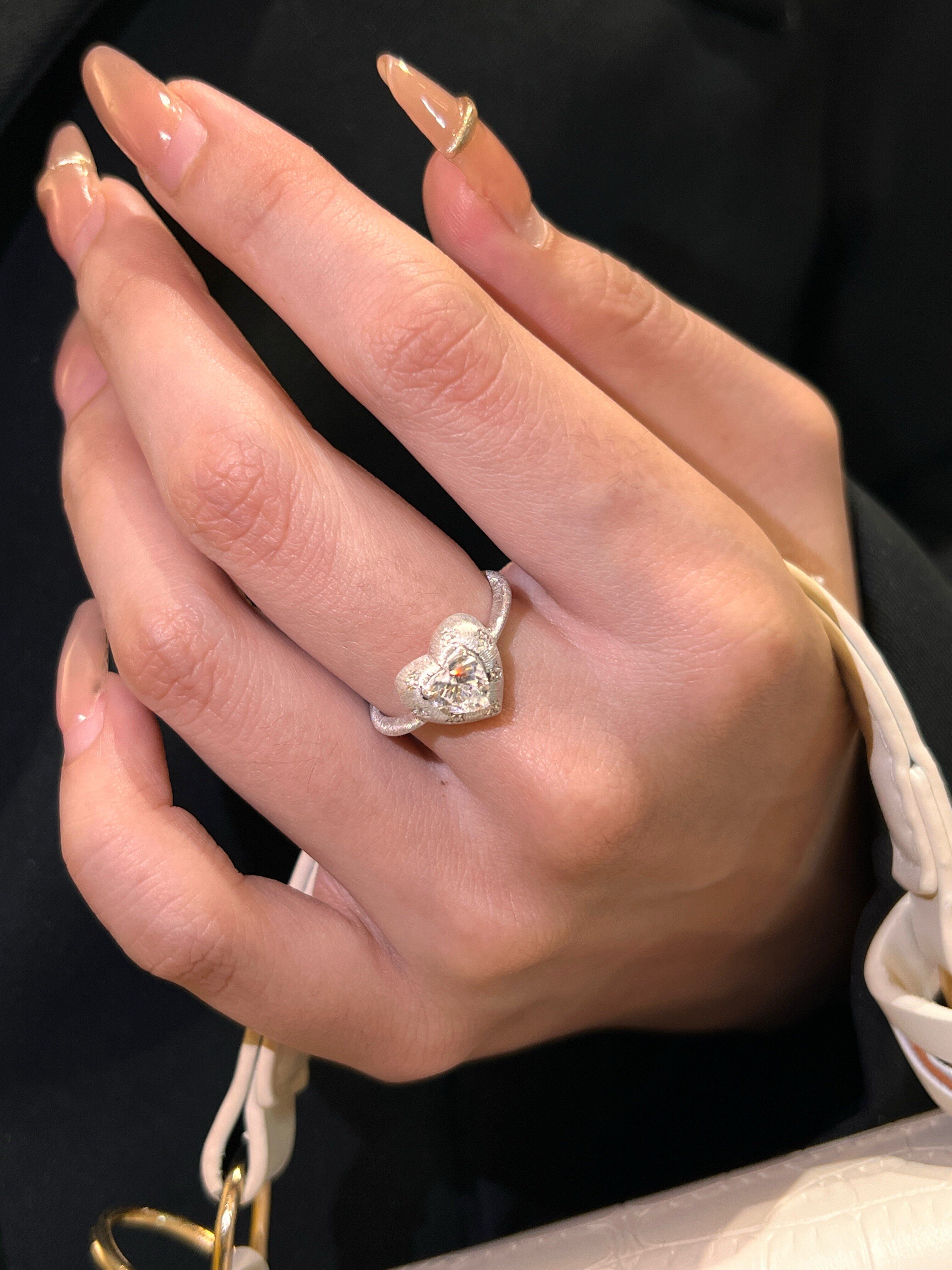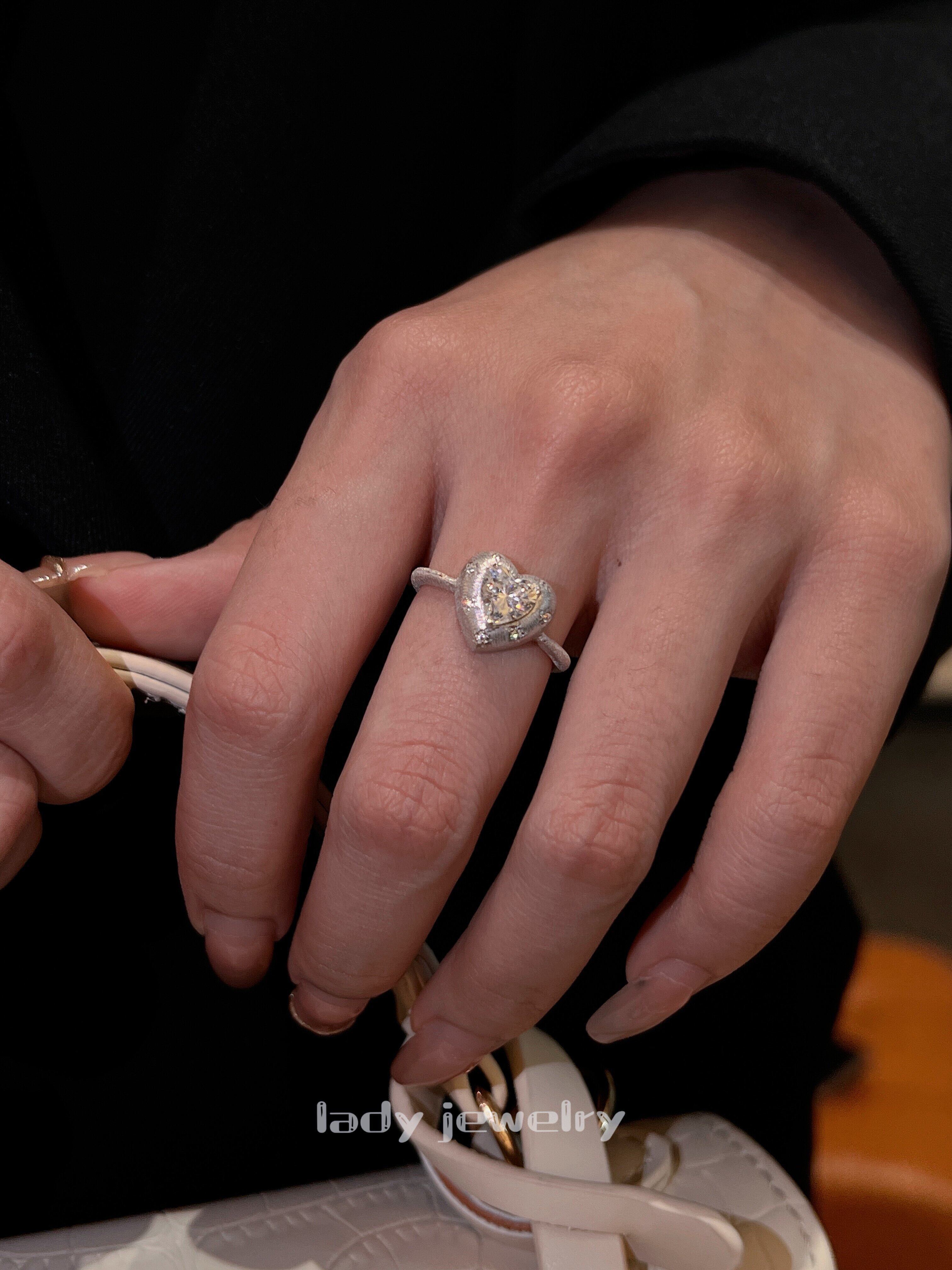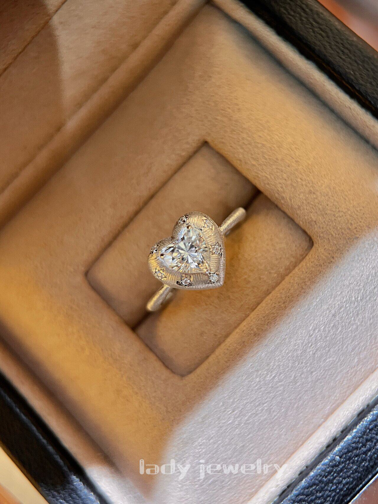Lidi [Brushed Flower Heart] S925 Silver 1 Carat Italian Engraved Heart Diamond Elegant Versatile Ring