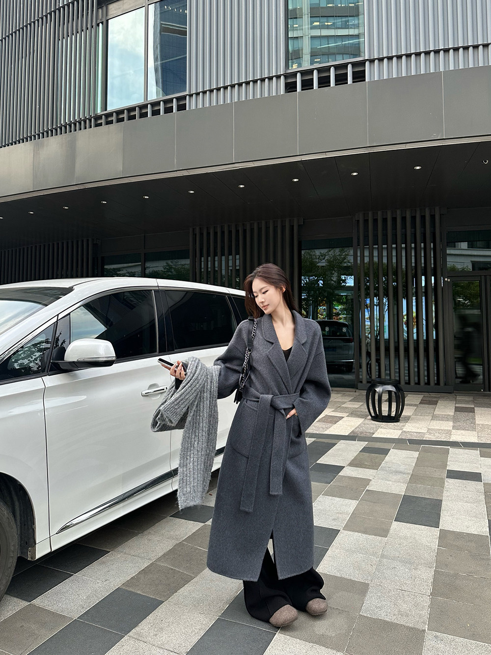 慵懒中透漏着精致的浴袍款双面呢大衣