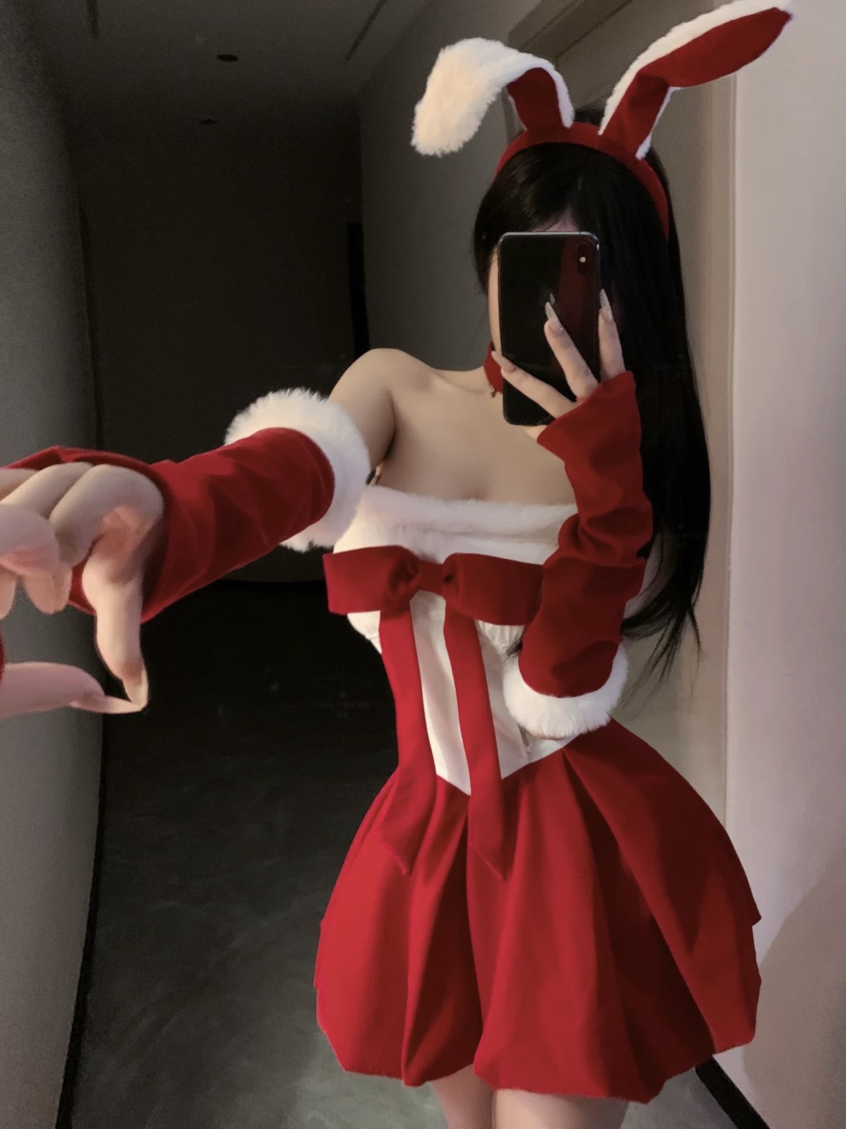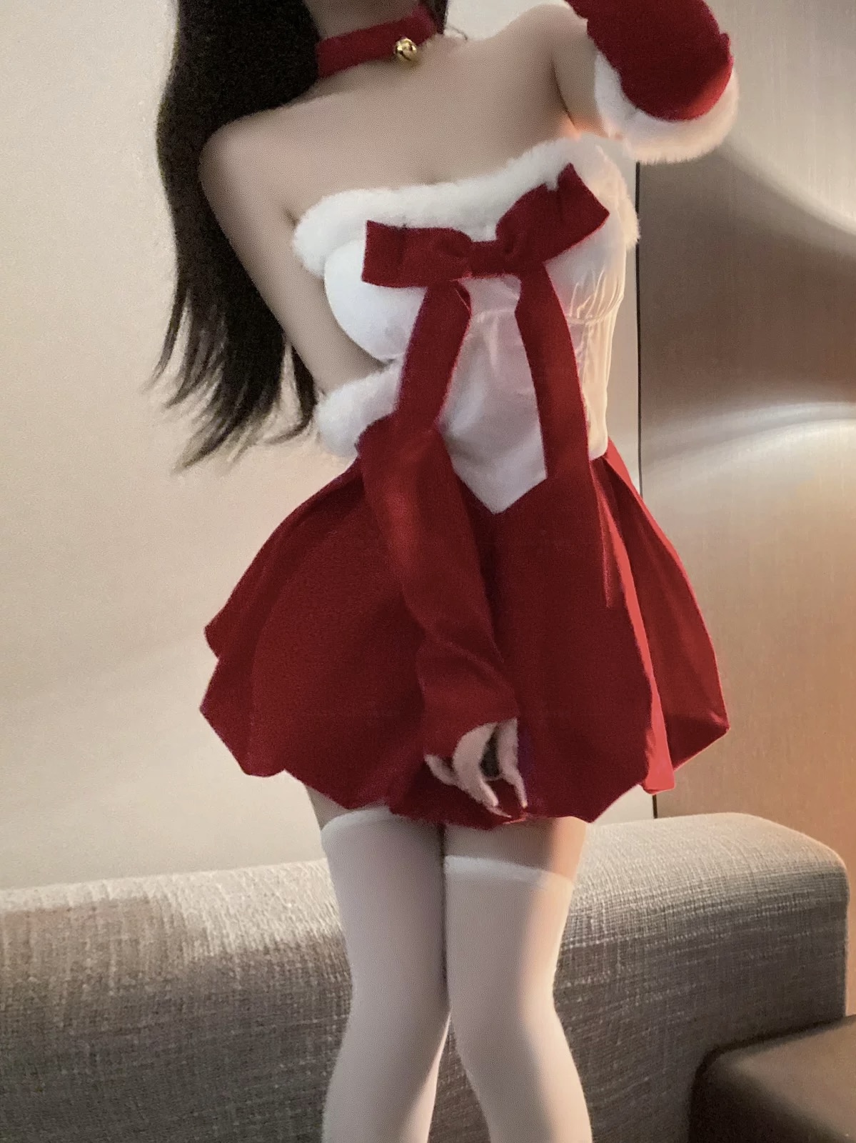 My Best Friend Praised Me for My Christmas Outfit: a Sexy Red Dress with Breast Pads, Worn as an Outerwear Top, a Tube Top for Christmas