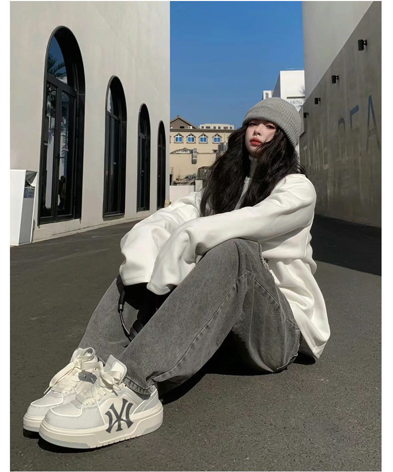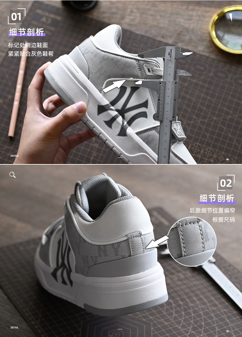 New York Yankees Men's and Women's Grey Thick Sole Height Increase Putian Athleisure Fancy Torre Shoe Trendy
