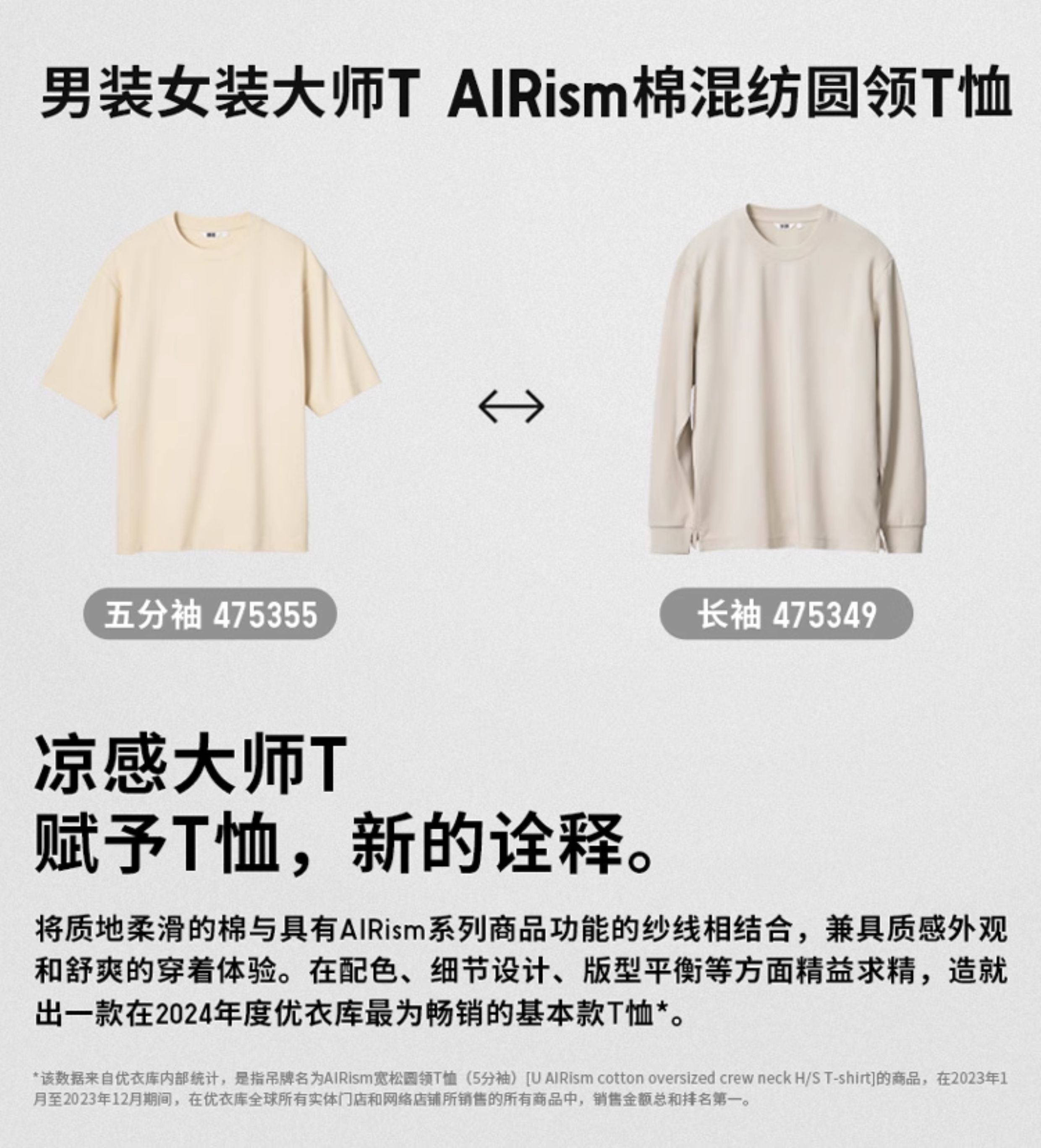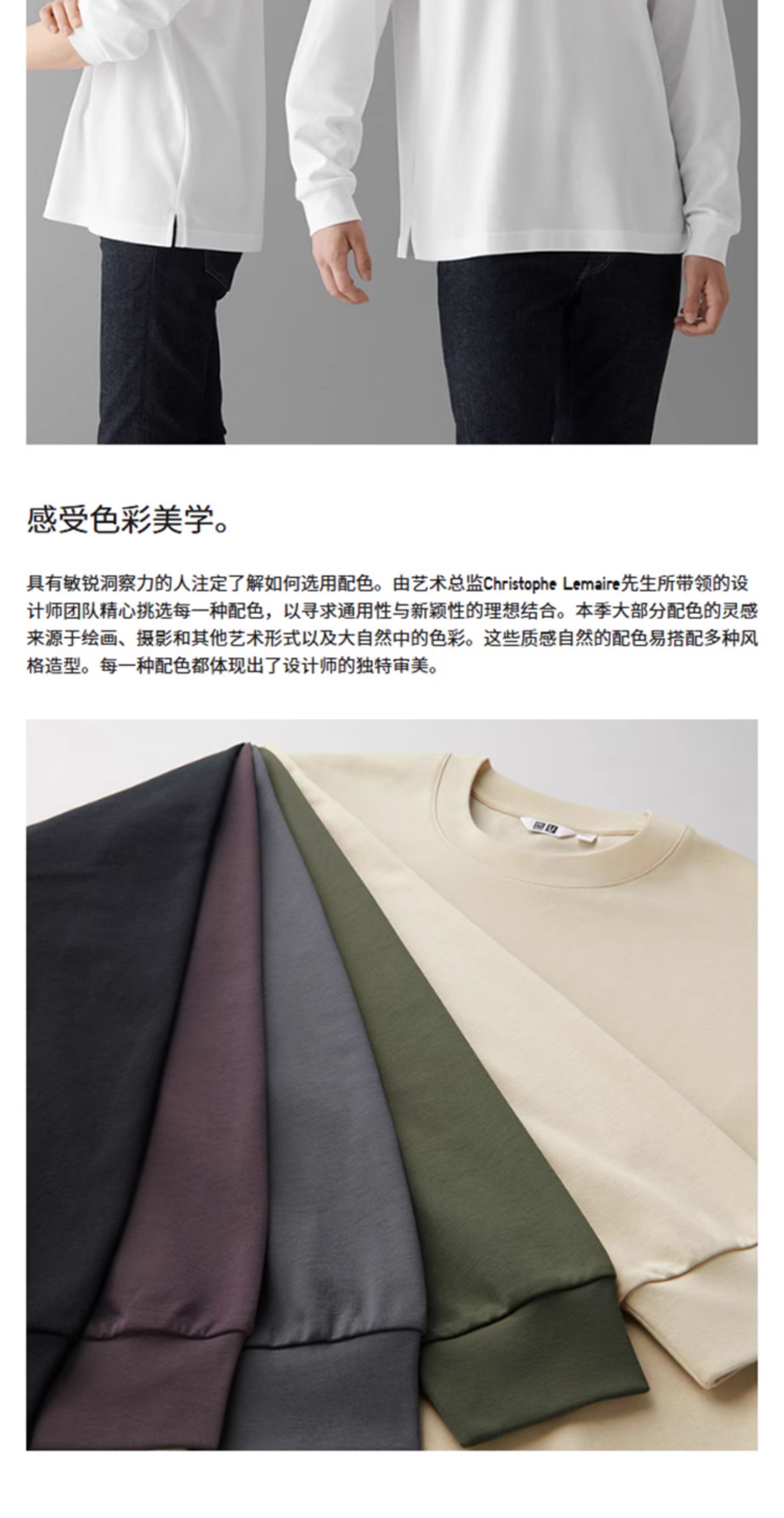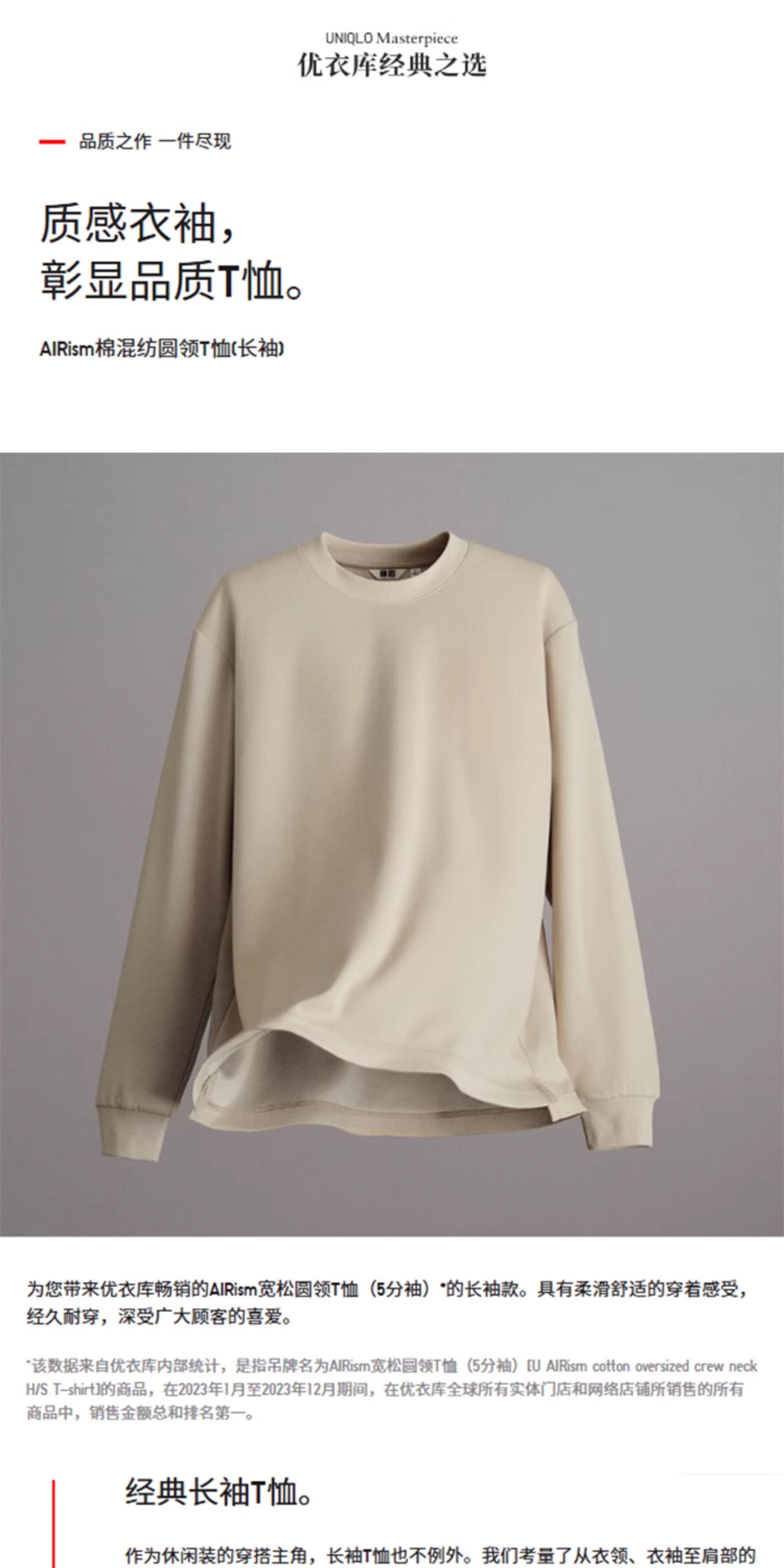 Uniqlo men's and women's wear master T AIRism cotton blended round neck T-shirt Long sleeves Tops 475349 469922
