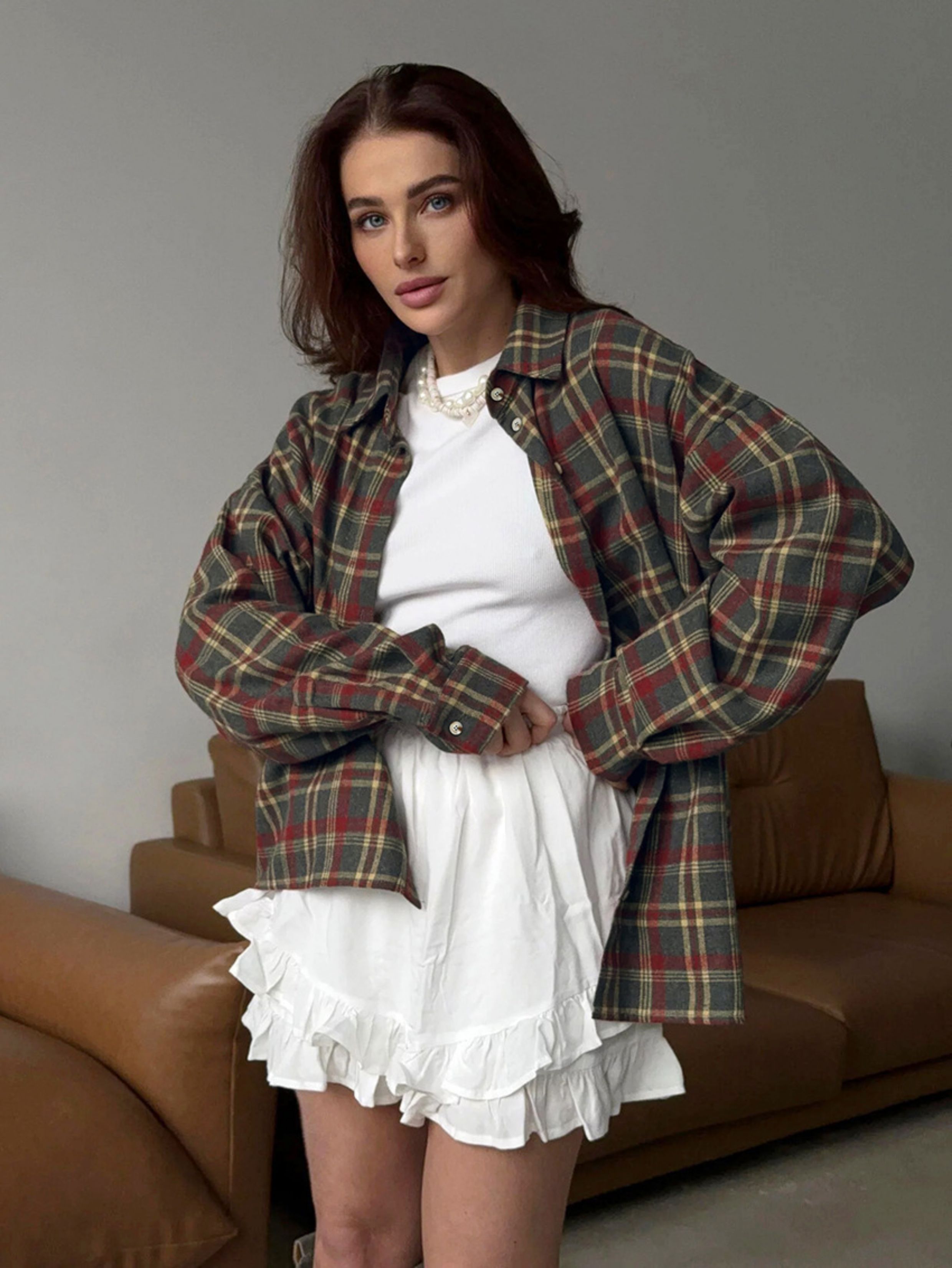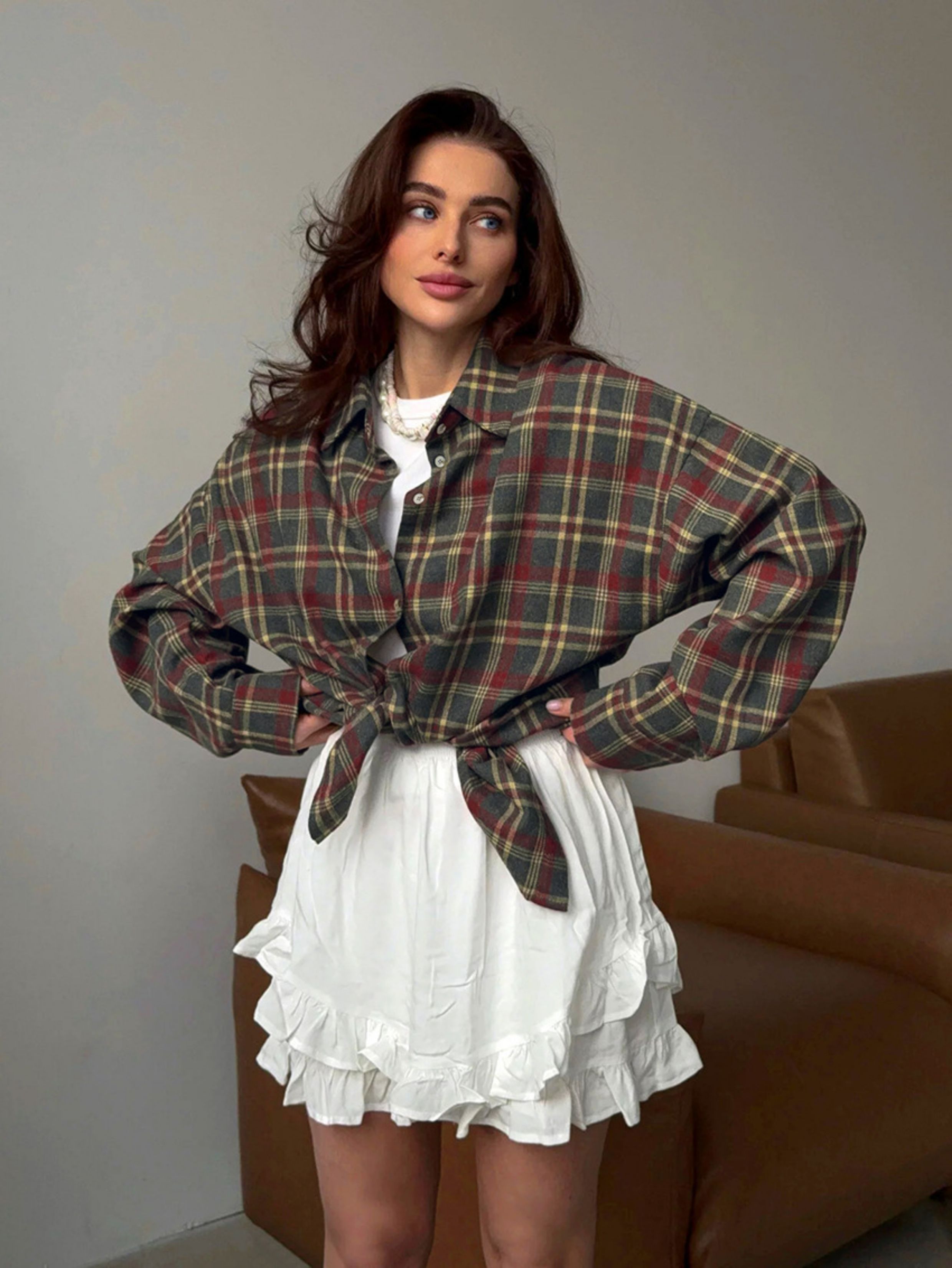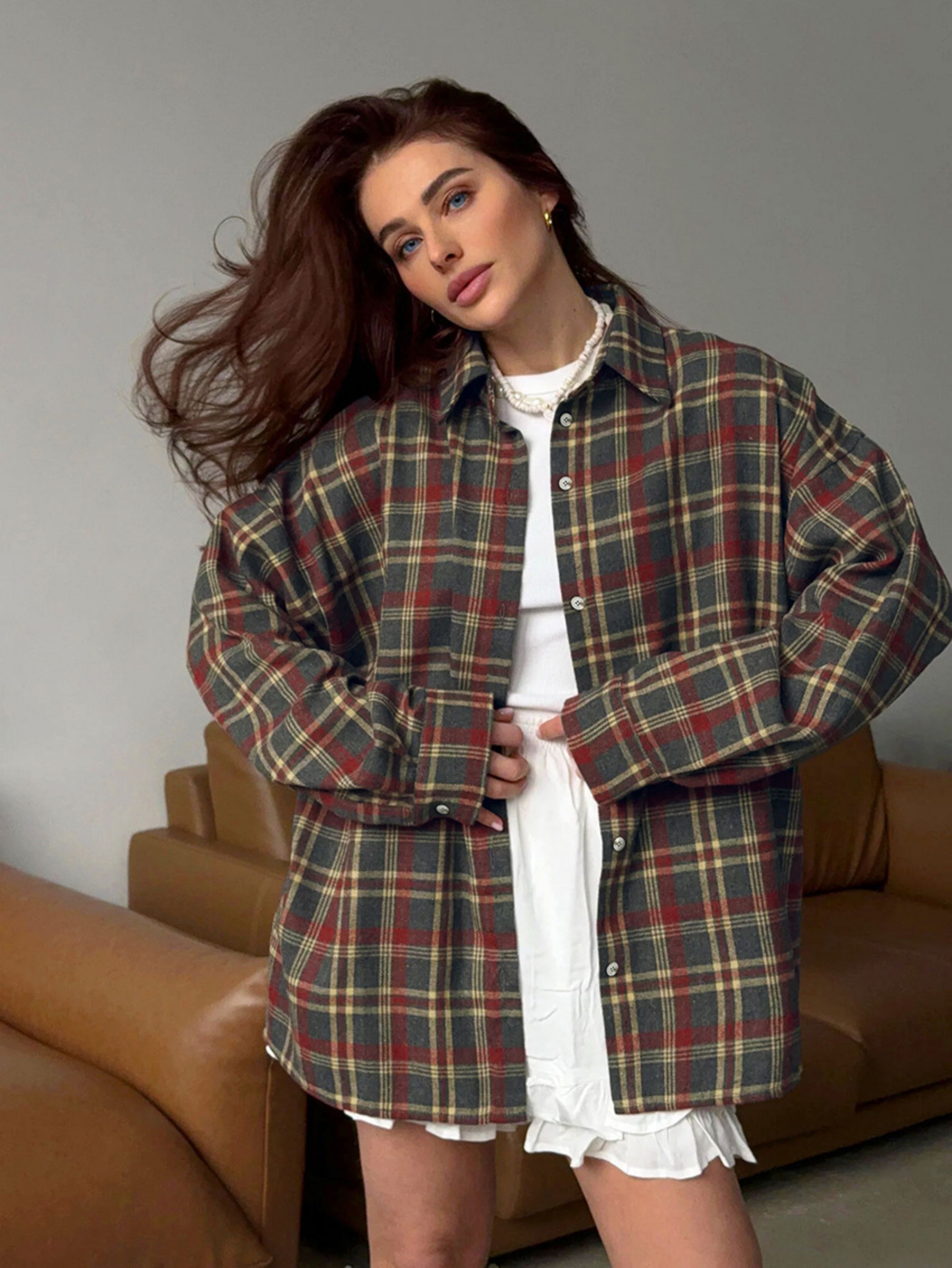 European and American Style Retro Versatile Casual Lapel Long-Sleeve Cardigan Shirt for Women
