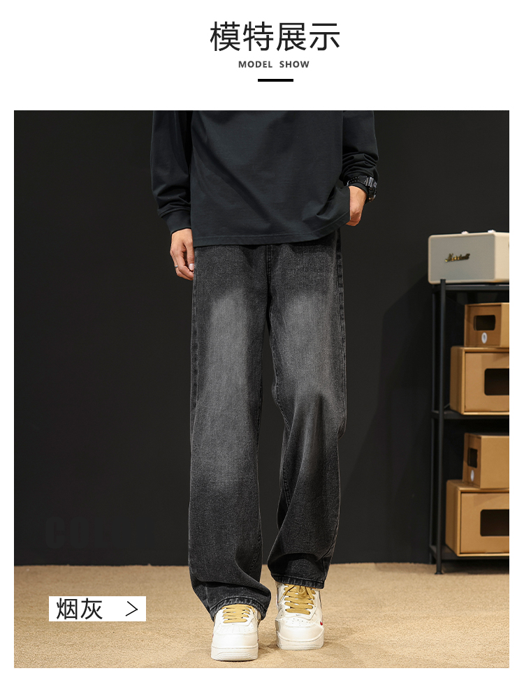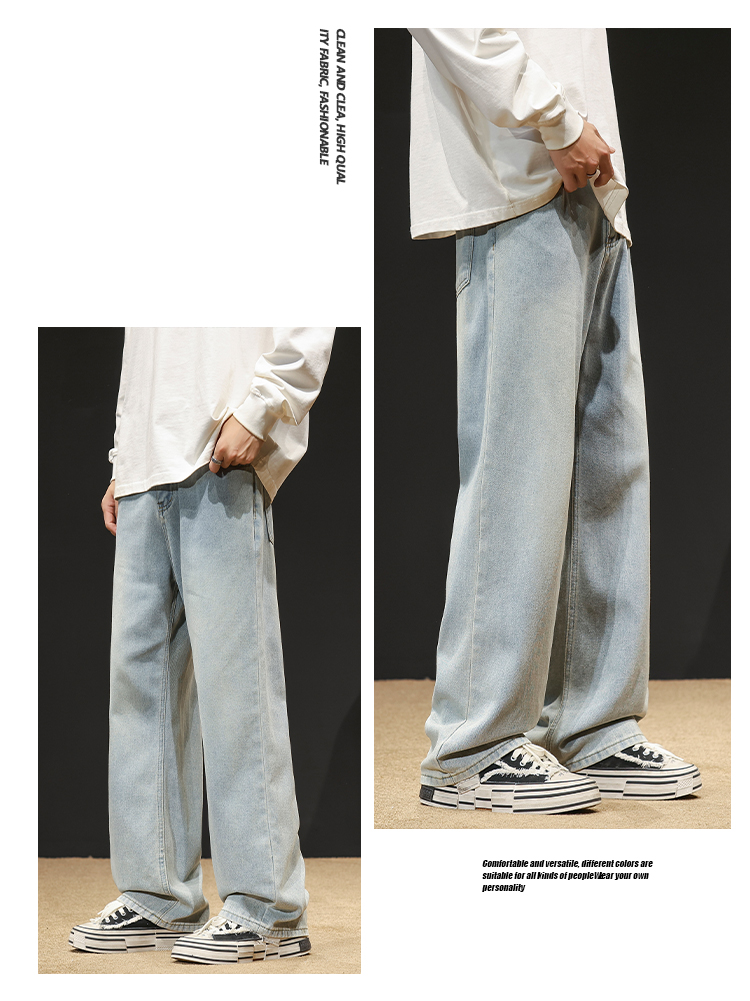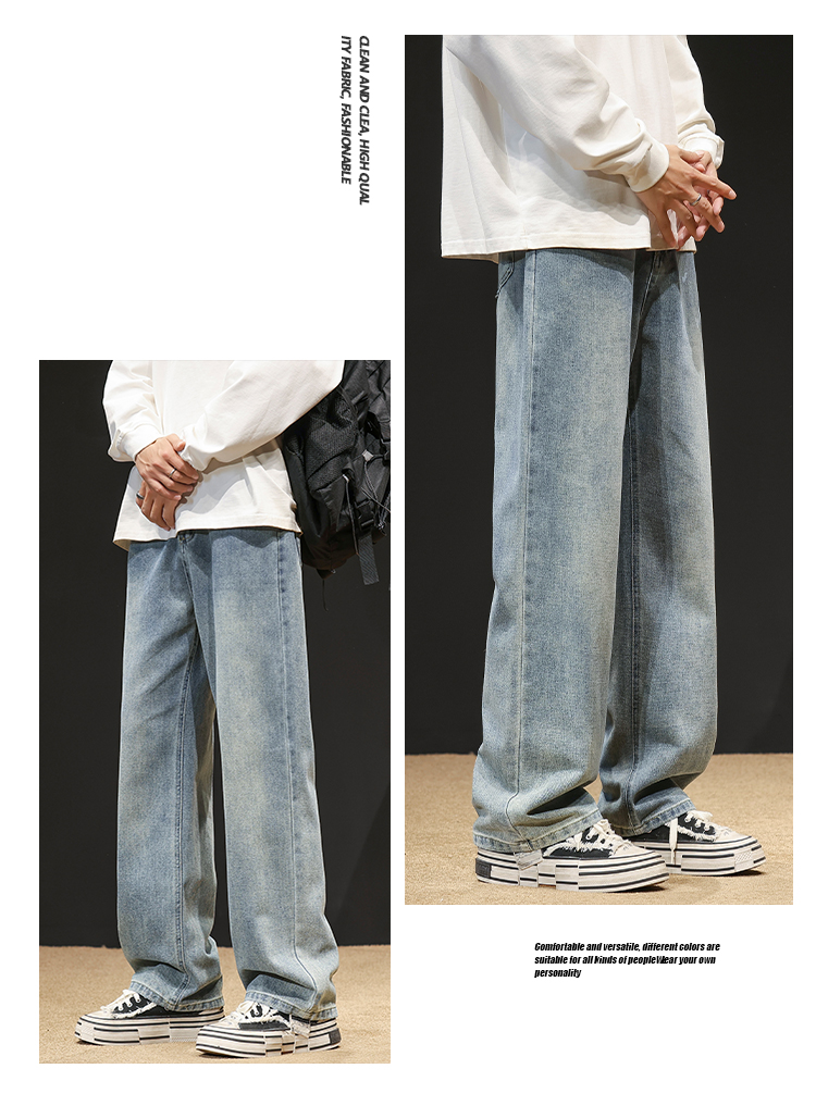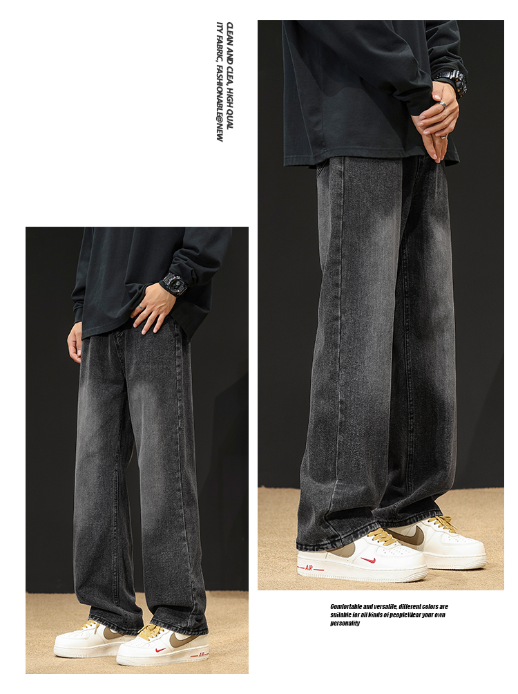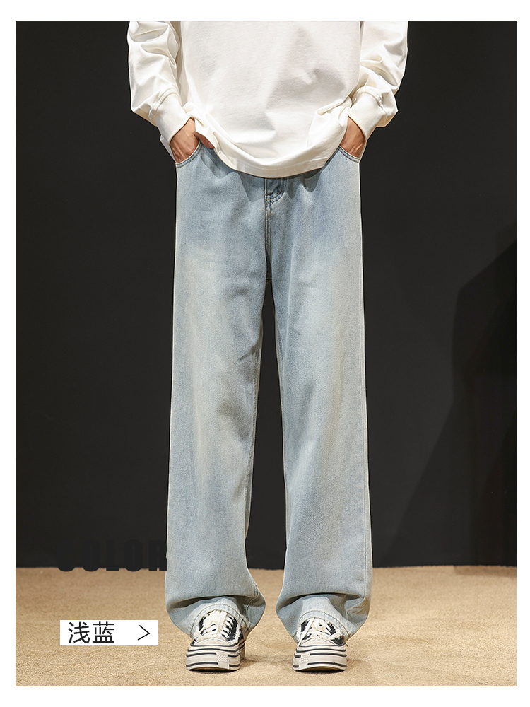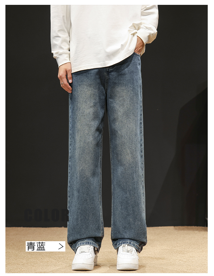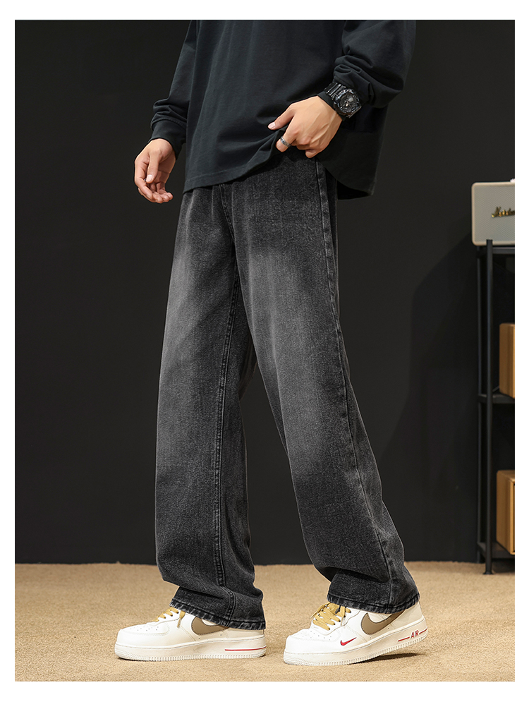 American Style Trendy Men's Jeans, Autumn and Winter Fleece-Lined, Thickened, Washed, High Street Straight-Leg Pants, Vintage Casual Long Pants