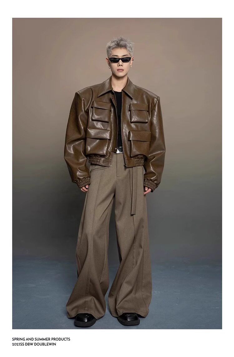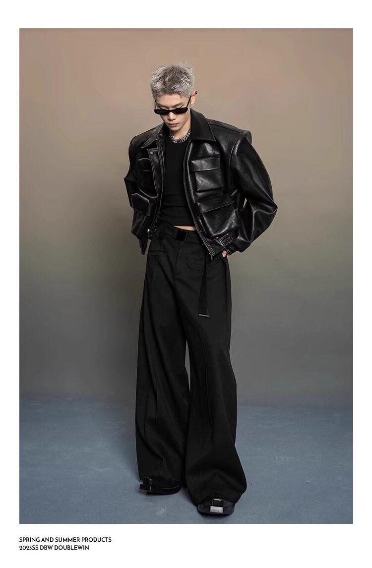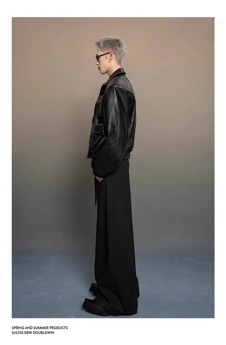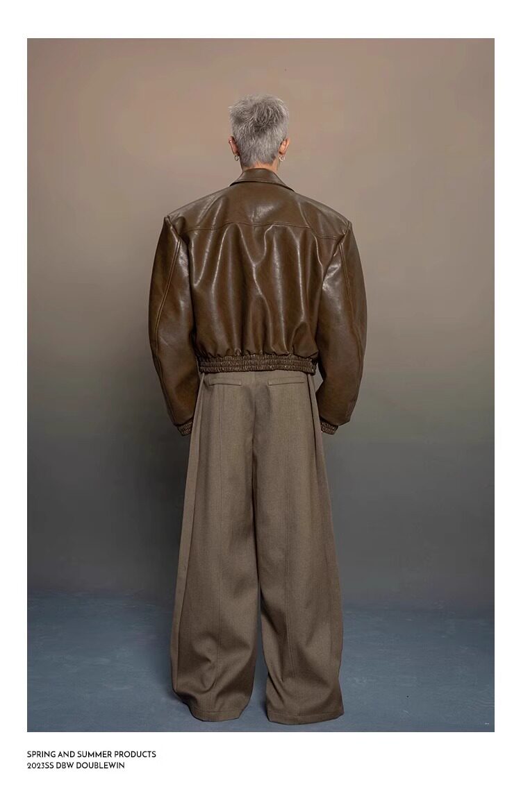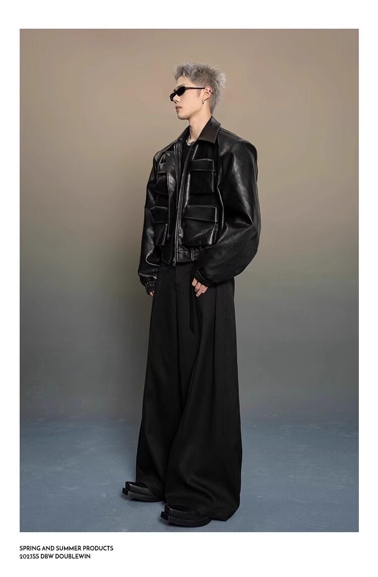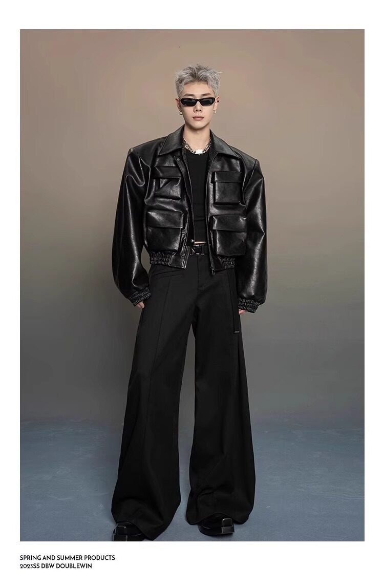 American-Style Dark Silhouette Short Leather Jacket for Men and Women, Casual Lapel, Cool and Trendy Biker Leather Jacket Top