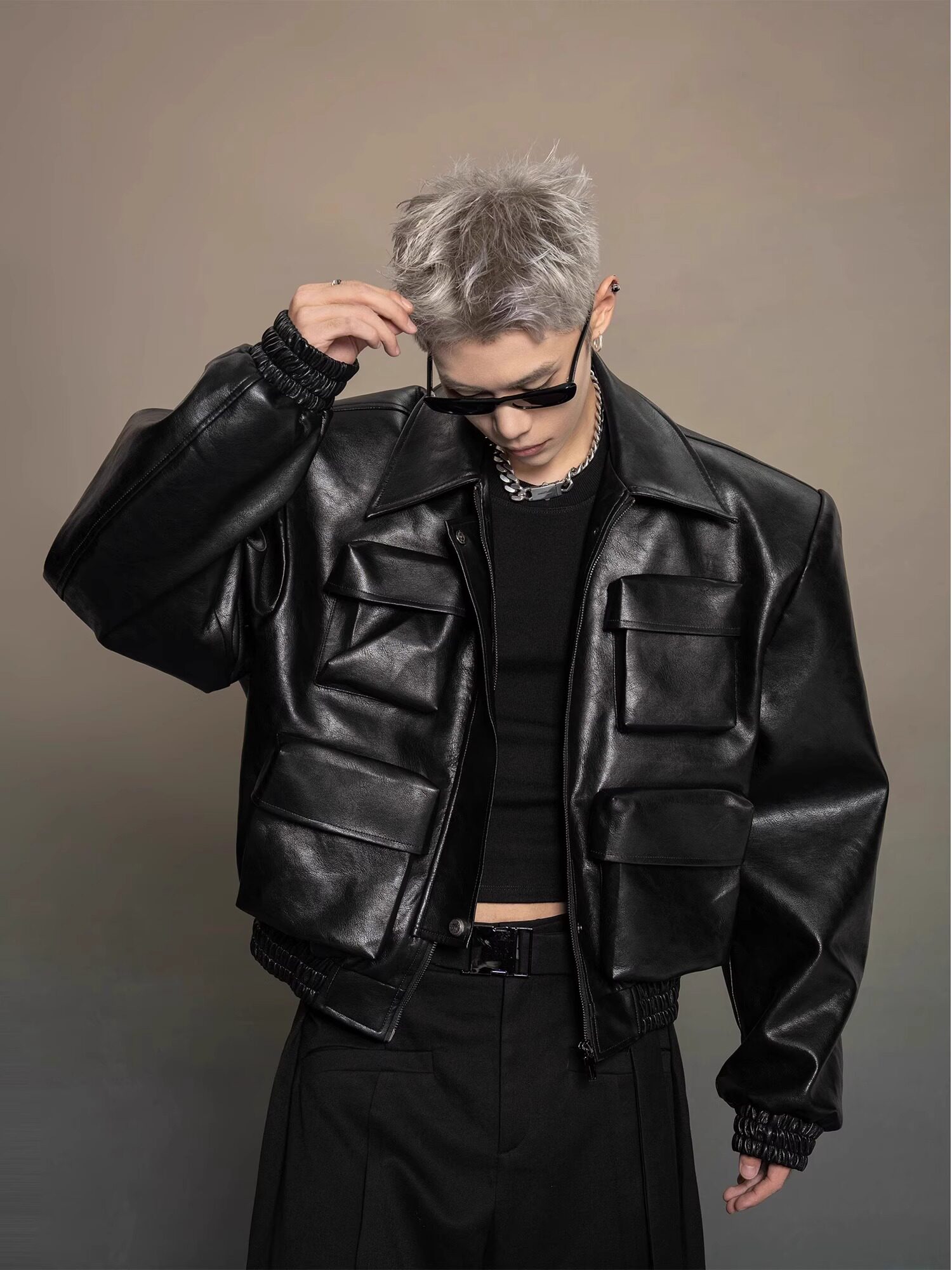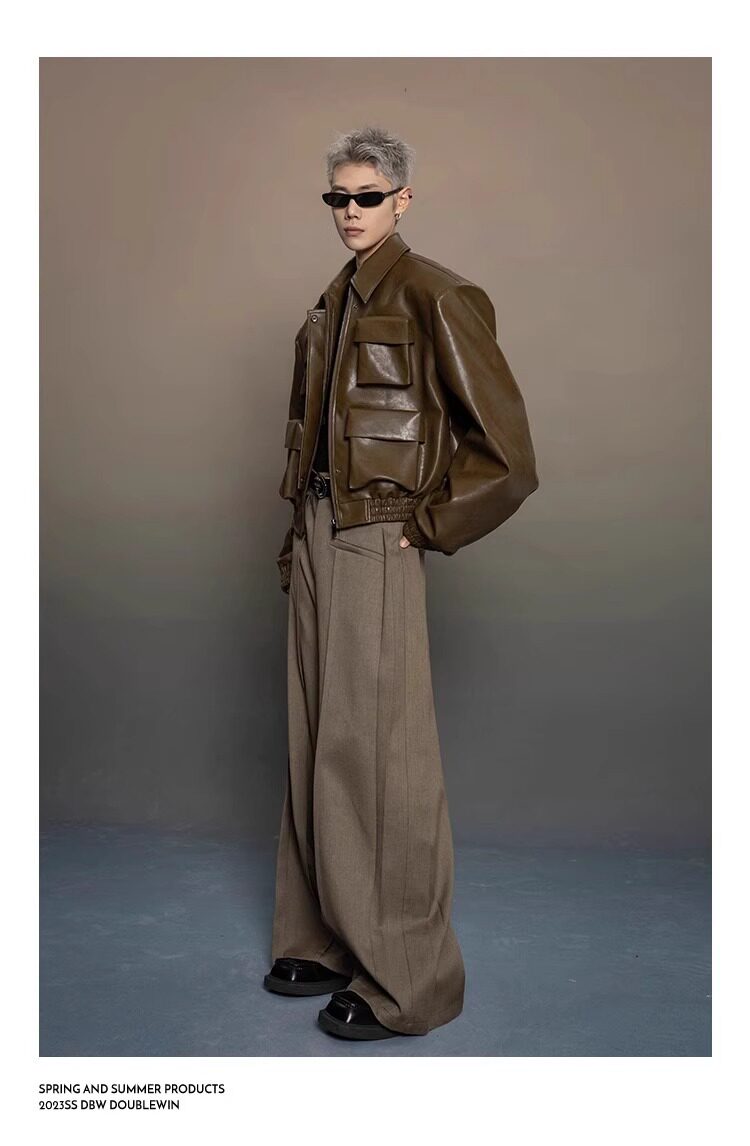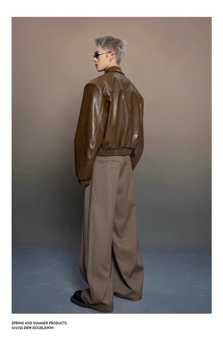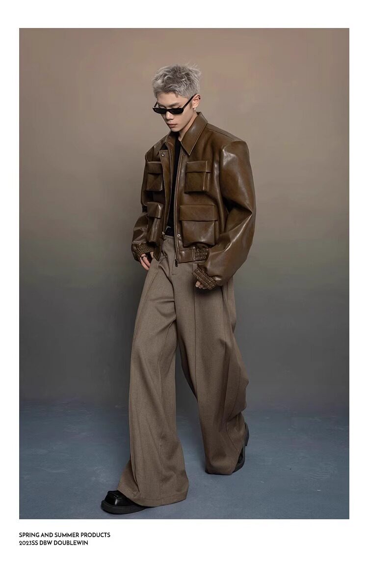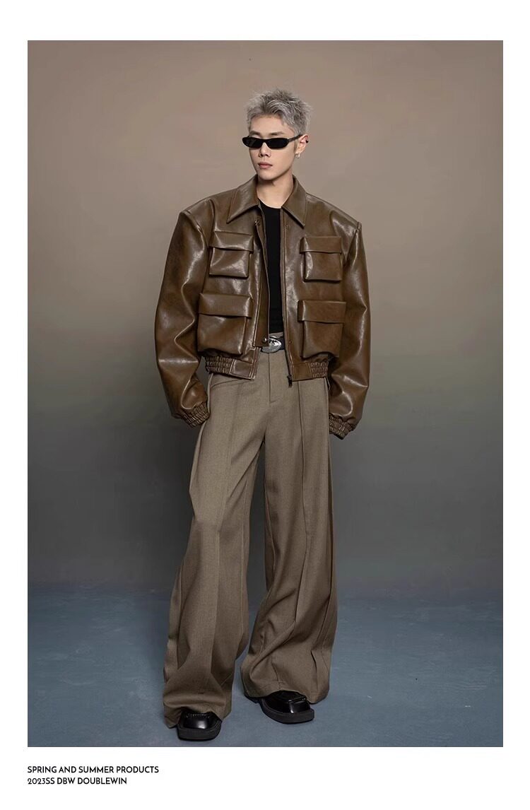 American-Style Dark Silhouette Short Leather Jacket for Men and Women, Casual Lapel, Cool and Trendy Biker Leather Jacket Top