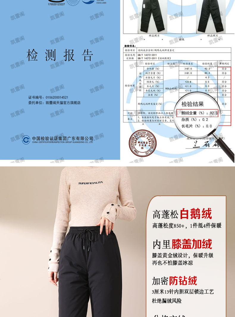 Pierre Cardin -40 Degree down Pants for Women, Suitable for Outdoor Wear, Detachable, Winter, Loose Fit, Plus Size, for Middle-Aged and Elderly, Goose down Pants