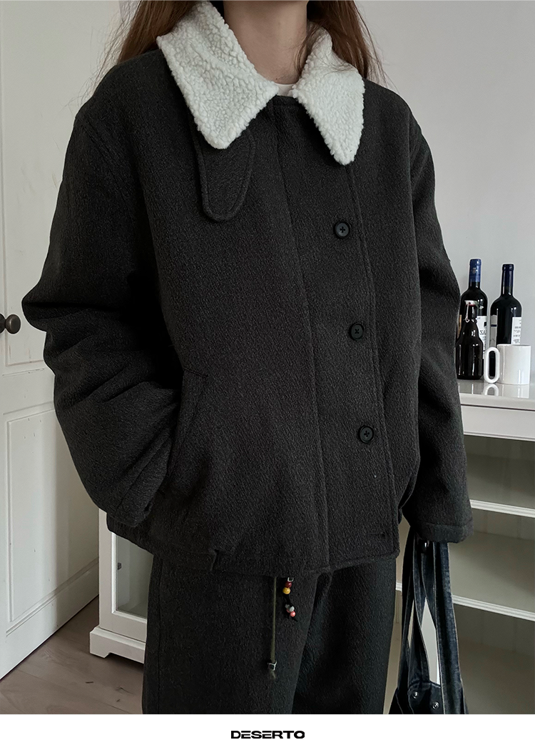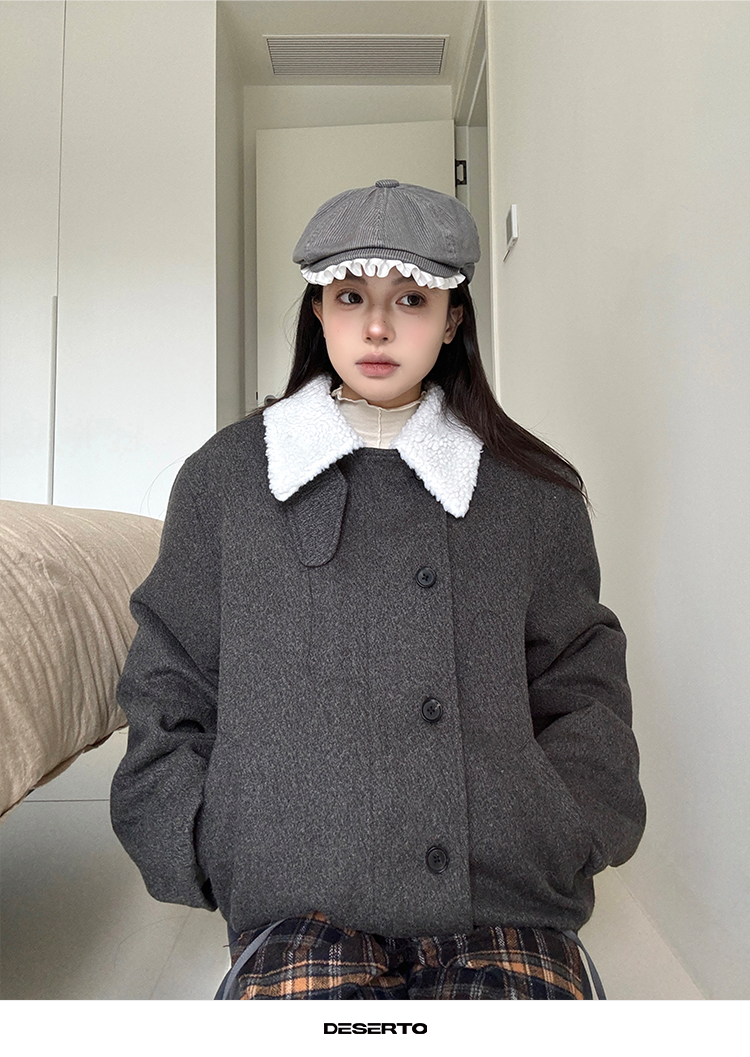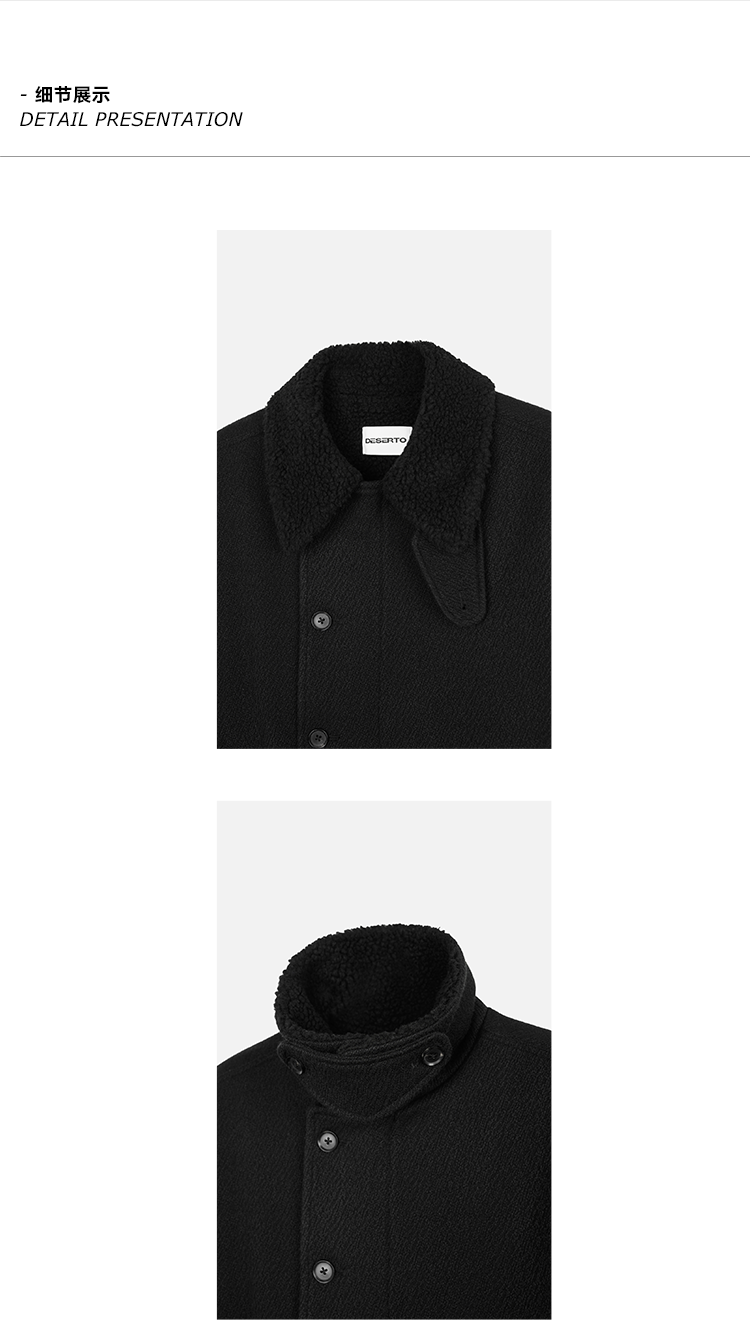 Deserto Wool Blend Imitation Lamb Wool Lining Fur Collar Stand Collar Warm Autumn and Winter Casual Cotton Jacket for Men