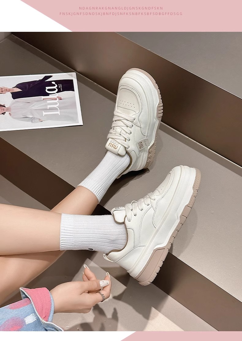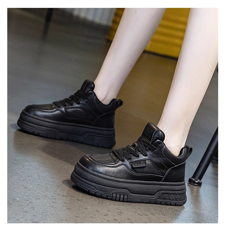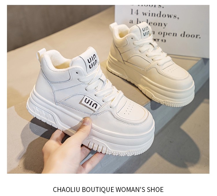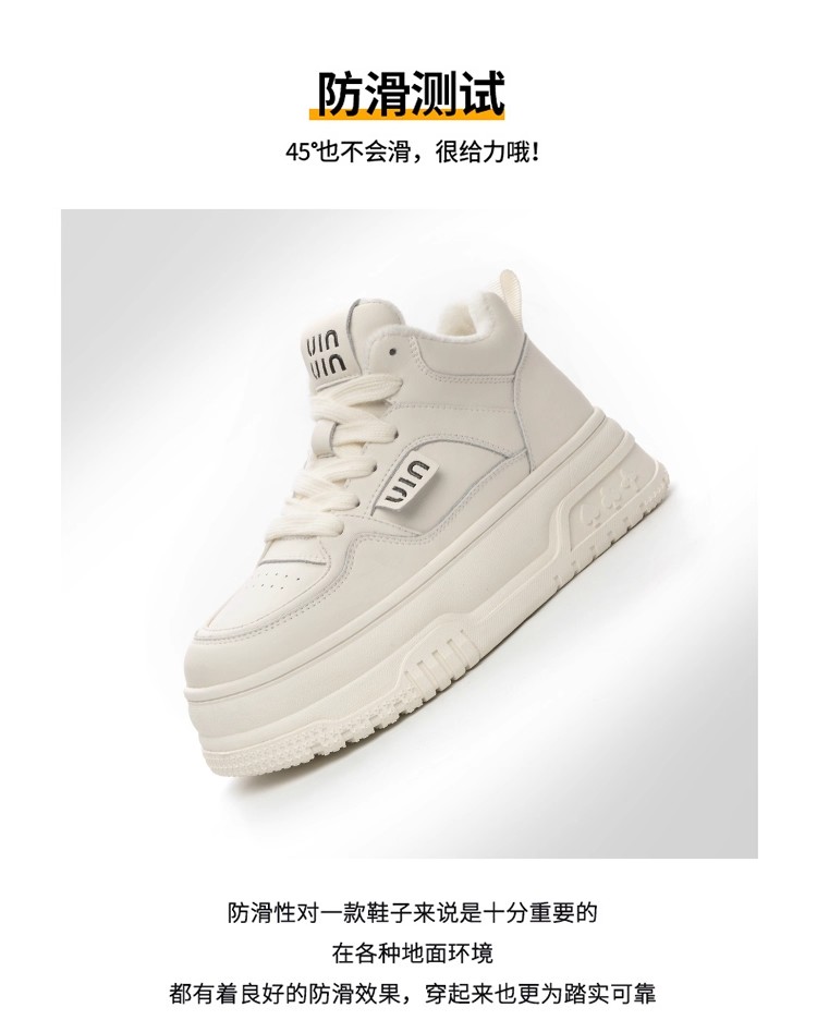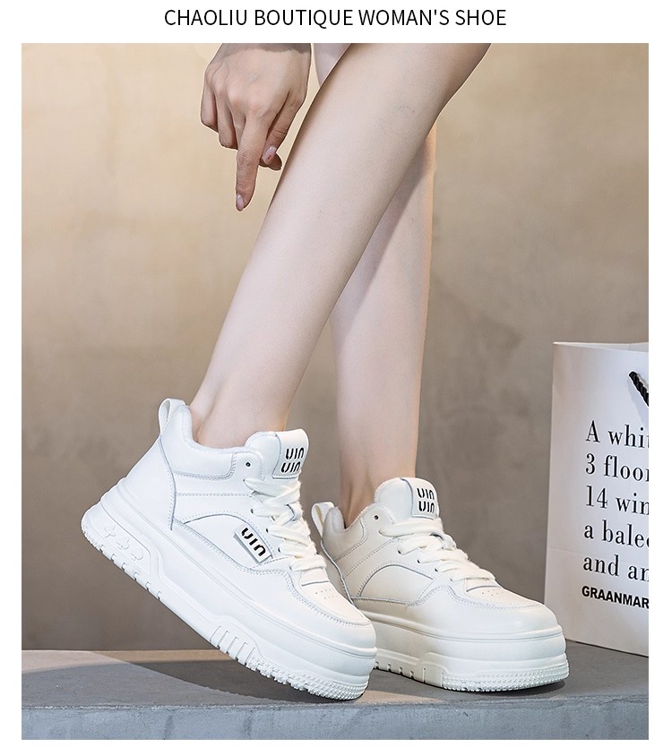 Hong Kong Genuine Leather Fashionable Versatile High-Top White Sneakers for Women 2025 Spring and Autumn Fleece-Lined Thick-Soled Height-Increasing Sports Casual Sneakers