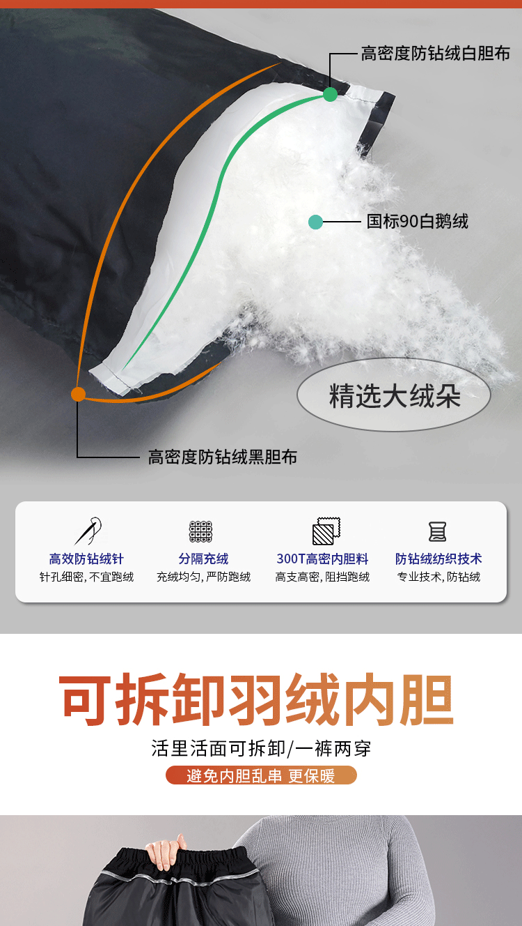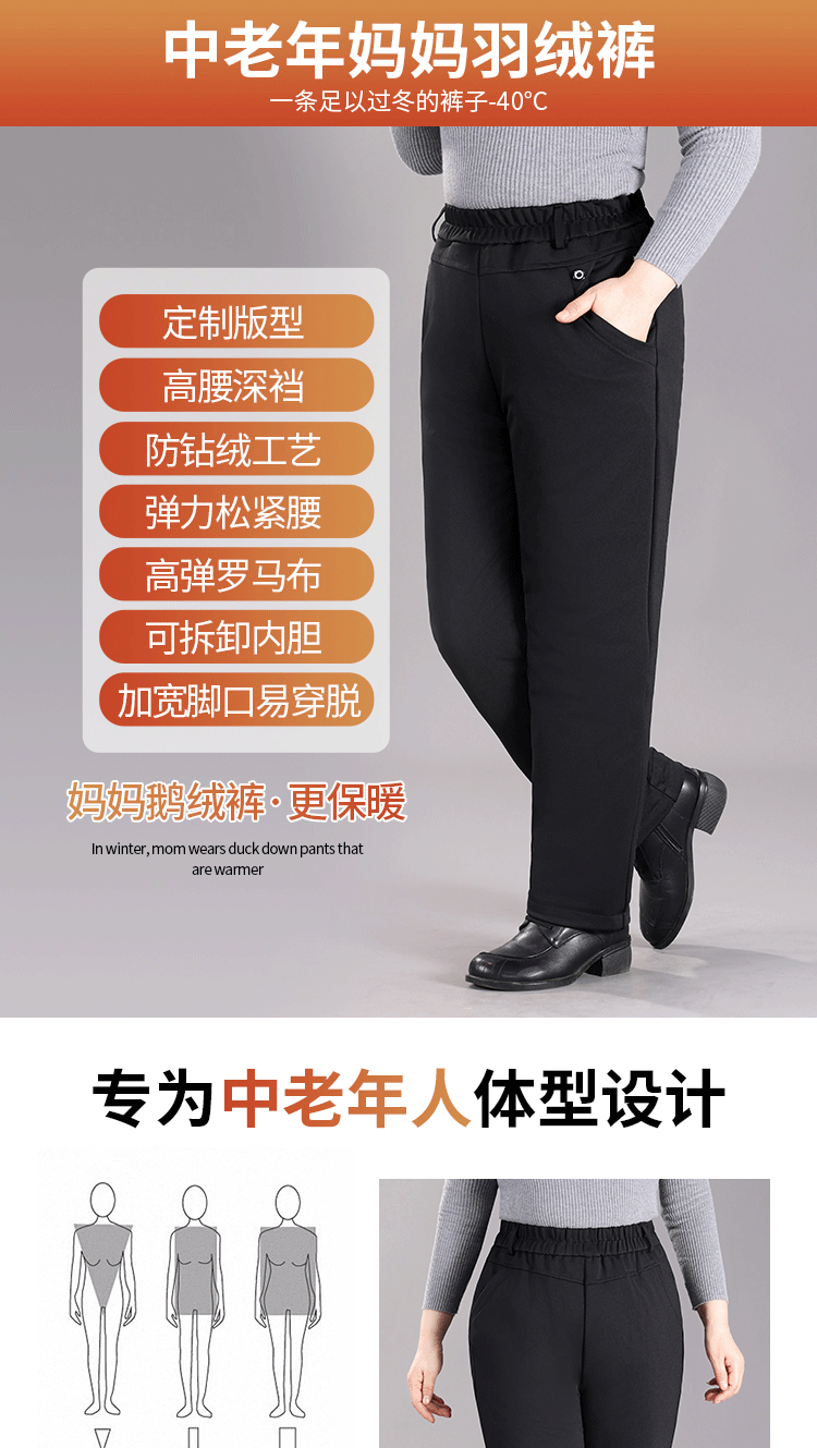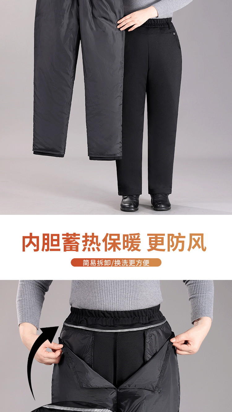White Goose down Pants for Middle-Aged and Elderly Women, Detachable Liner, Winter Large Size, Thick Cotton Pants for Grandma and Mom, Goose down Pants