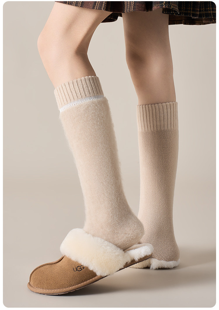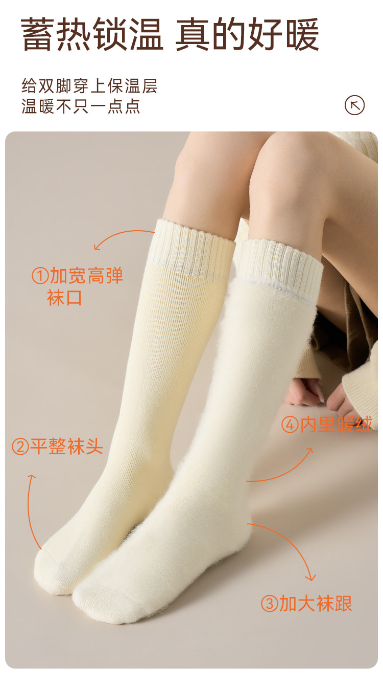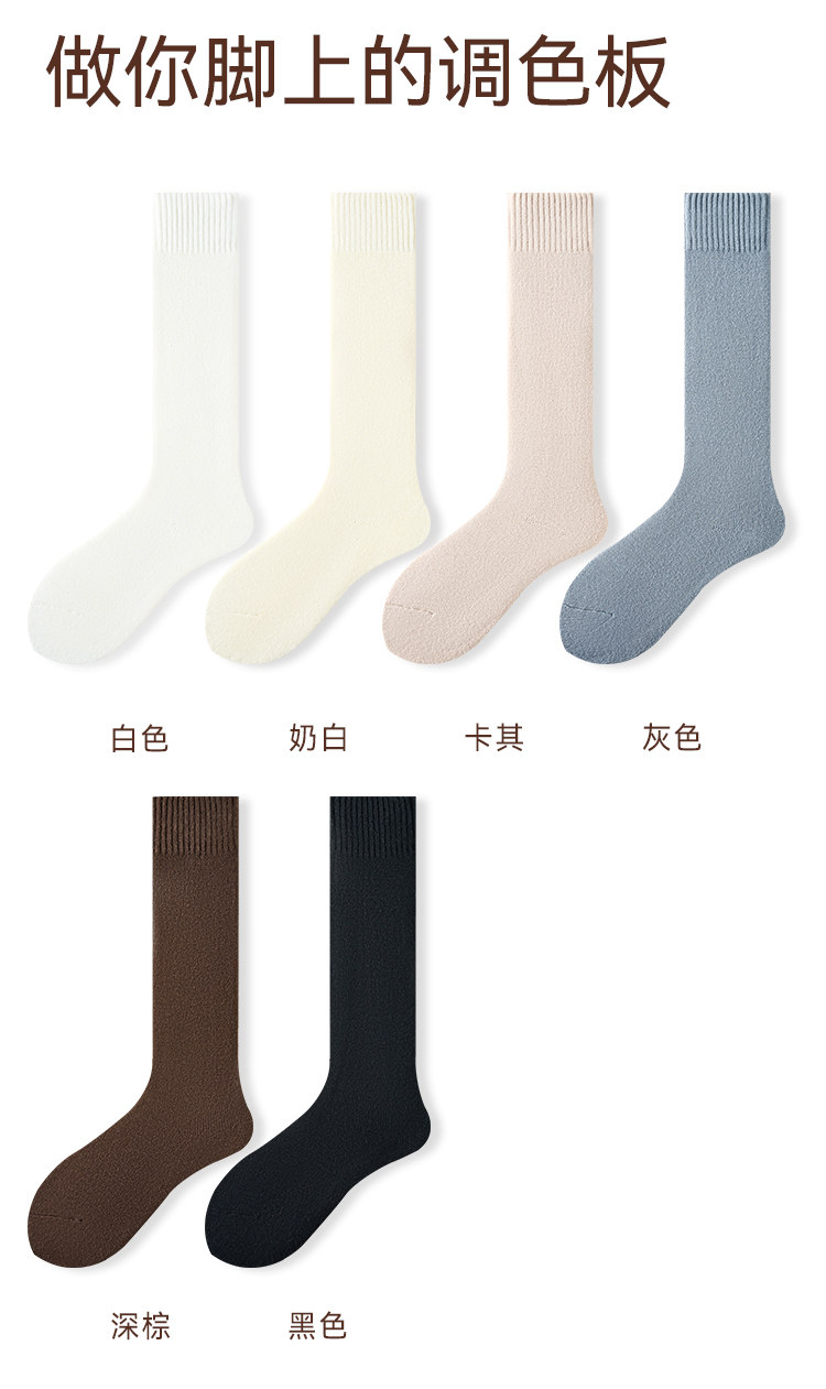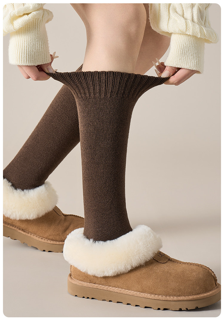 Cashmere Socks for Women, Autumn and Winter Style, Thickened Warm Terry Knee-High Socks, Fleece-Lined Home Floor Socks for Women in Winter