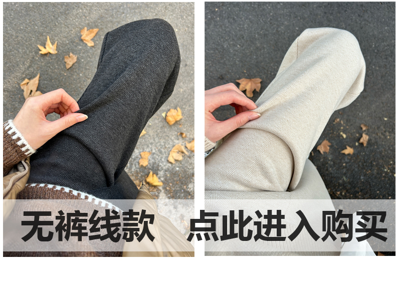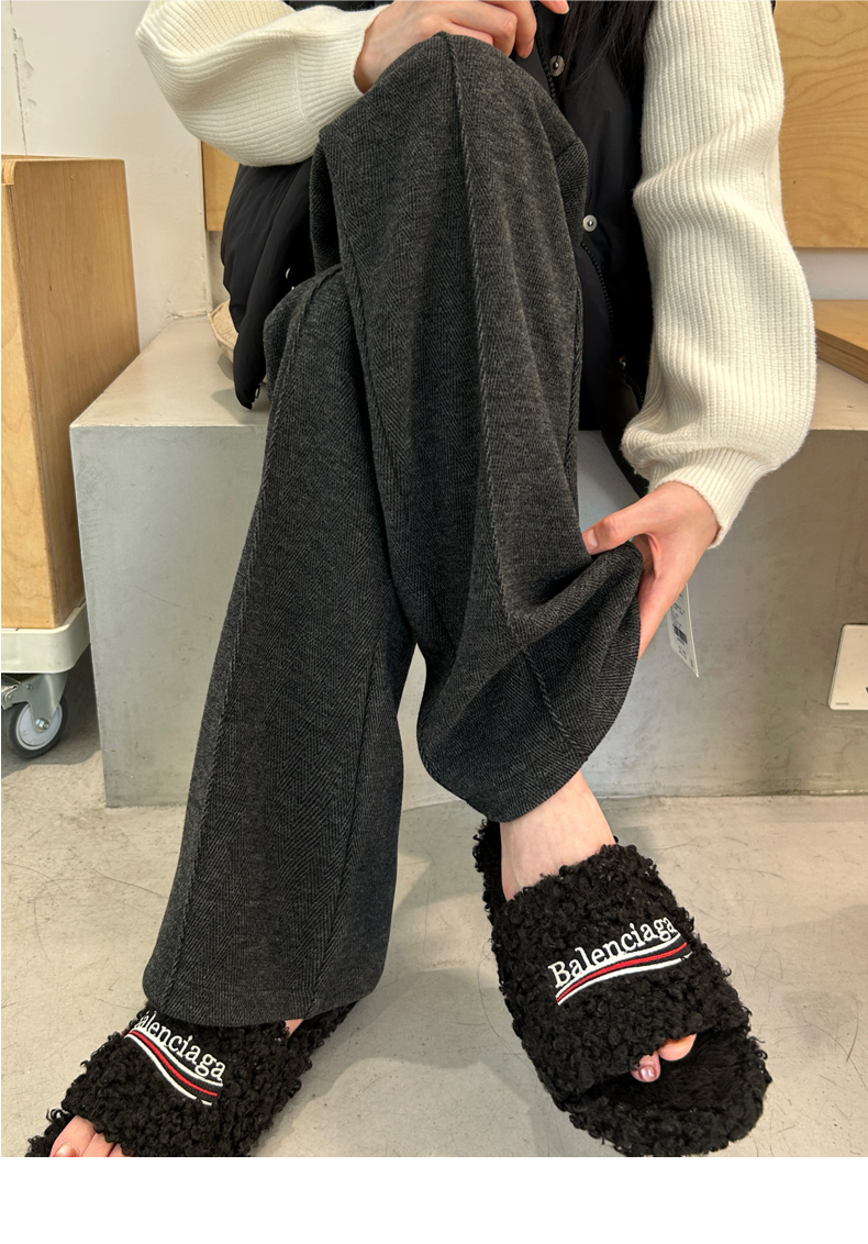 Fleece-Lined Narrow Wide-Leg Pants 2025 Autumn and Winter Drapey High-Waisted Straight-Leg Pants Women's Casual Woolen Pants Herringbone Pattern
