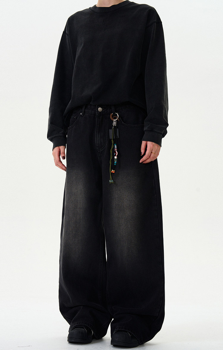 Madwitch Retro Washed Bootcut Jeans for Men and Women, Loose Casual Wide-Leg Straight Black Pants ins