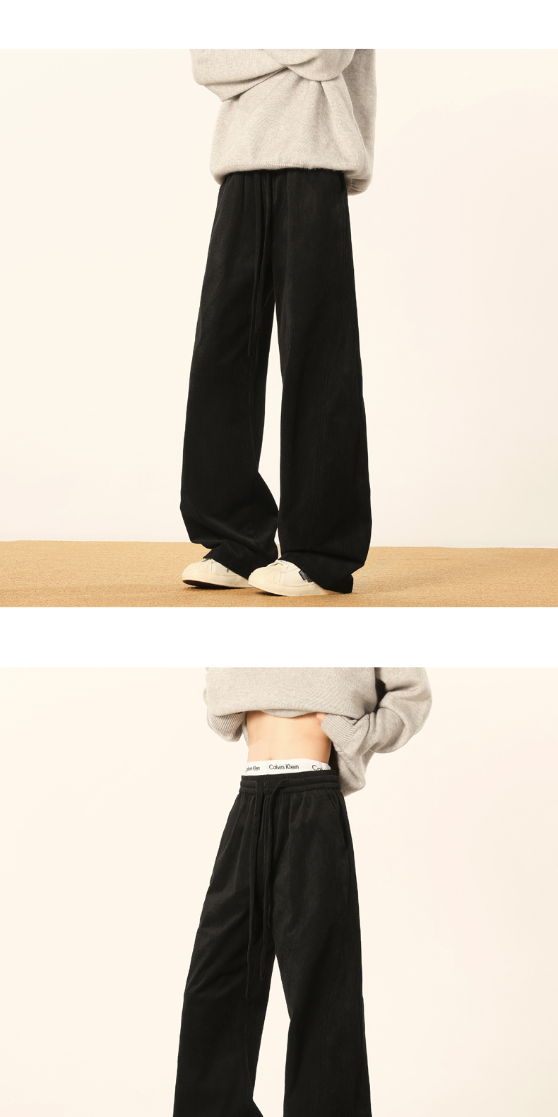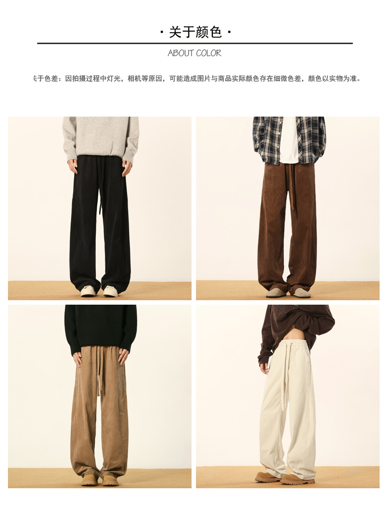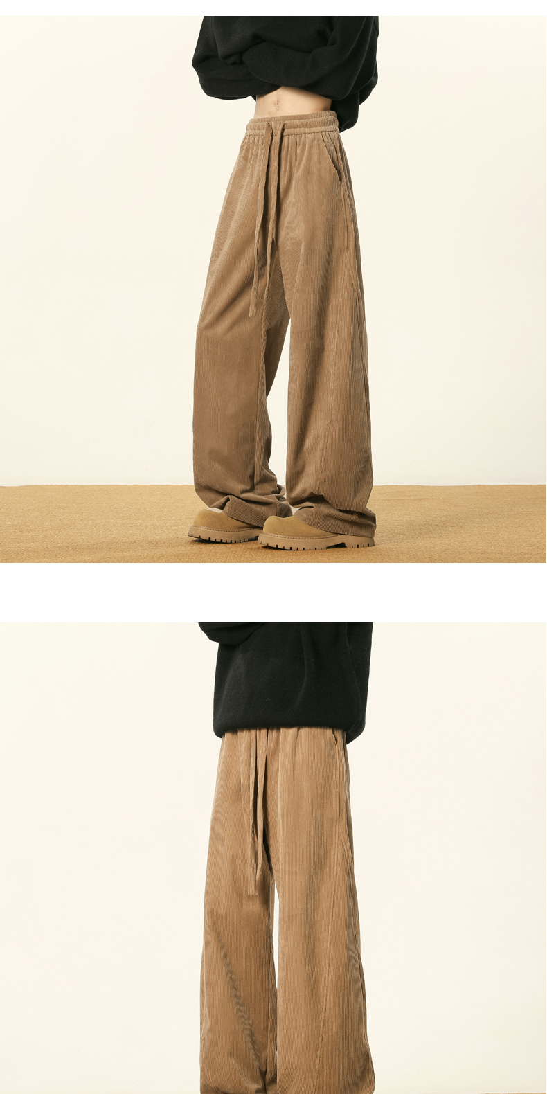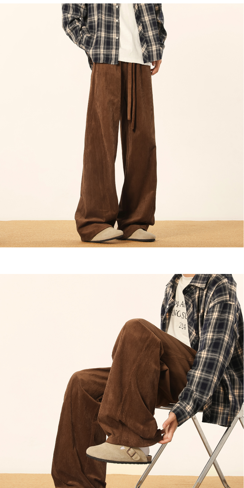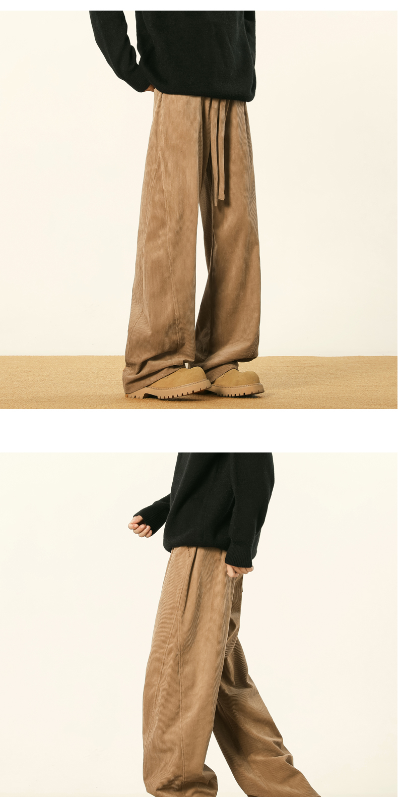 American-Style Old Money Corduroy Sweatpants for Men, Autumn Vintage Fleece-Lined Drapey Casual Pants, Trendy Loose Thickened Wide-Leg Pants