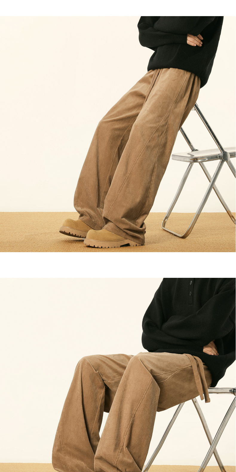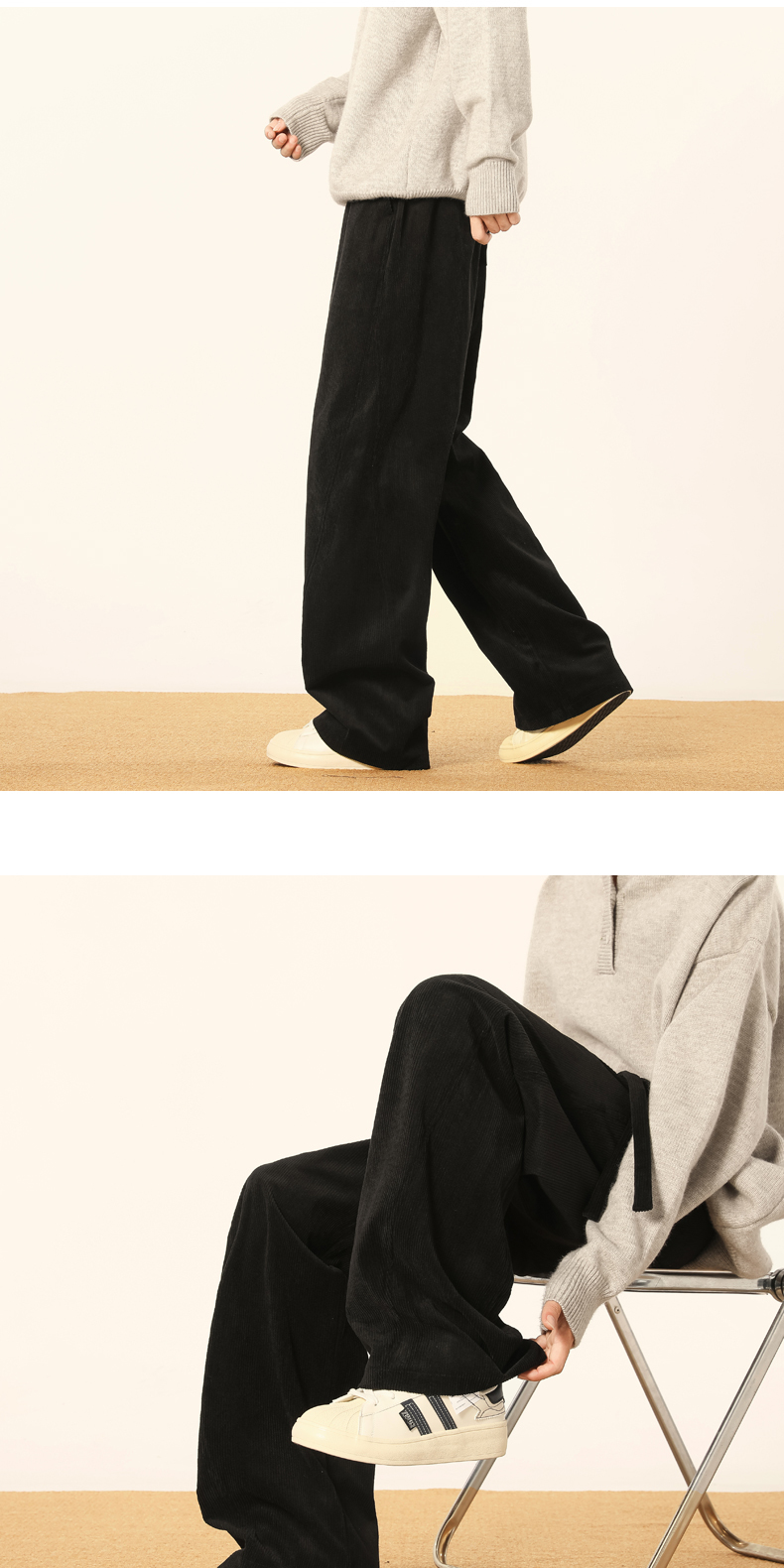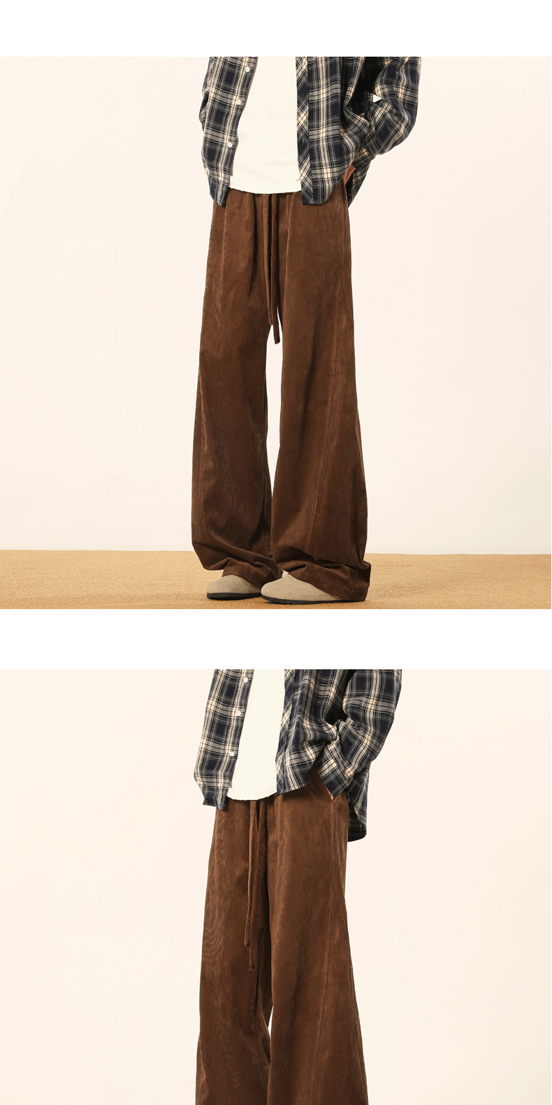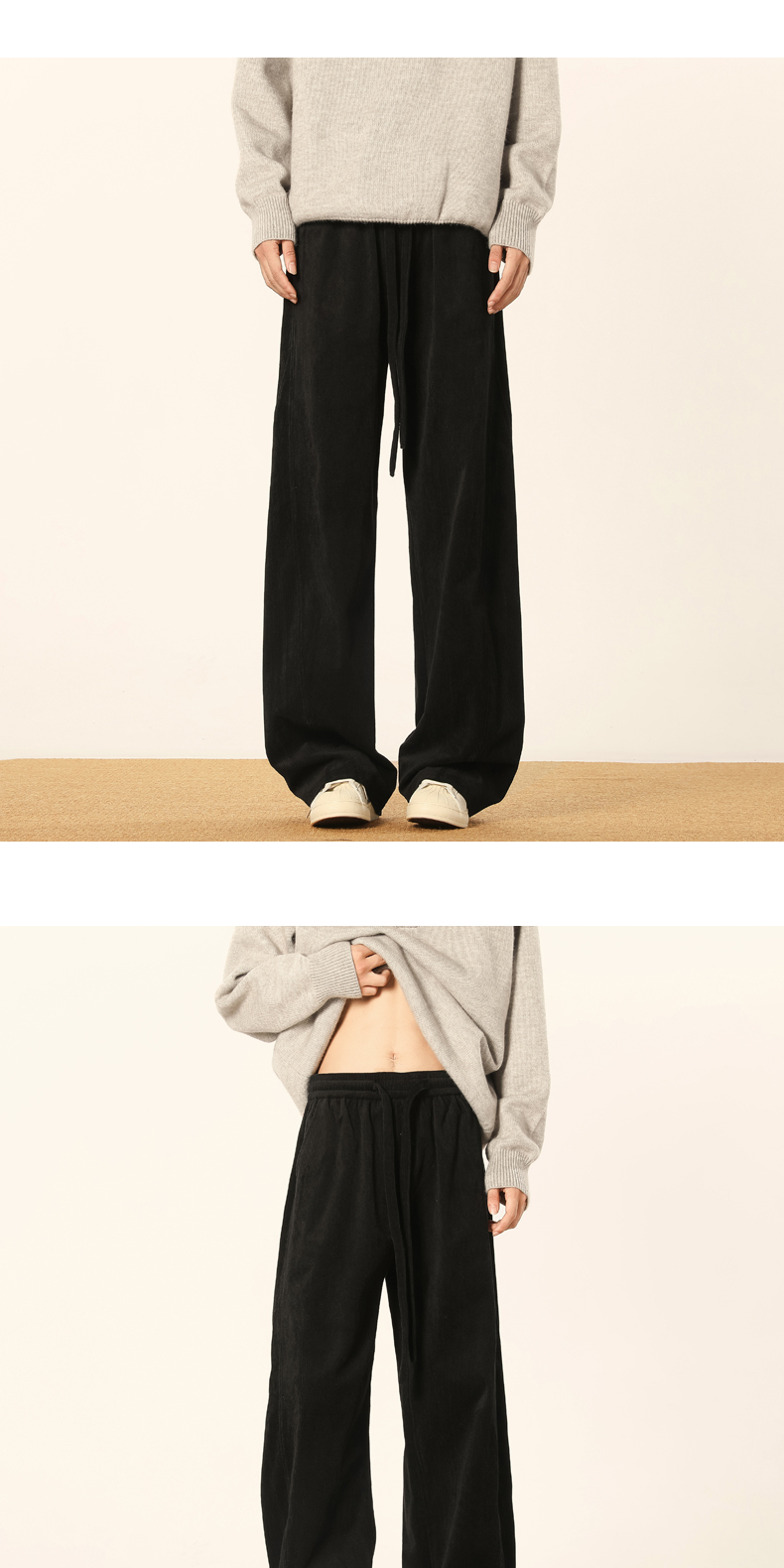 American-Style Old Money Corduroy Sweatpants for Men, Autumn Vintage Fleece-Lined Drapey Casual Pants, Trendy Loose Thickened Wide-Leg Pants