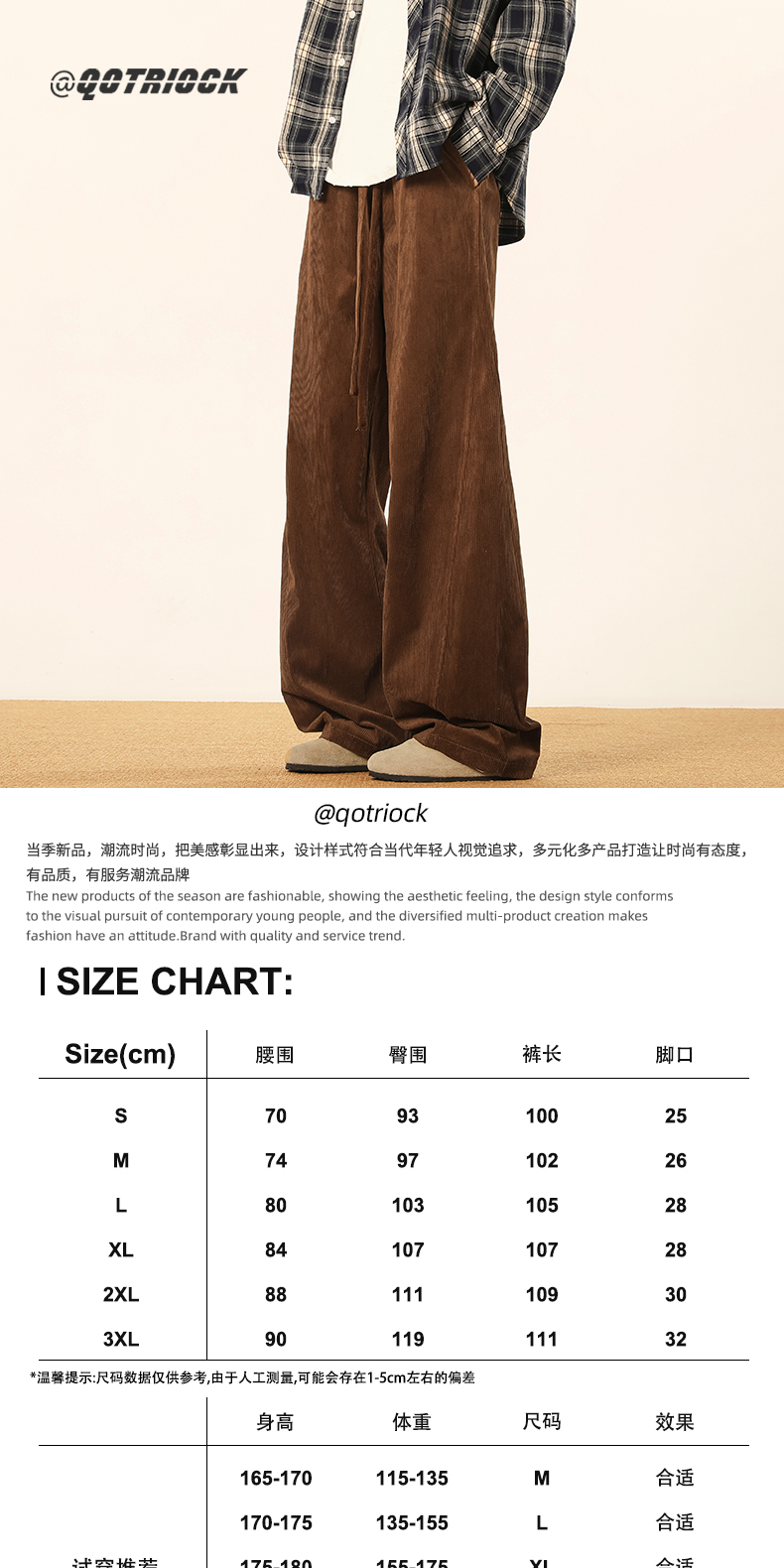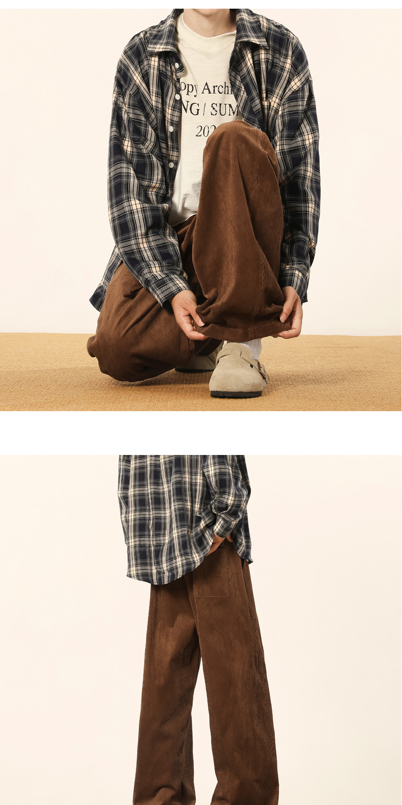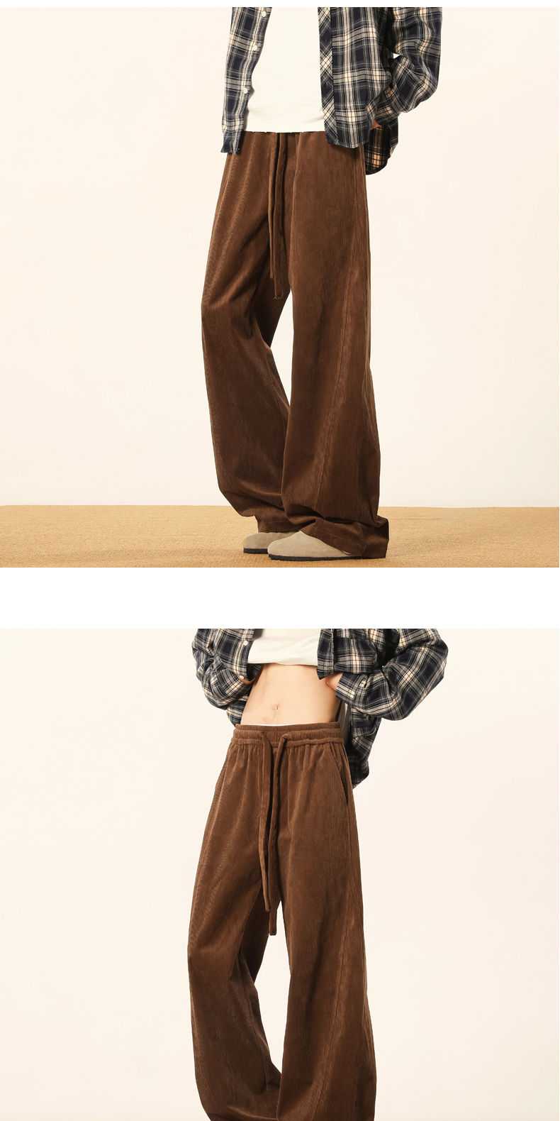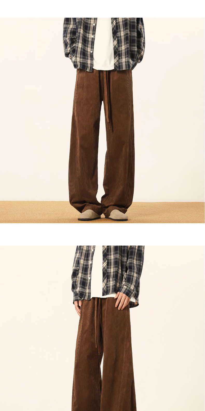 American-Style Old Money Corduroy Sweatpants for Men, Autumn Vintage Fleece-Lined Drapey Casual Pants, Trendy Loose Thickened Wide-Leg Pants