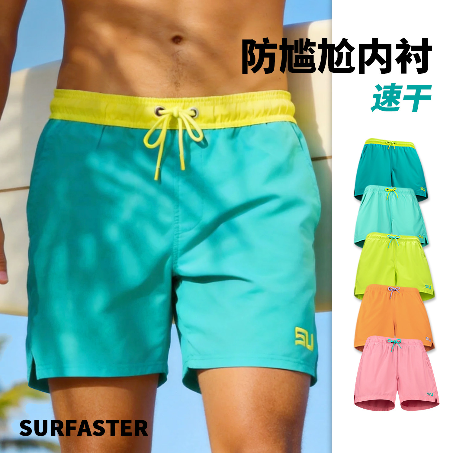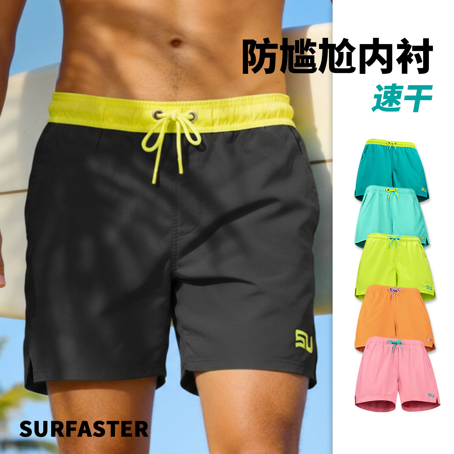 Men's Swimming Trunks for Hot Springs, New Double-Layer Anti-Embarrassment Surfing Beach Pants, Sun Protection Swimsuit Set, Beachwear