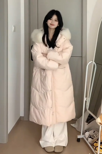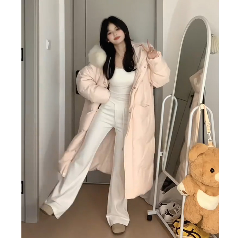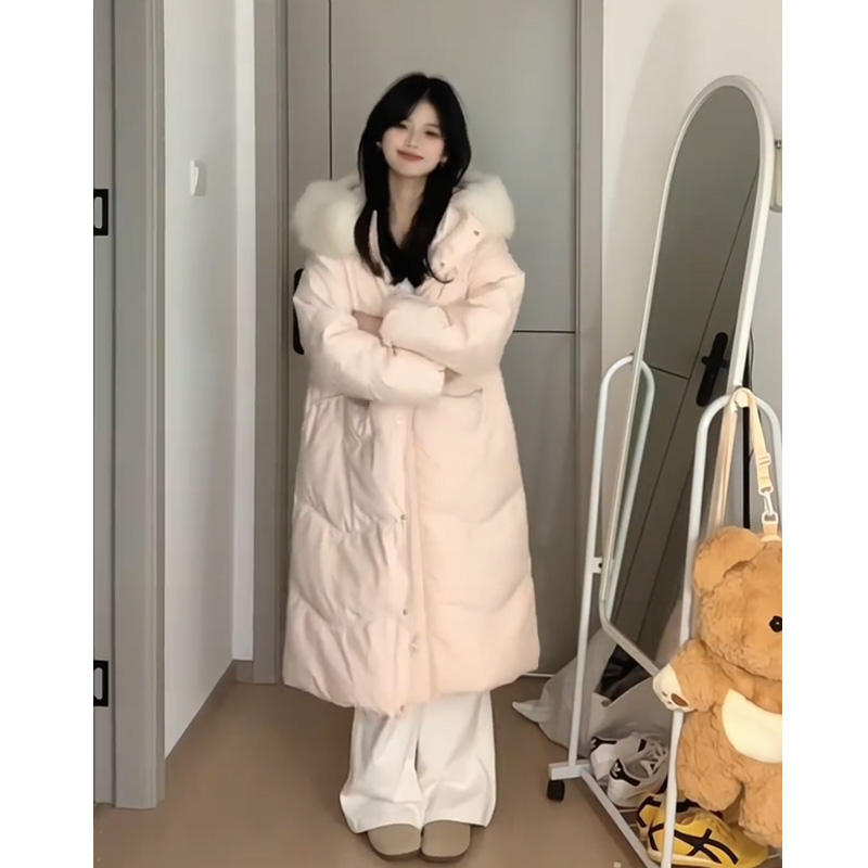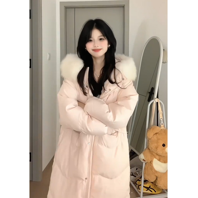 Down Jacket Mid-Length Cotton Coat for Women 2025 New Winter Korean Style Loose Over-The-Knee Large Fur Collar Thickened Cotton-Padded Jacket