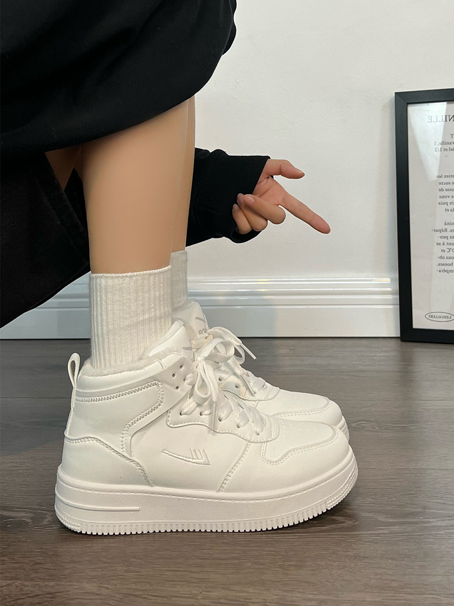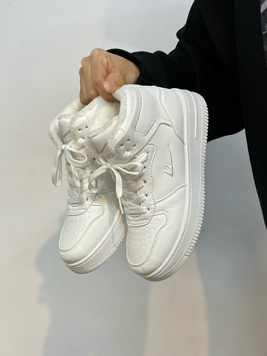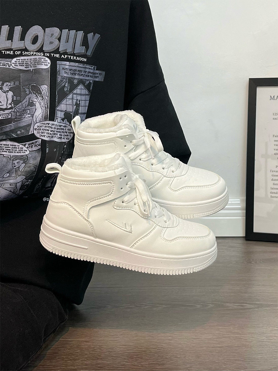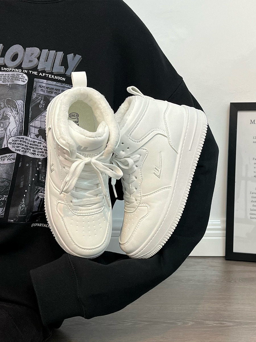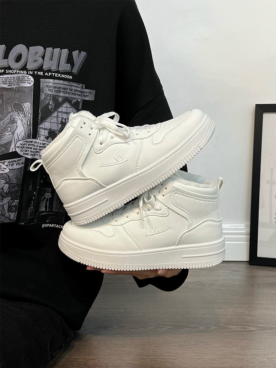 Pull-Back High-Top Men's Shoes for Autumn and Winter 2025, Versatile and Popular Thick-Soled Sneakers, New Warm Fleece-Lined White Cotton Shoes
