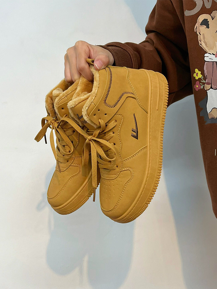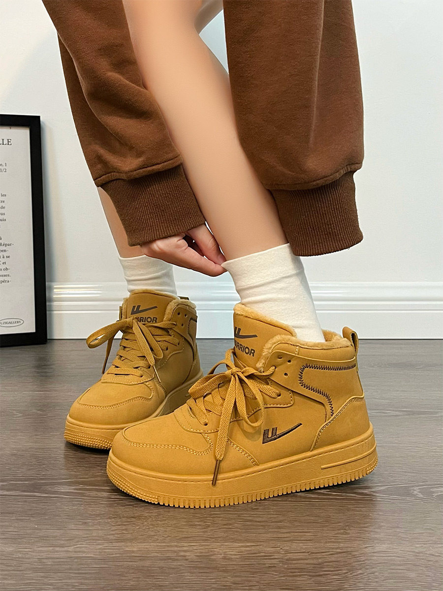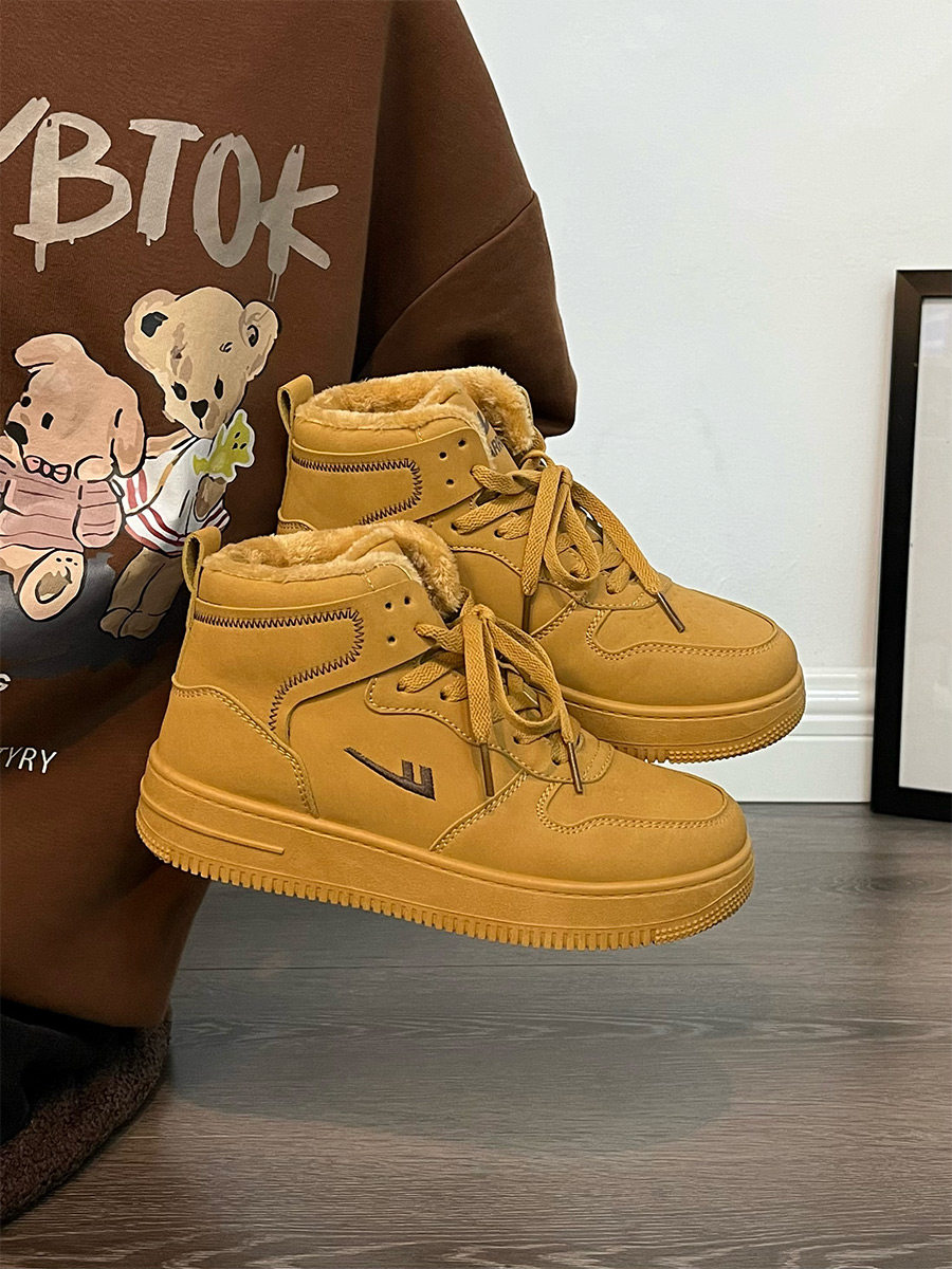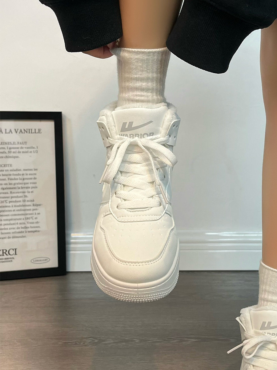 Pull-Back High-Top Men's Shoes for Autumn and Winter 2025, Versatile and Popular Thick-Soled Sneakers, New Warm Fleece-Lined White Cotton Shoes
