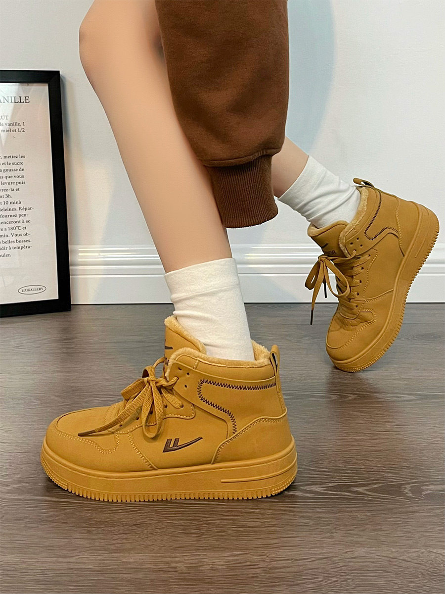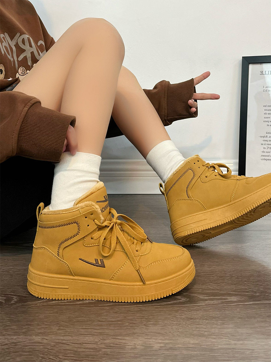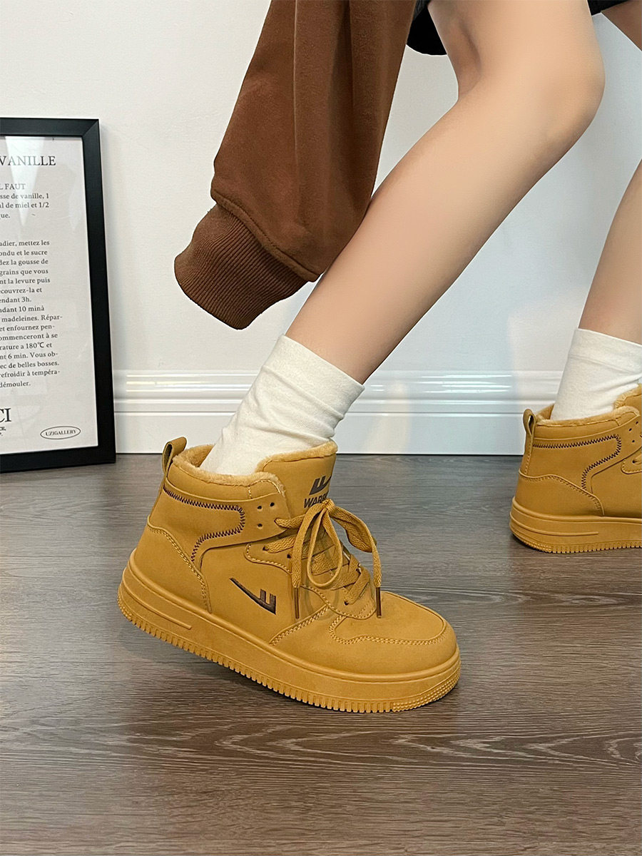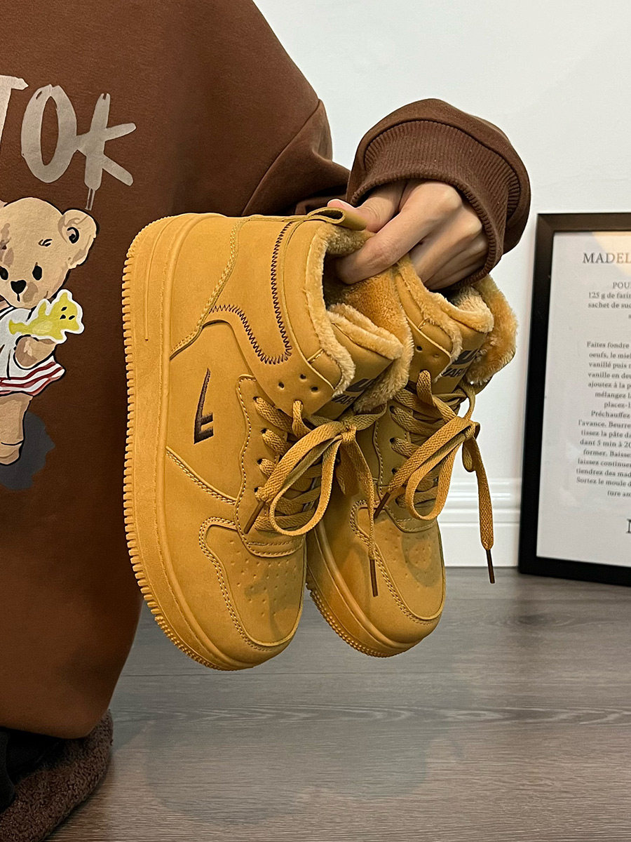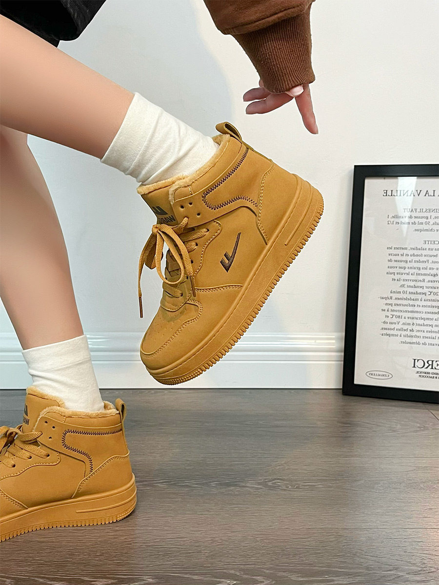 Pull-Back High-Top Men's Shoes for Autumn and Winter 2025, Versatile and Popular Thick-Soled Sneakers, New Warm Fleece-Lined White Cotton Shoes