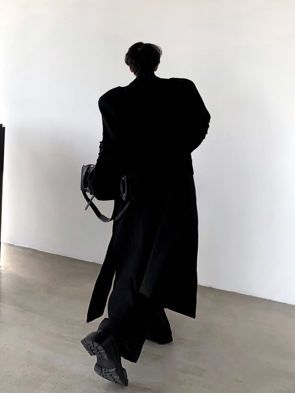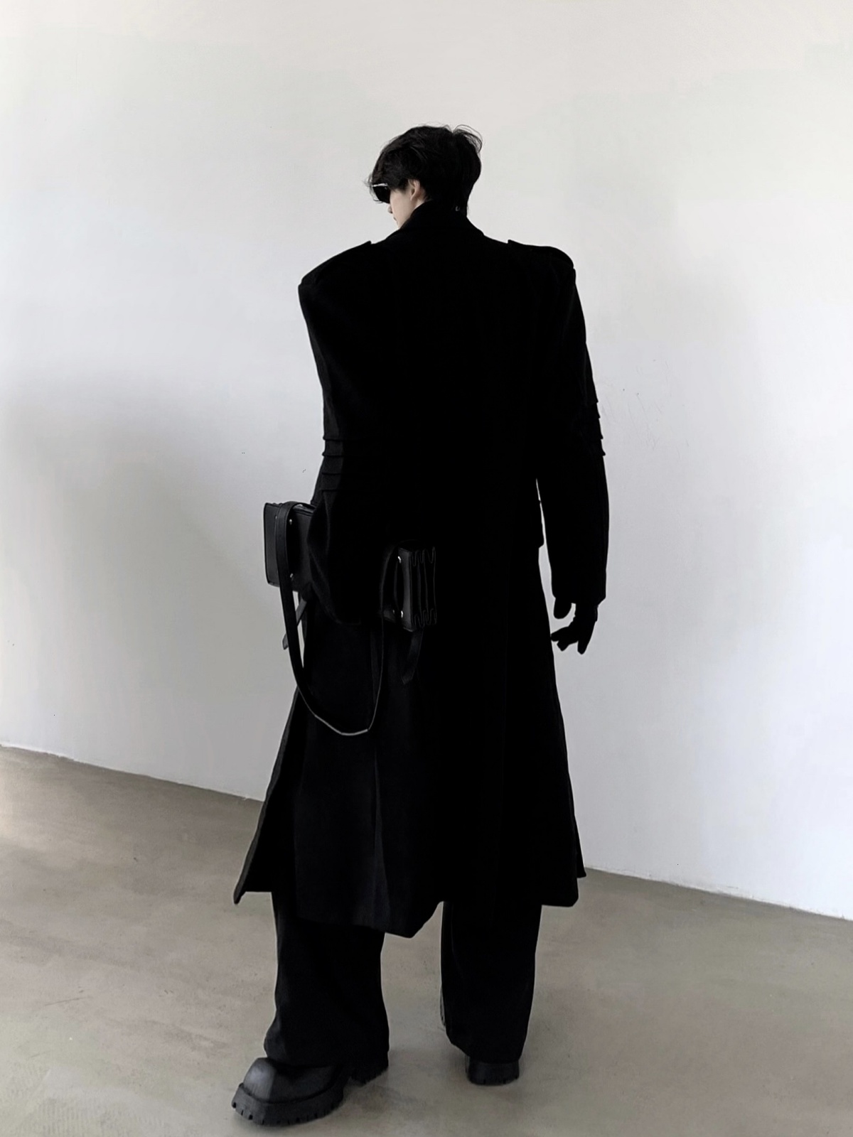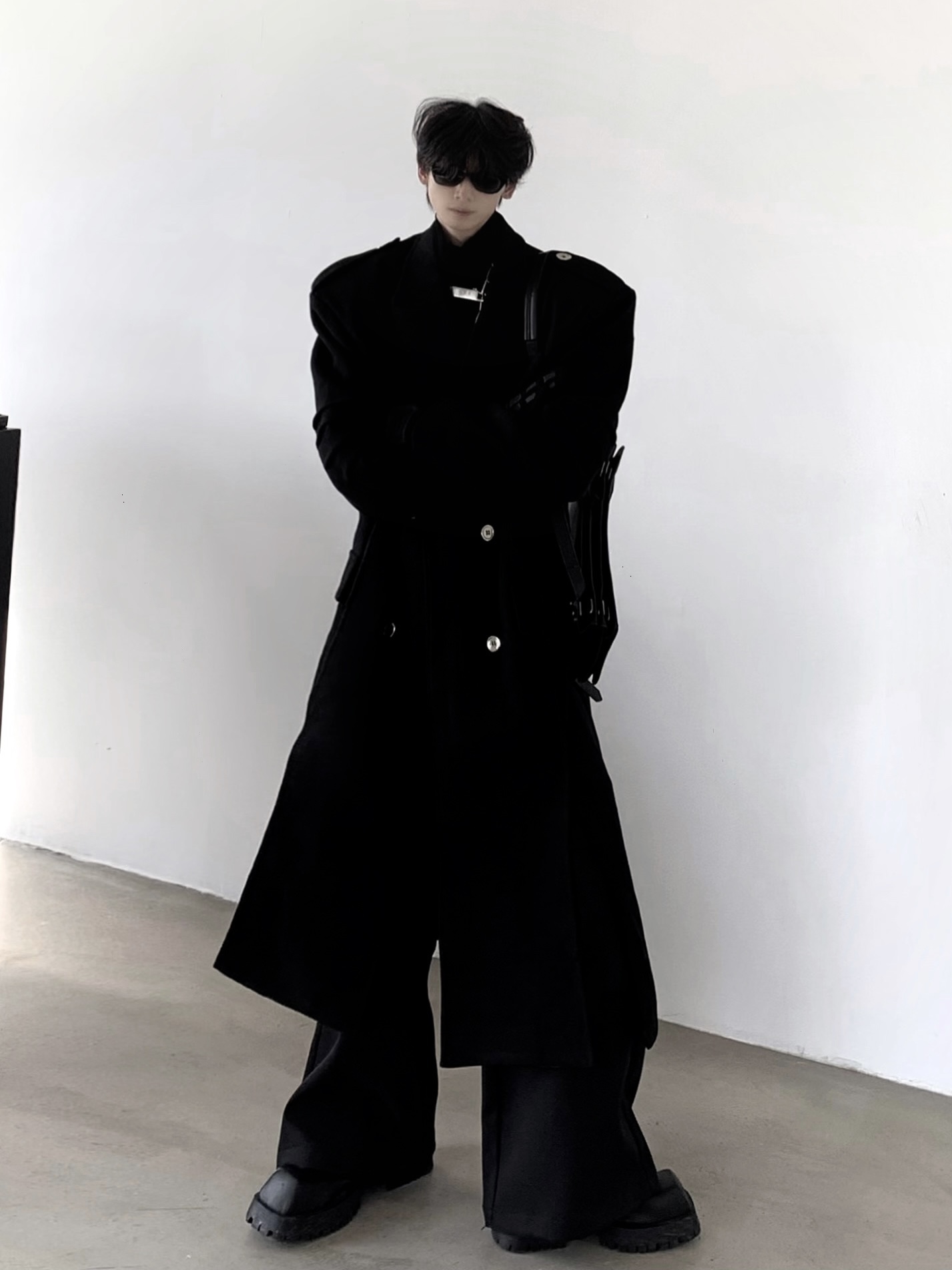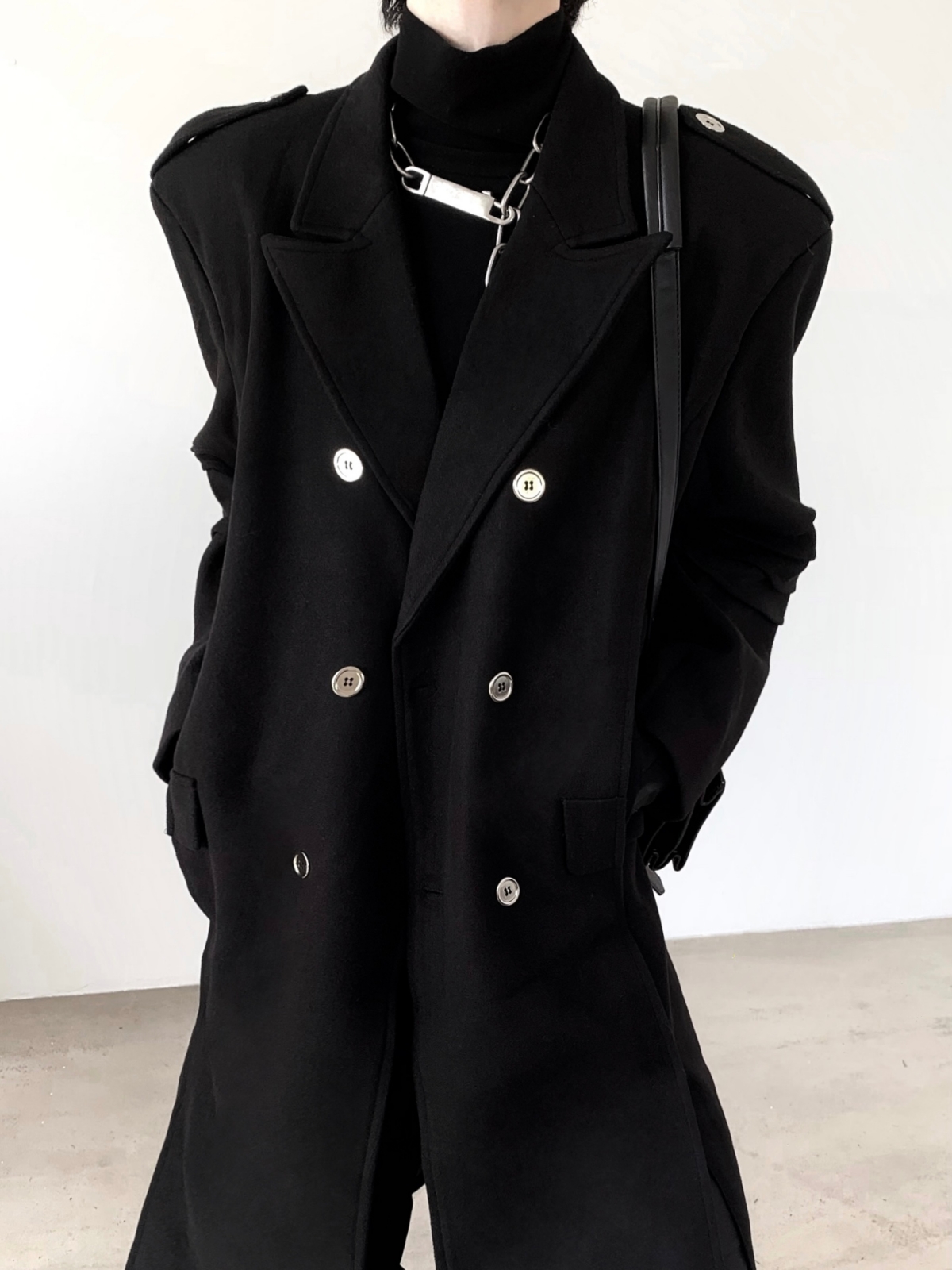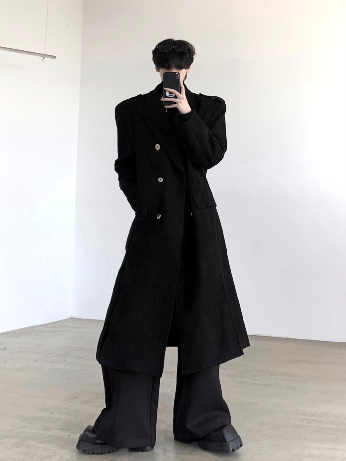 Autumn Mountain Style/Black Oversized Double-Breasted Design Woolen Coat for Men, Niche High-End Mid-Length Trench Coat