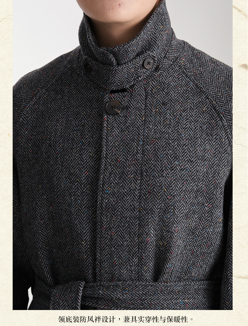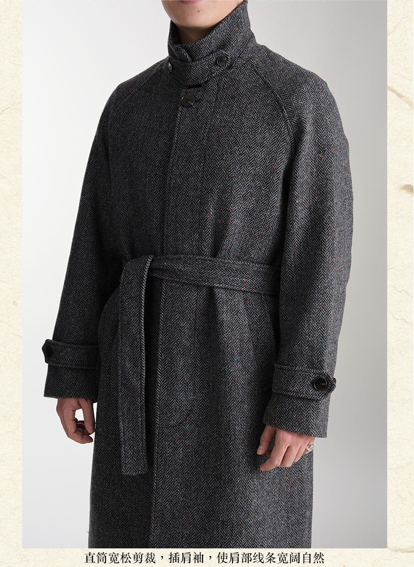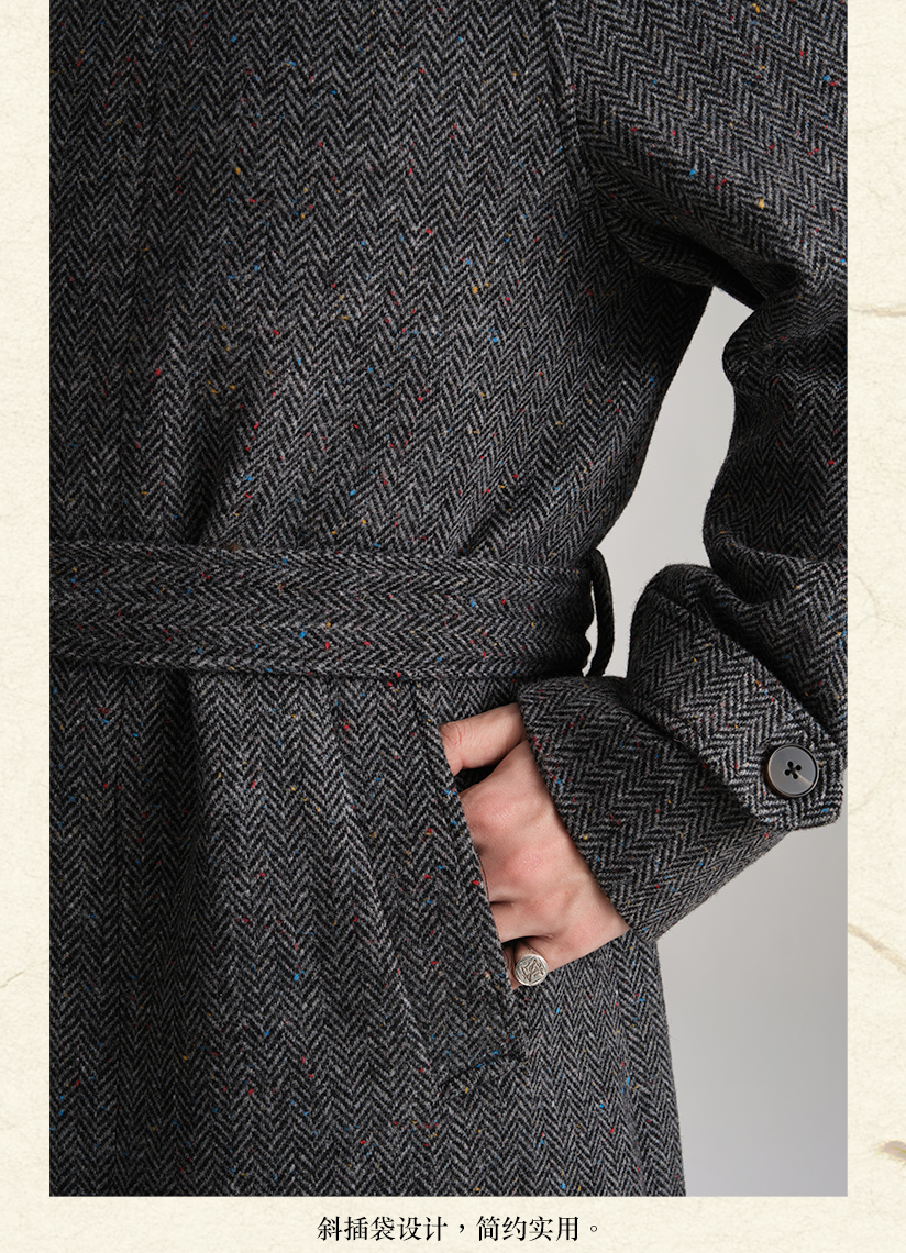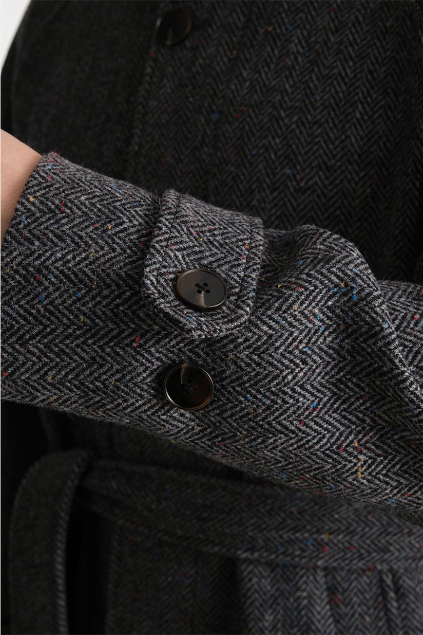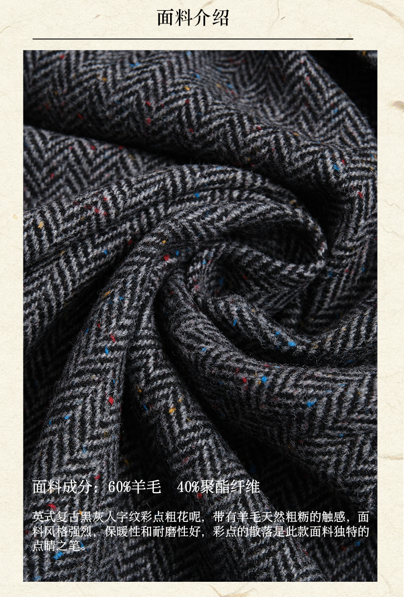 [60 Wool Balma Ken Coat] Flat Round Square Retro Dark Gray Herringbone Pattern Colorful Dot Tweed Coat