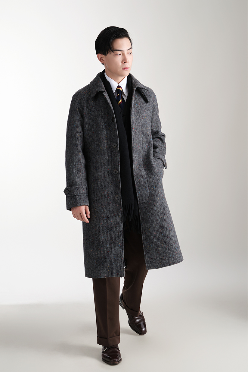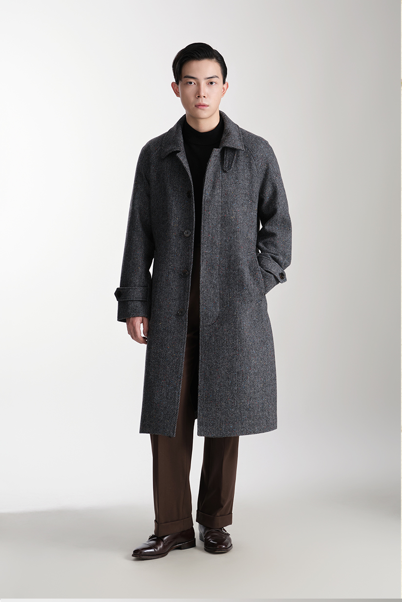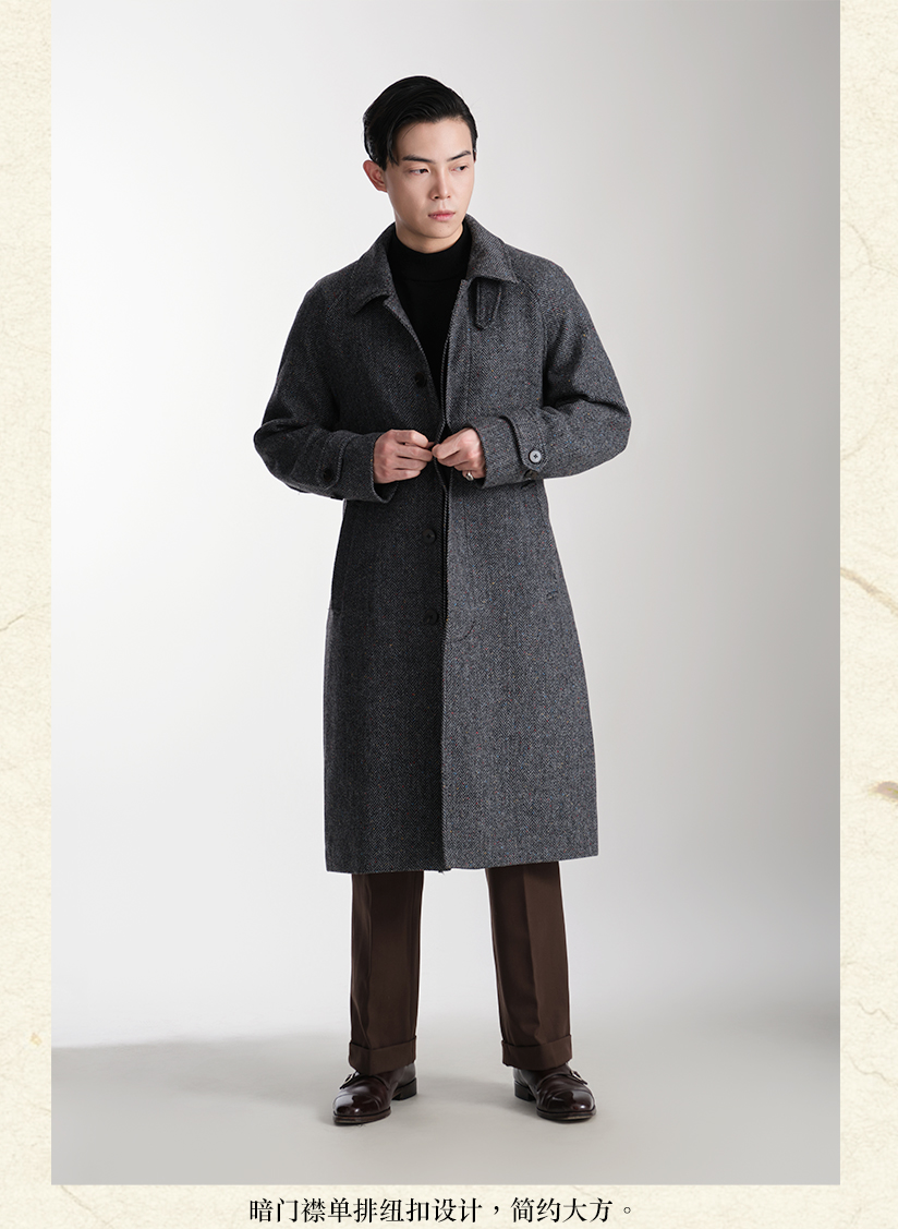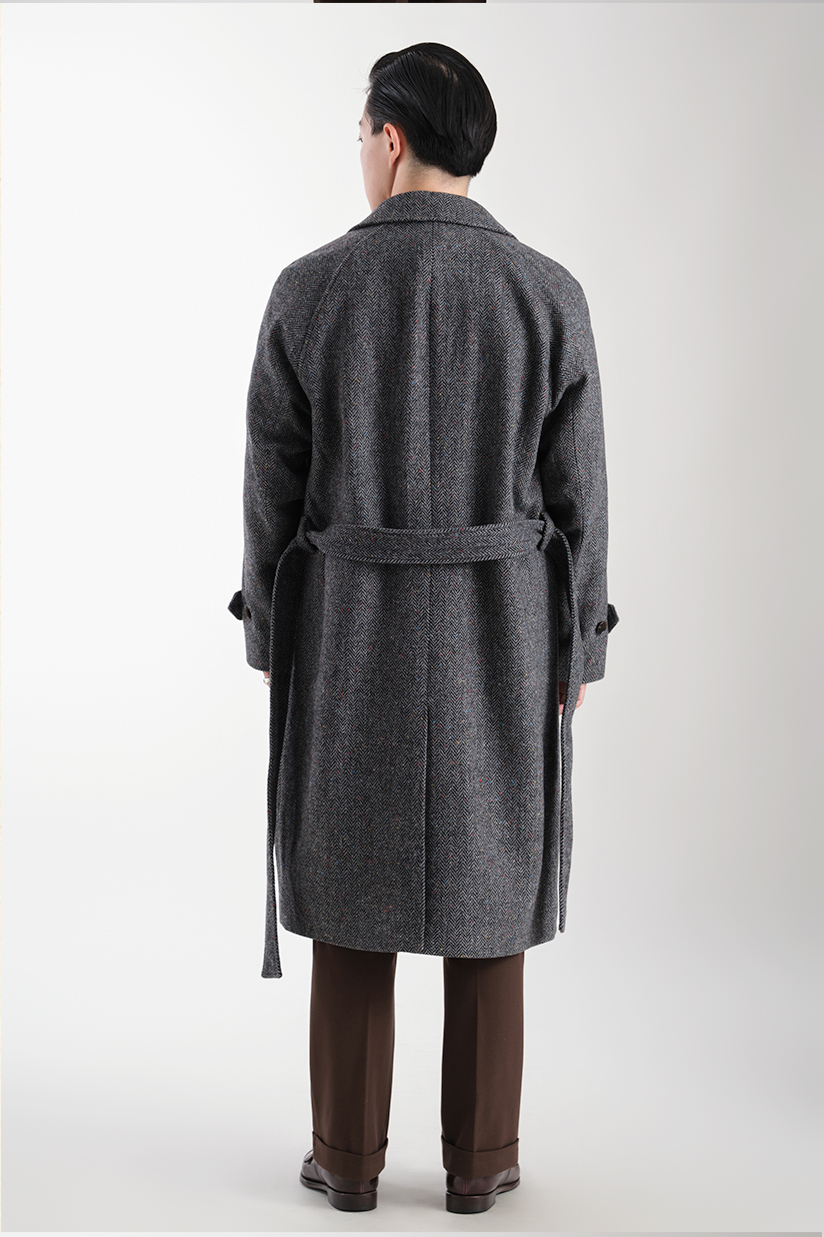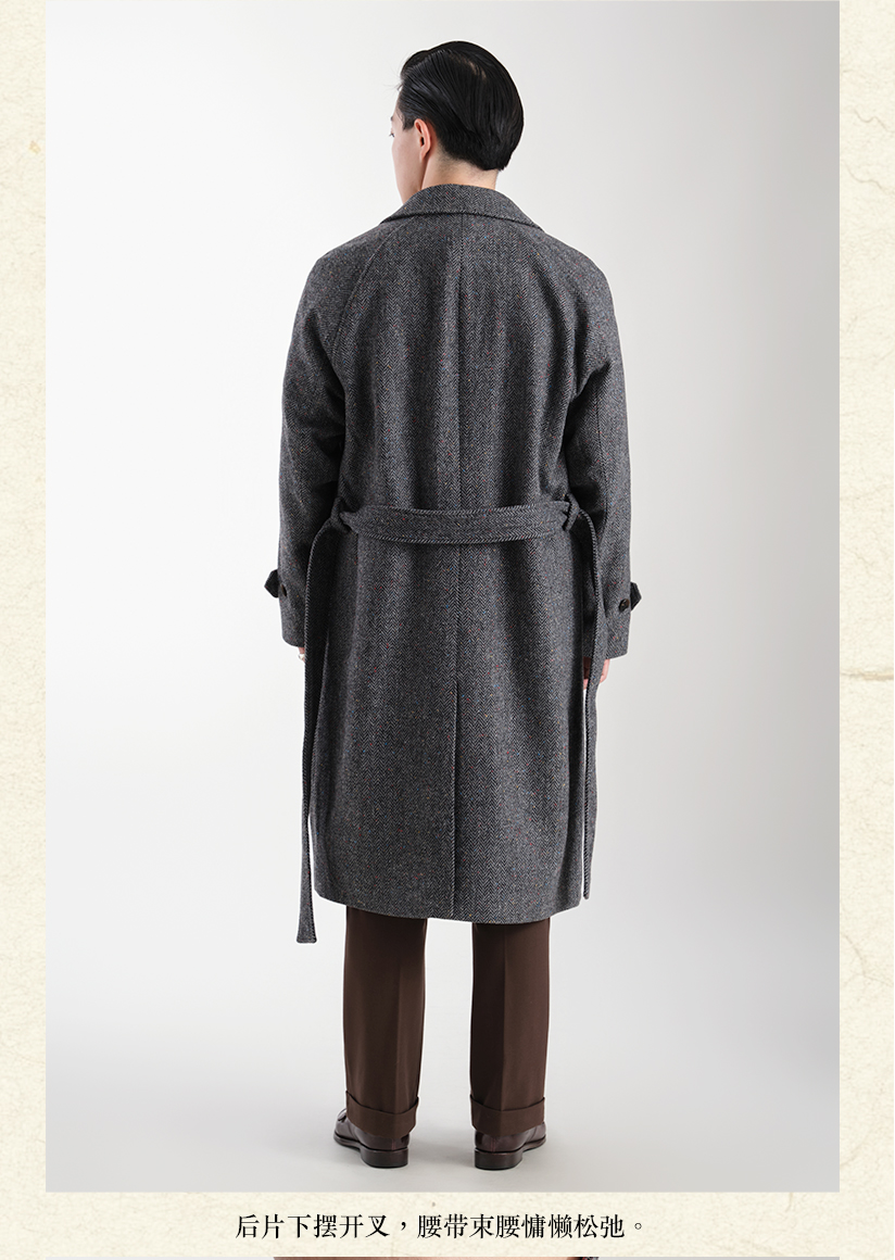 [60 Wool Balma Ken Coat] Flat Round Square Retro Dark Gray Herringbone Pattern Colorful Dot Tweed Coat