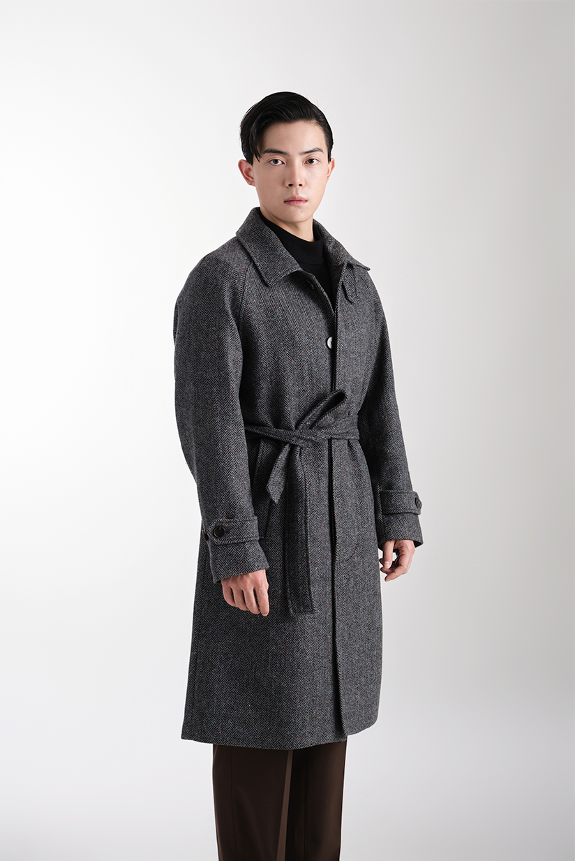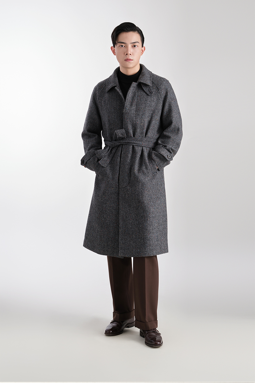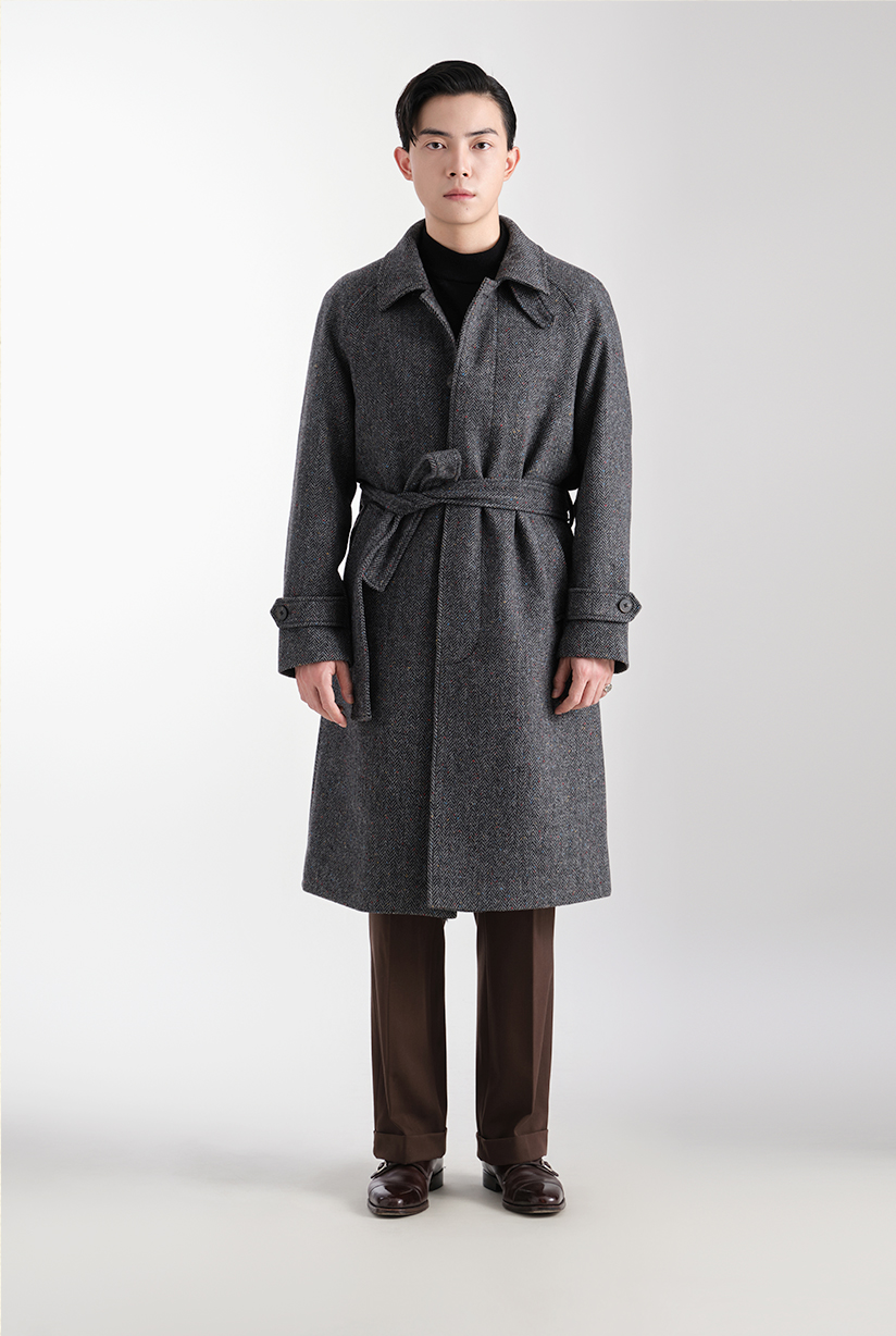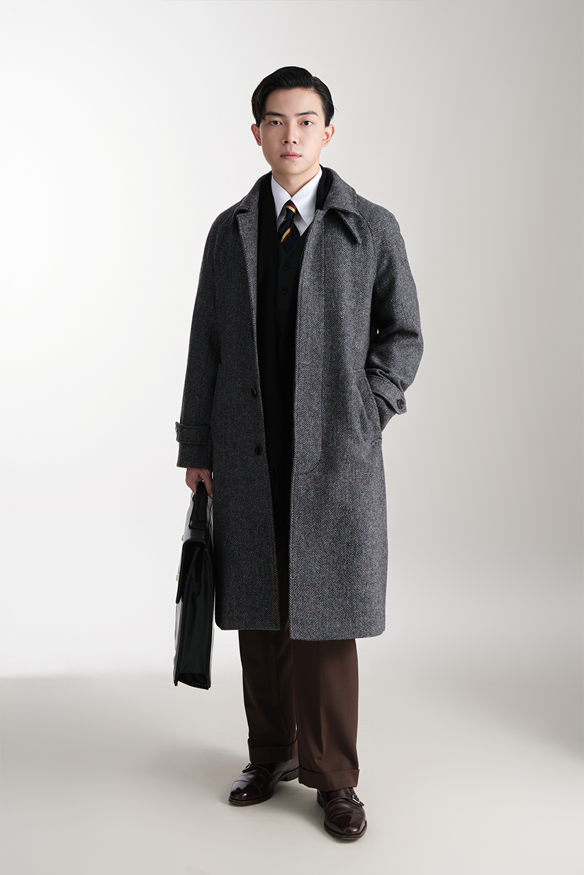 [60 Wool Balma Ken Coat] Flat Round Square Retro Dark Gray Herringbone Pattern Colorful Dot Tweed Coat