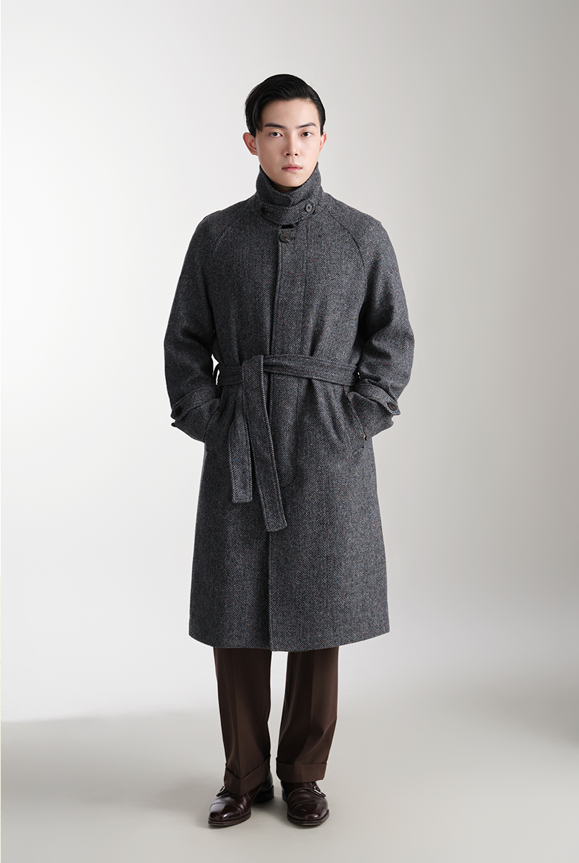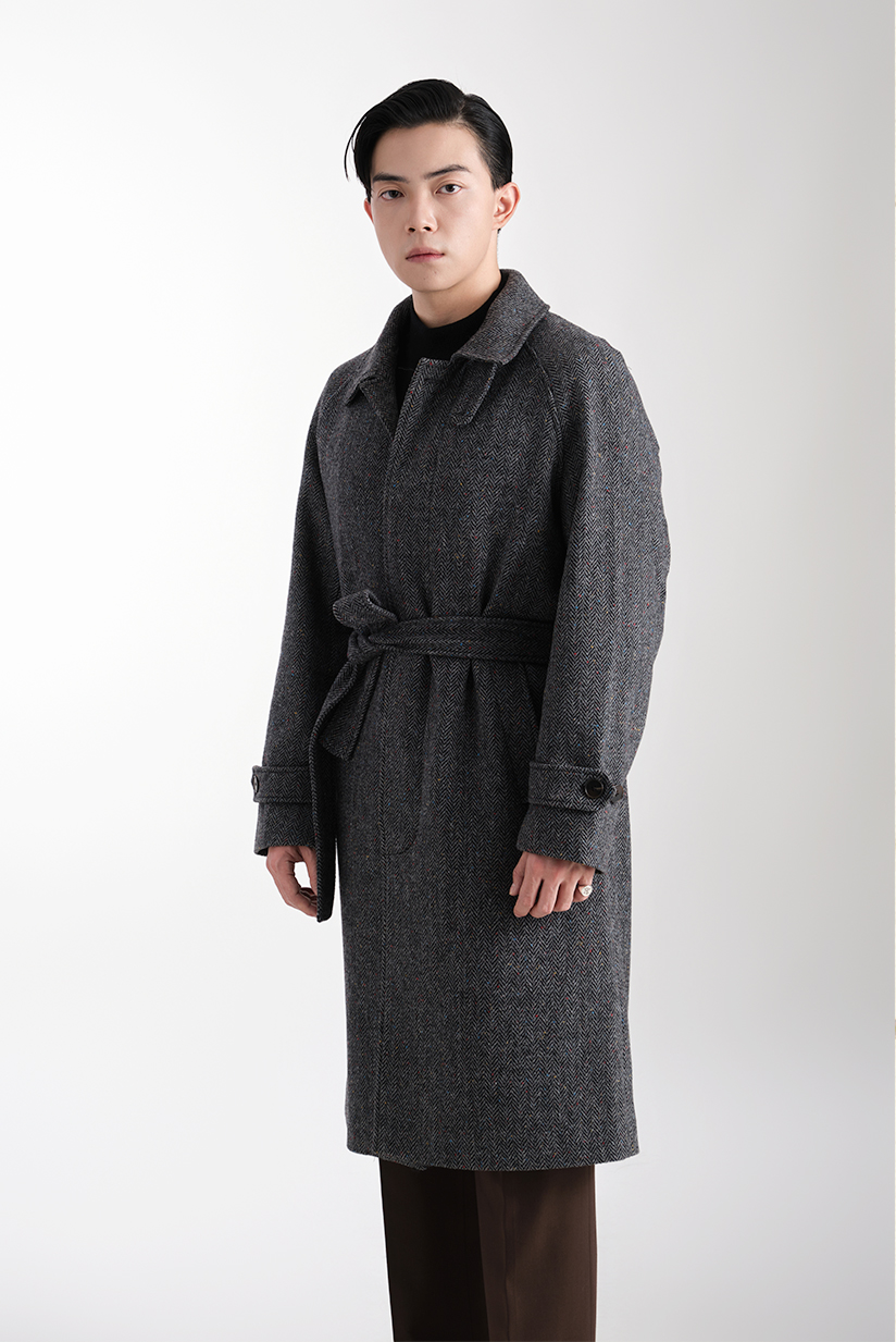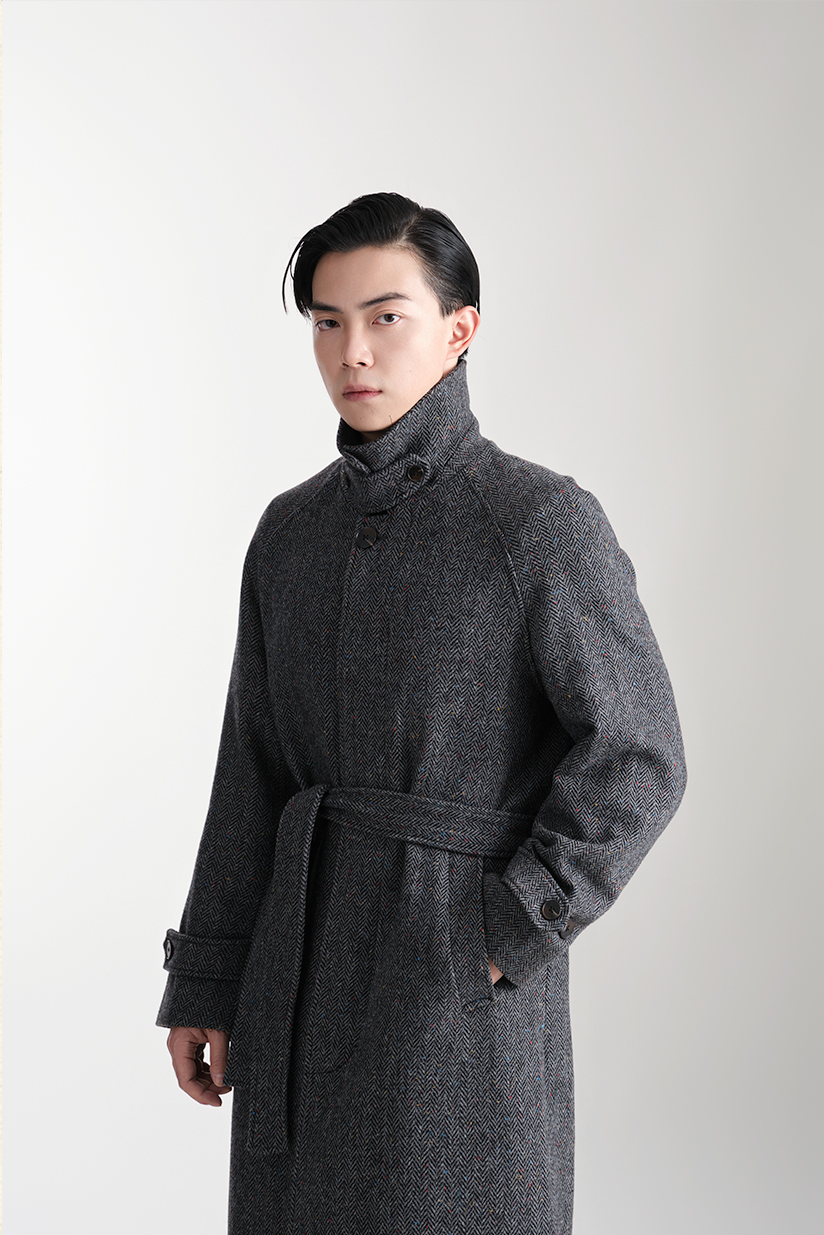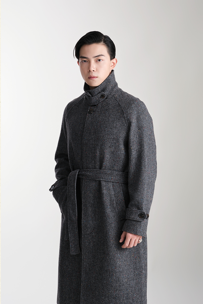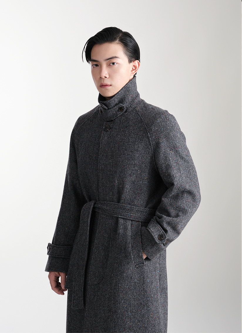 [60 Wool Balma Ken Coat] Flat Round Square Retro Dark Gray Herringbone Pattern Colorful Dot Tweed Coat