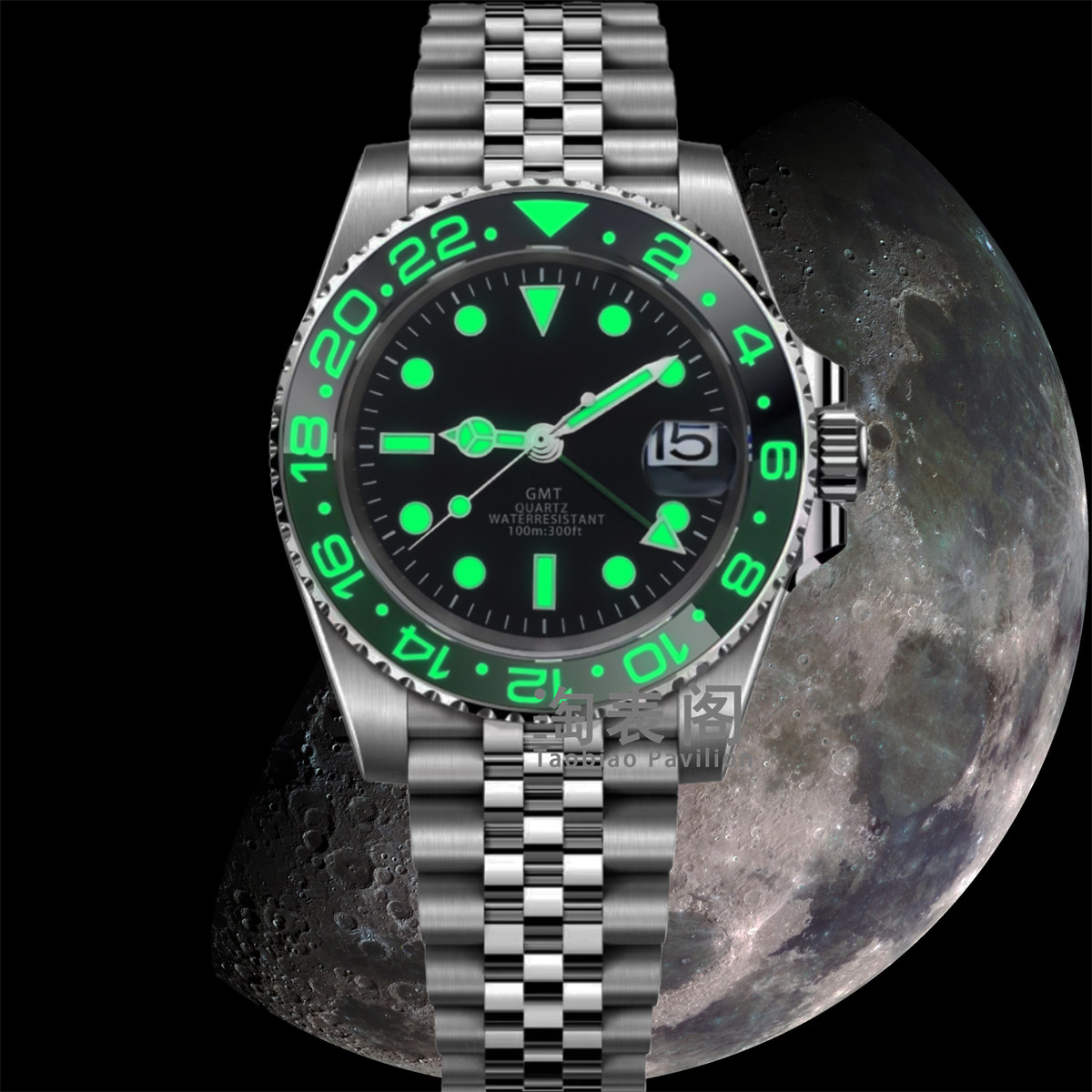 40mm Ronda 515 Watch Sapphire Glass 24-Hour Ceramic Luminous Bezel Men's Waterproof Watch Gmt