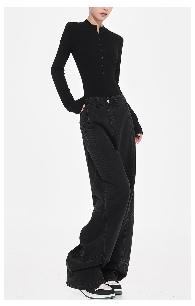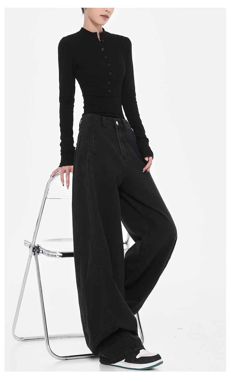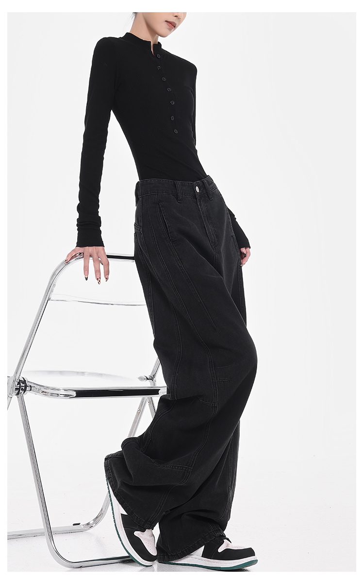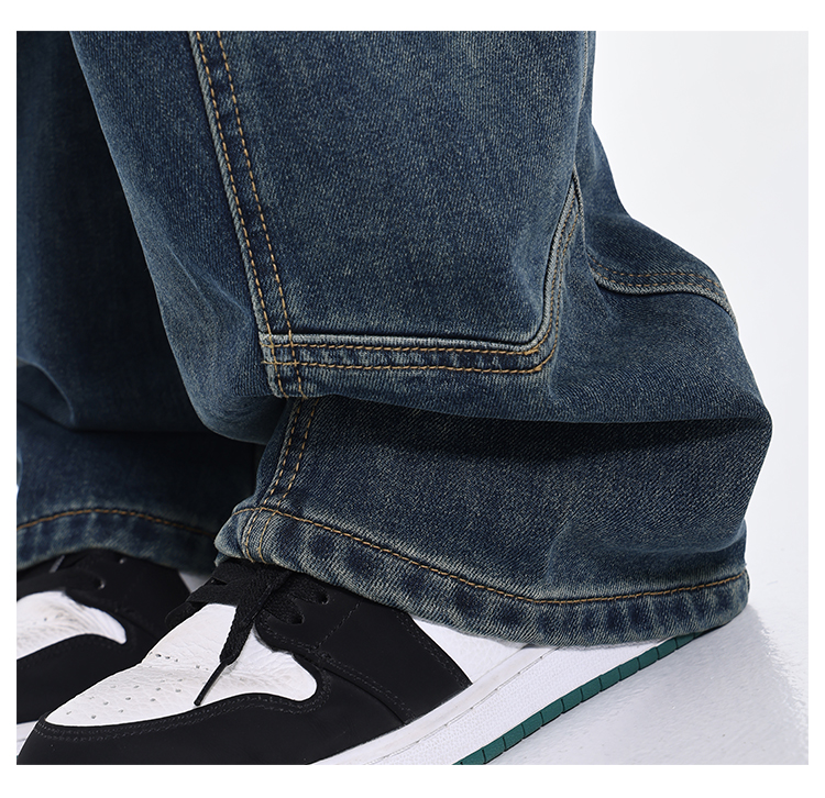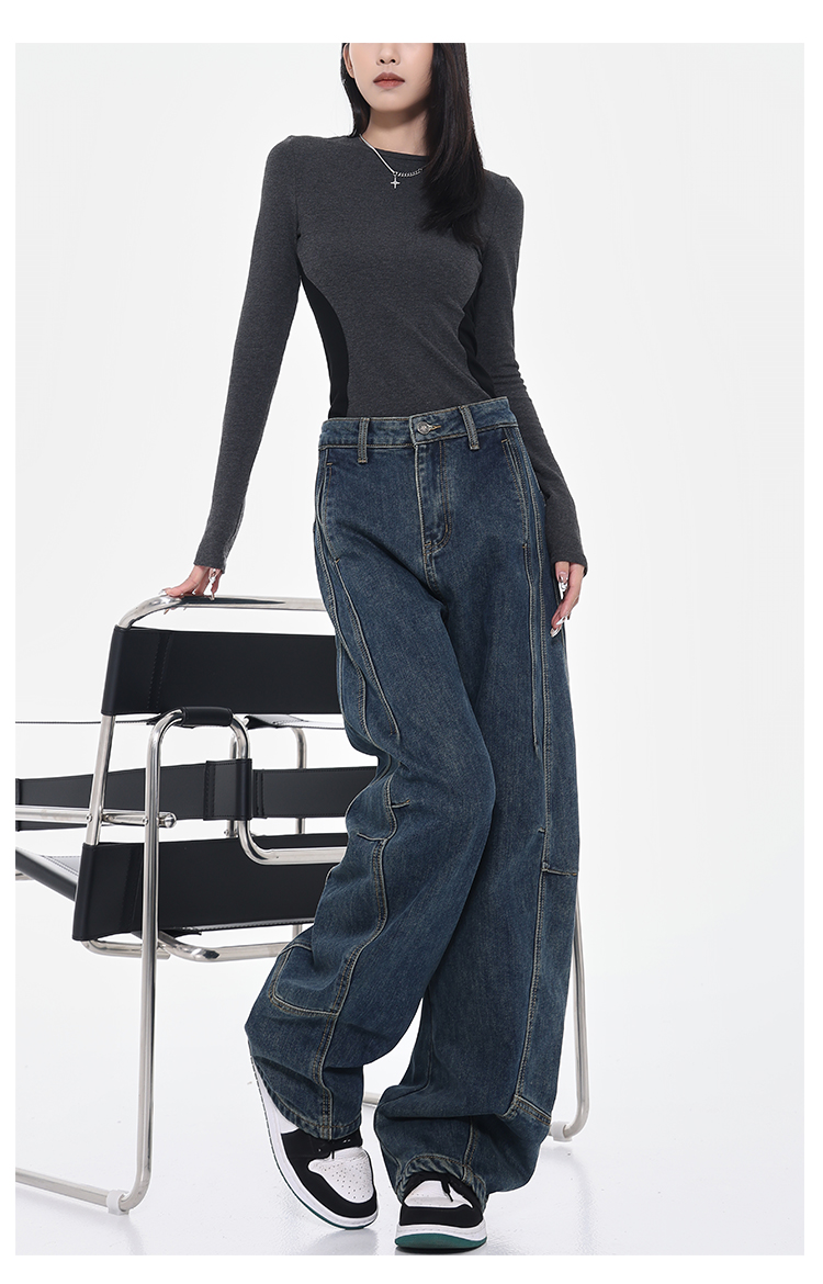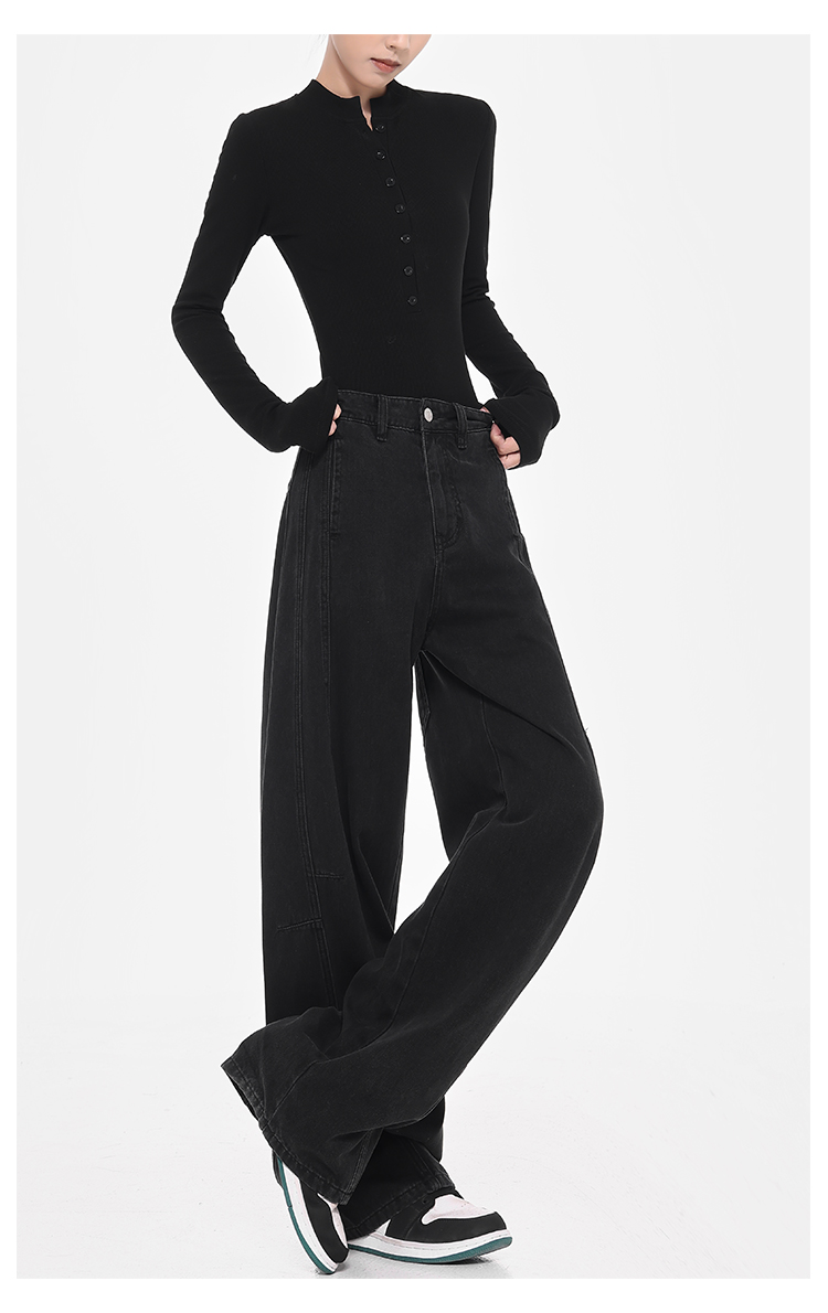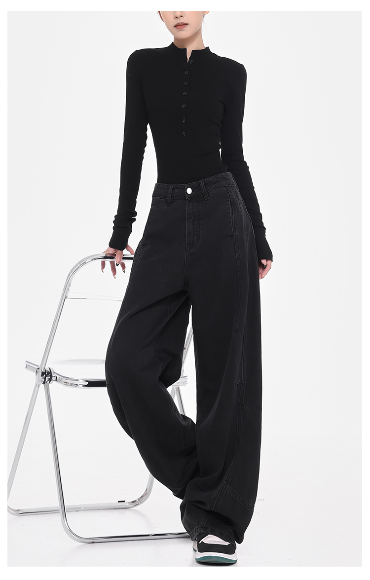 Ken Studio Autumn and Winter Fleece-Lined High-Street Design Scimitar Jeans for Women, Loose Wide-Leg Banana Pants, Sickle Pants