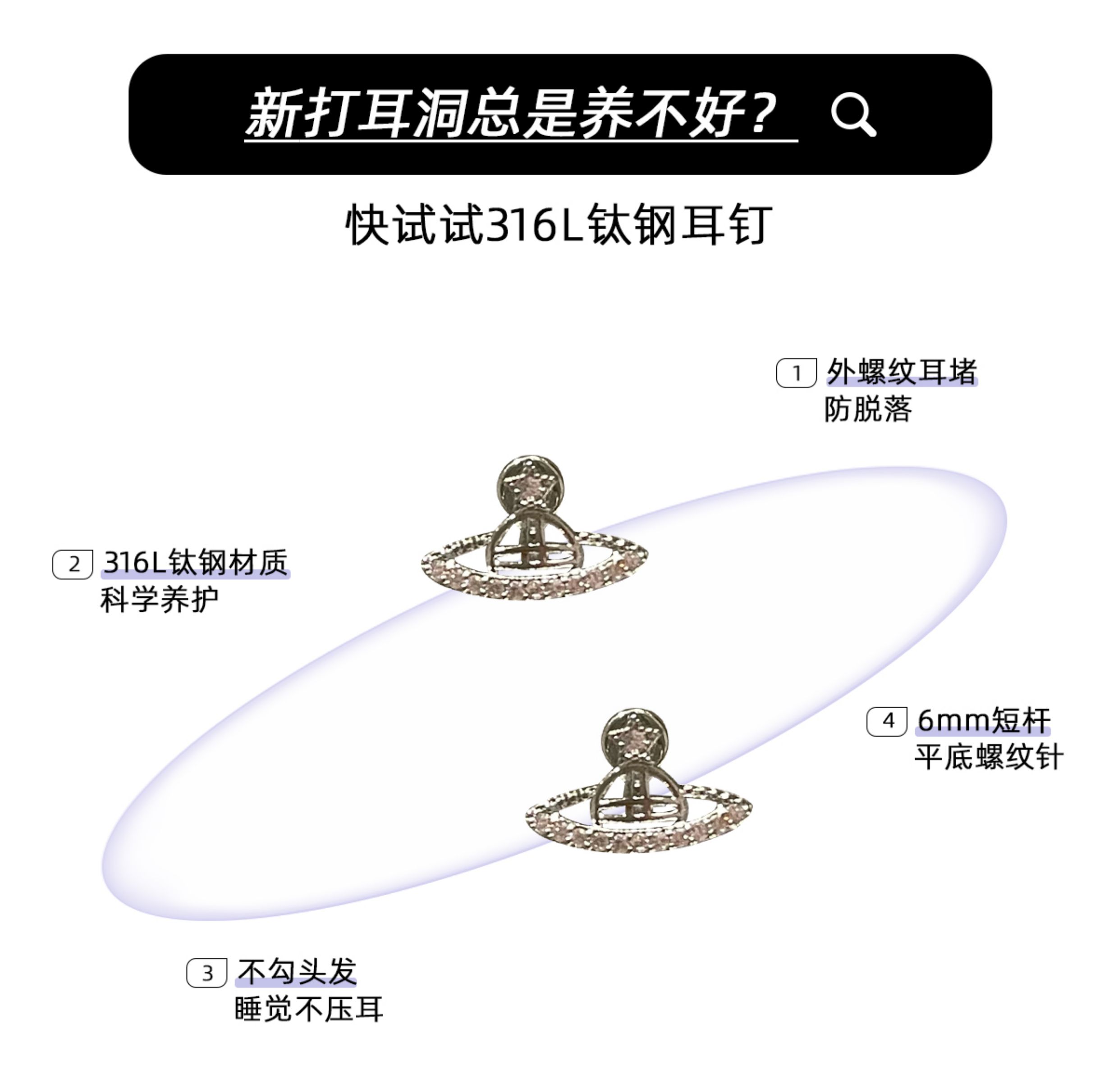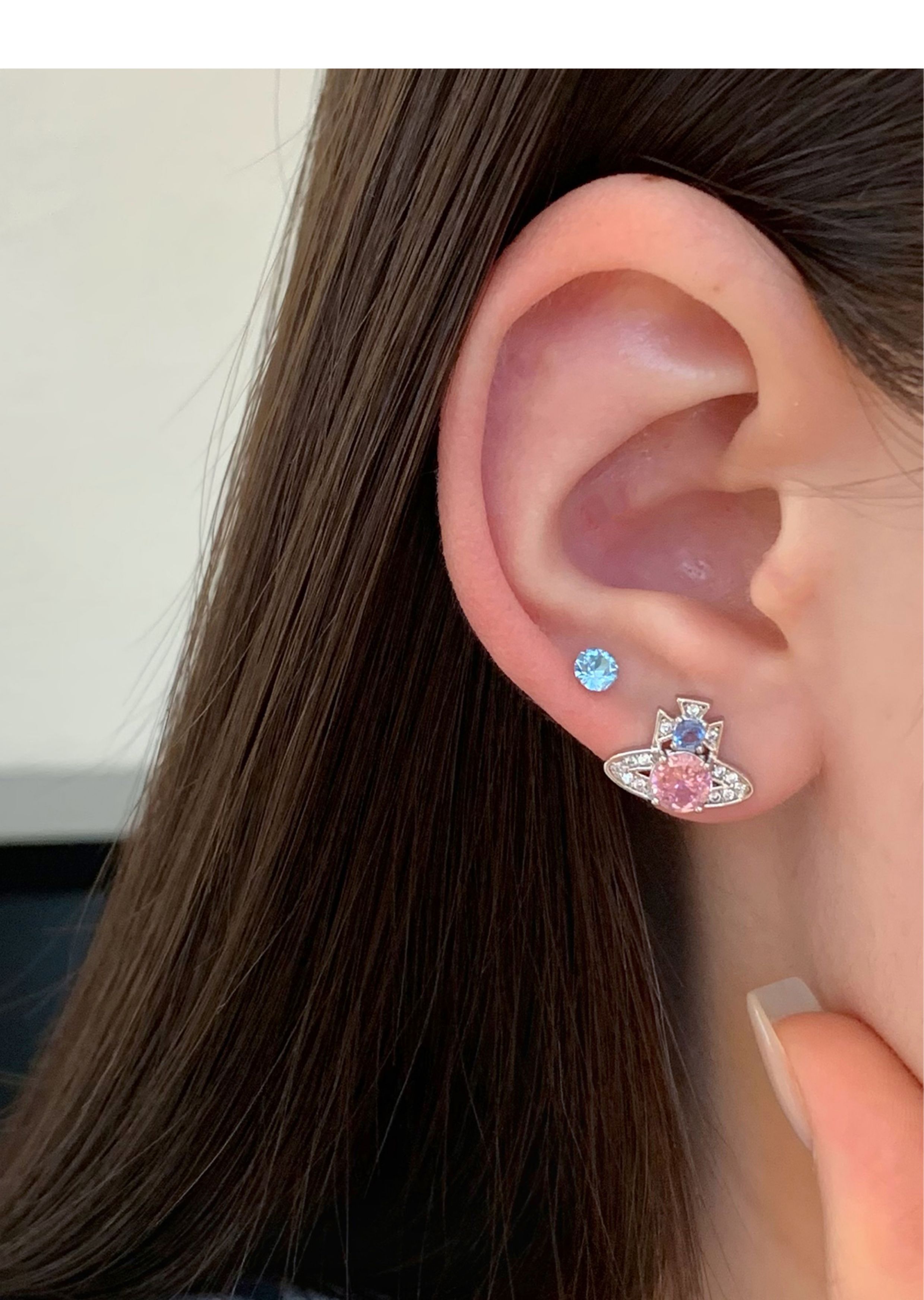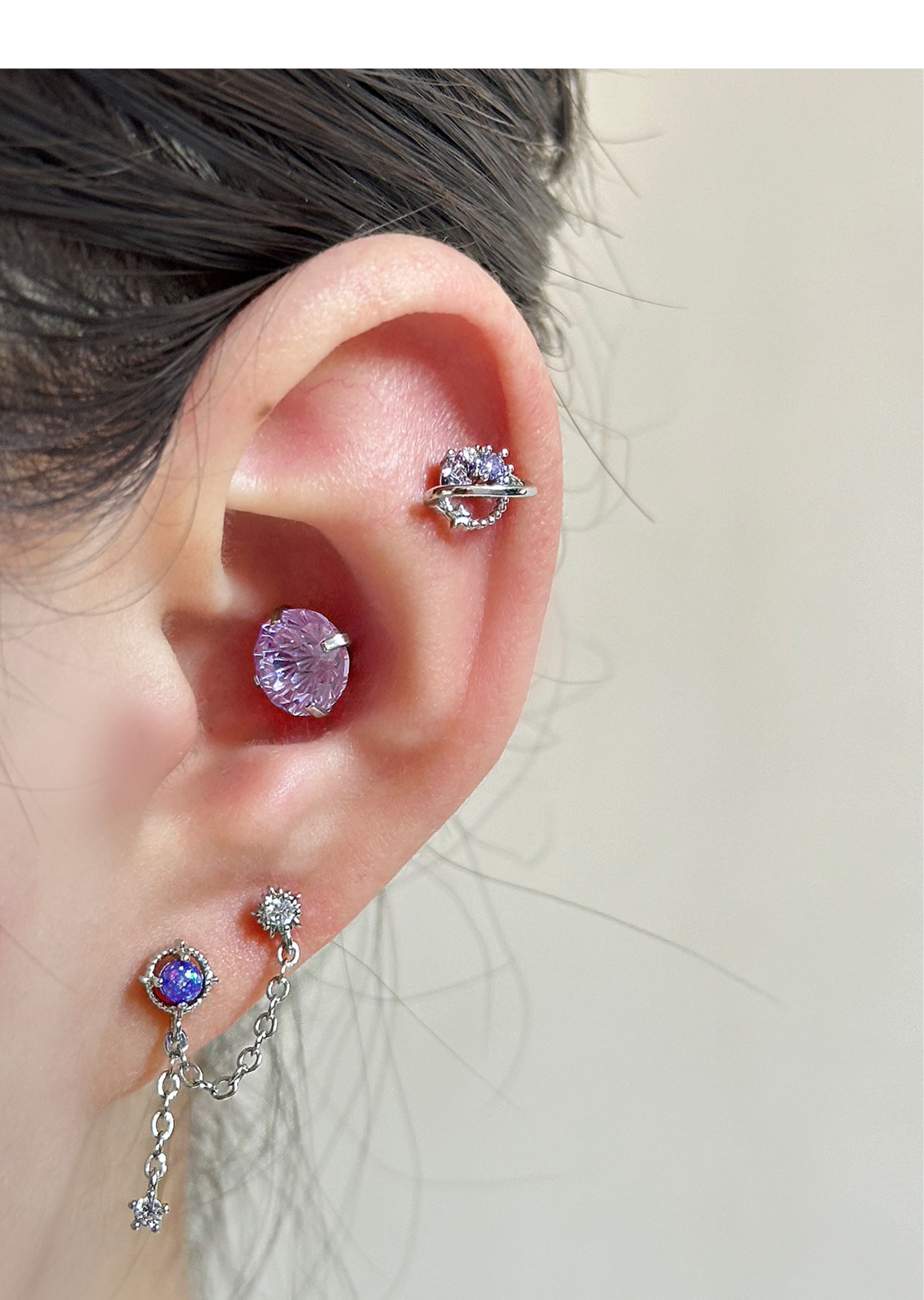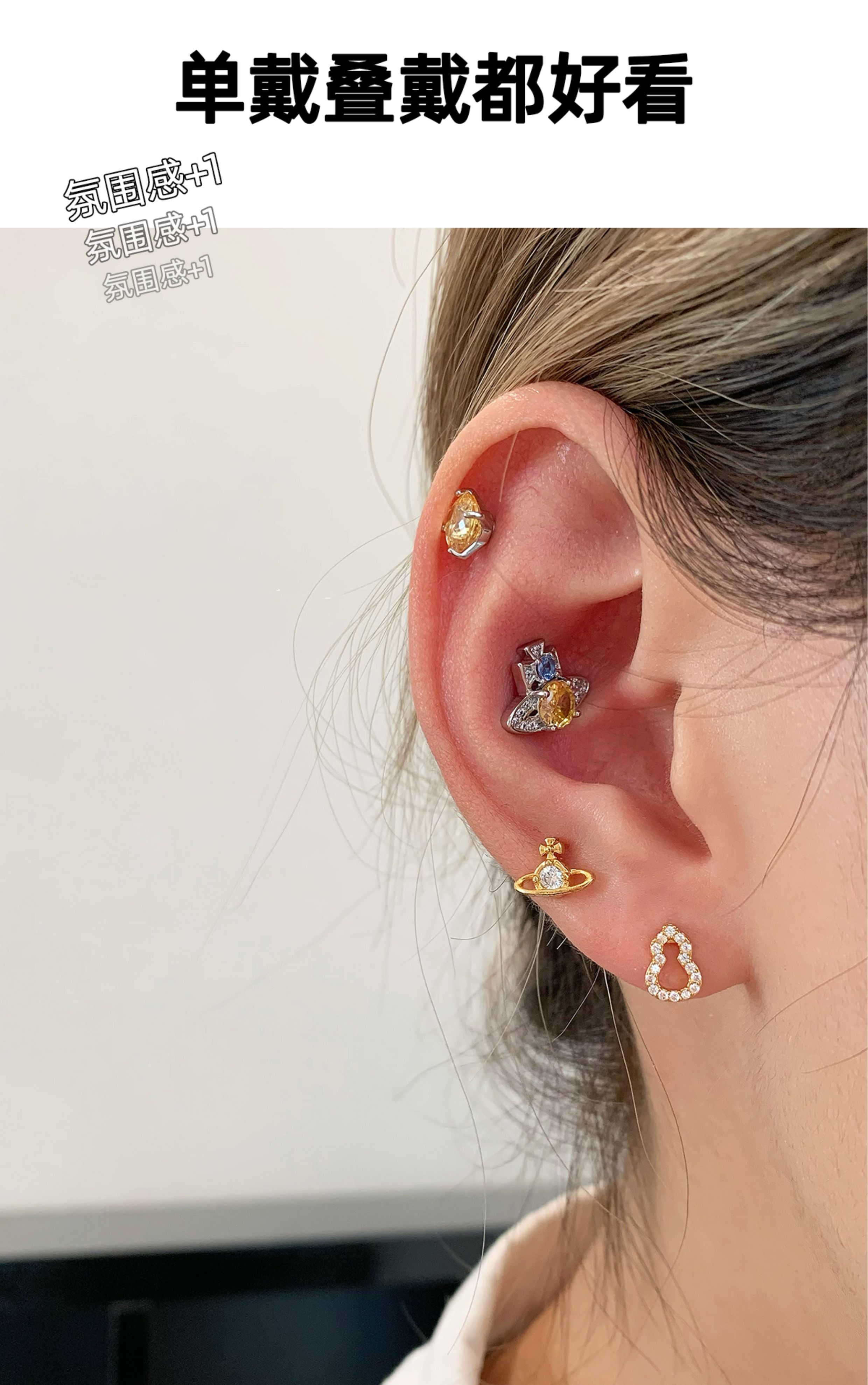 Ringring Store Saturn Earrings Medical Titanium Steel Small Ear Bone Studs Western Empress Medical Titanium Alloy Cochlear Studs for Women