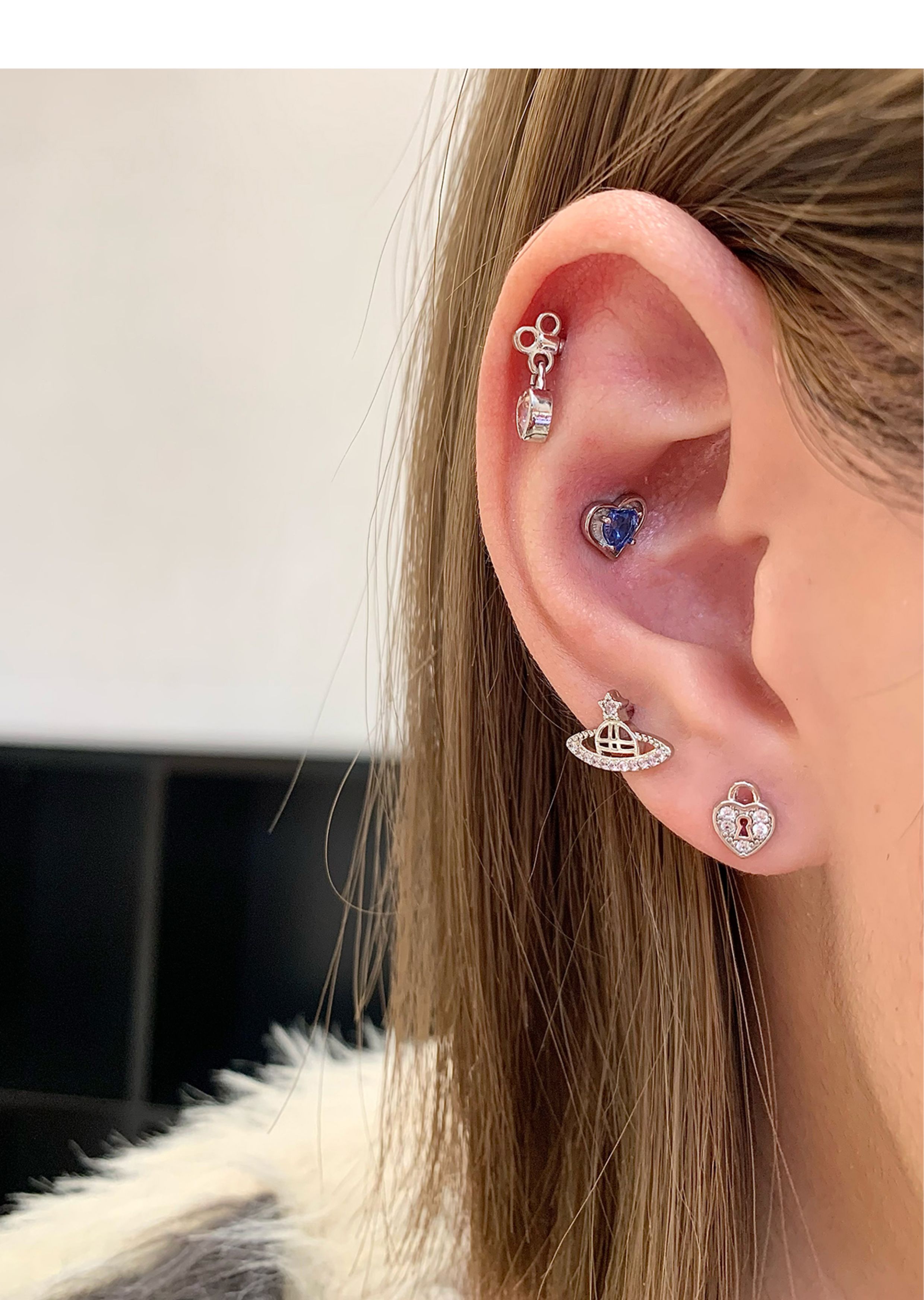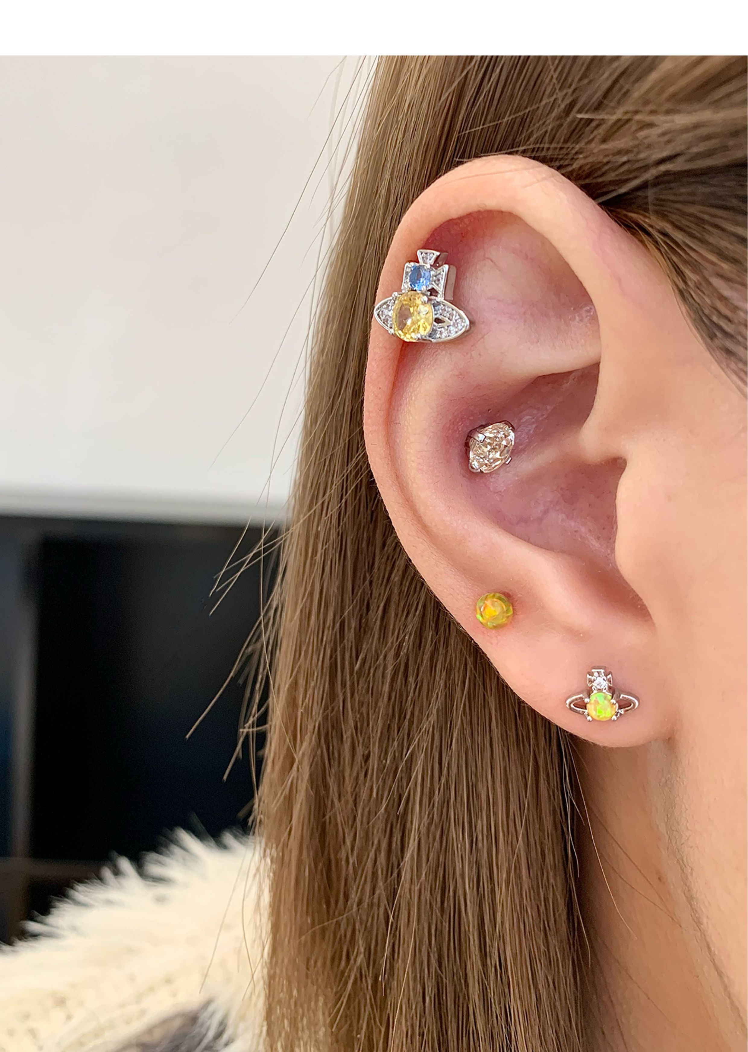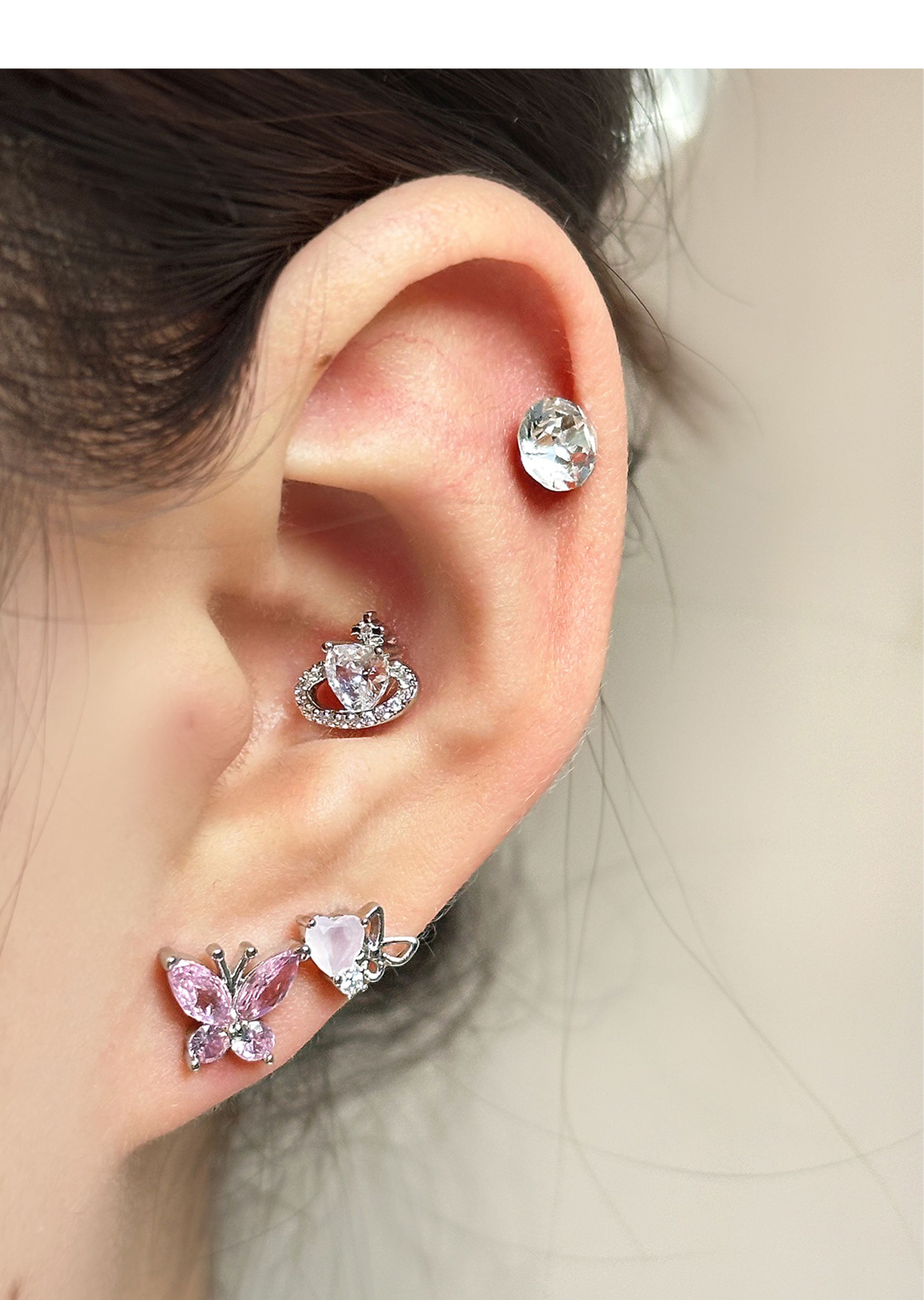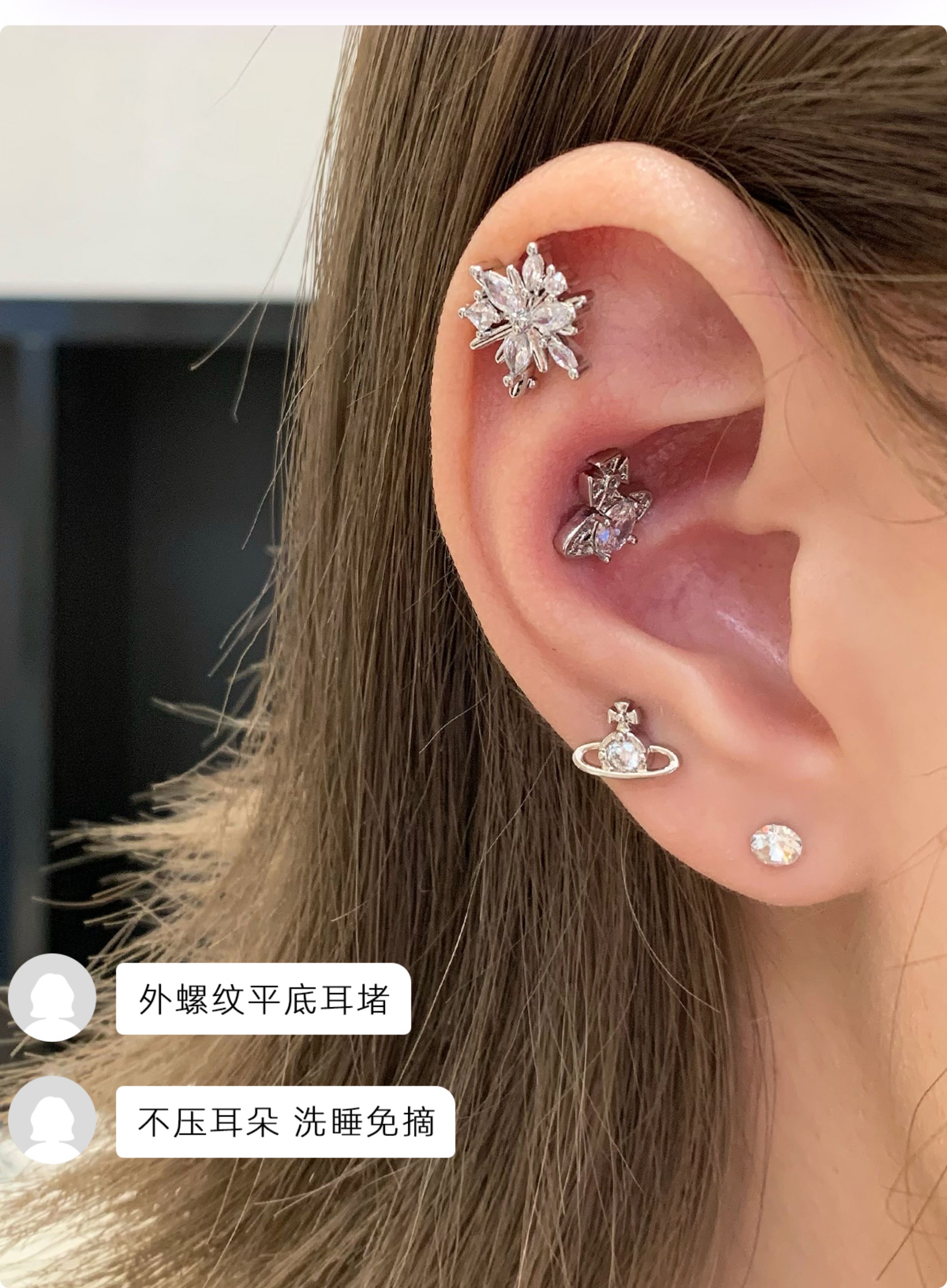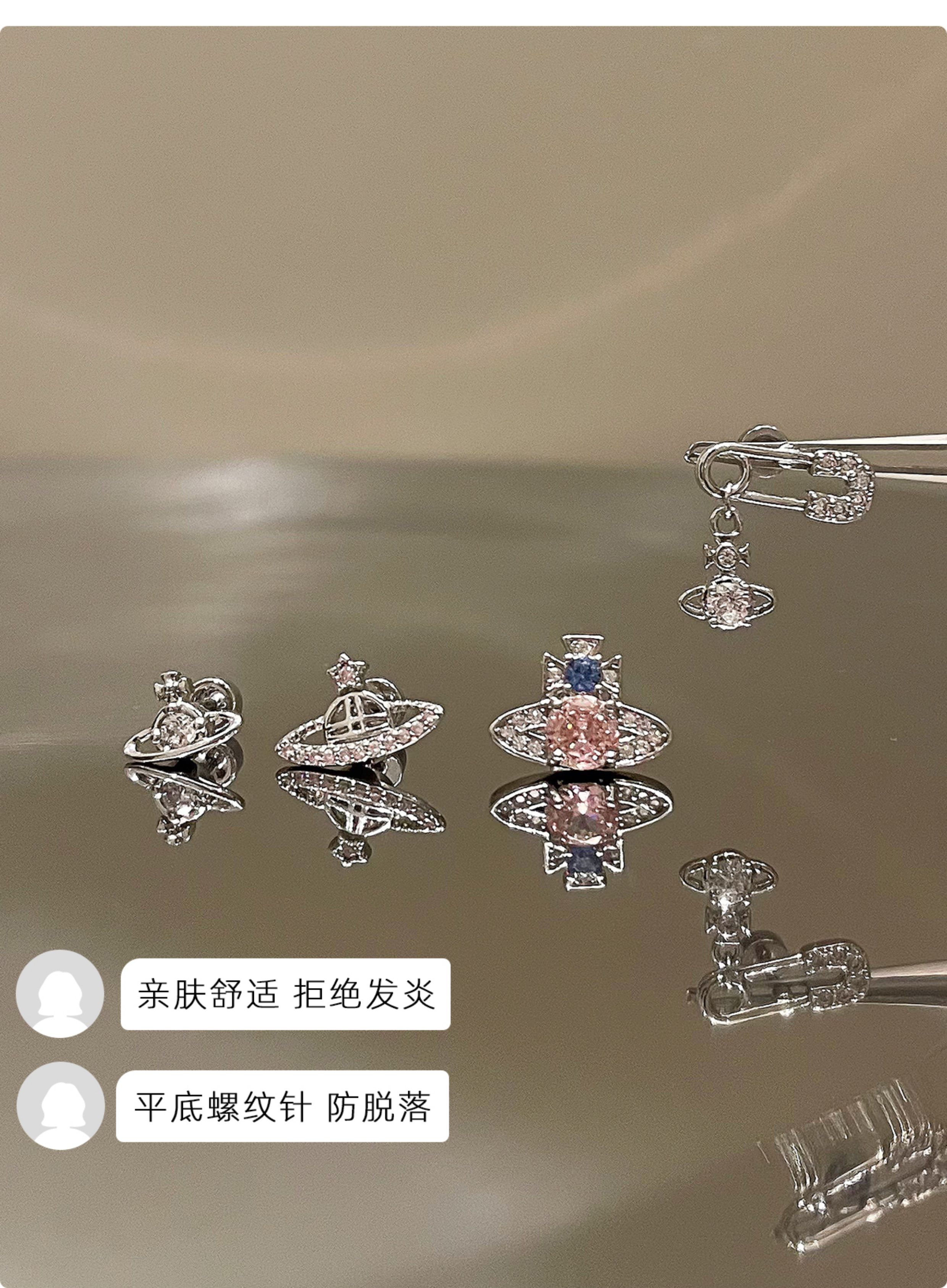 Ringring Store Saturn Earrings Medical Titanium Steel Small Ear Bone Studs Western Empress Medical Titanium Alloy Cochlear Studs for Women