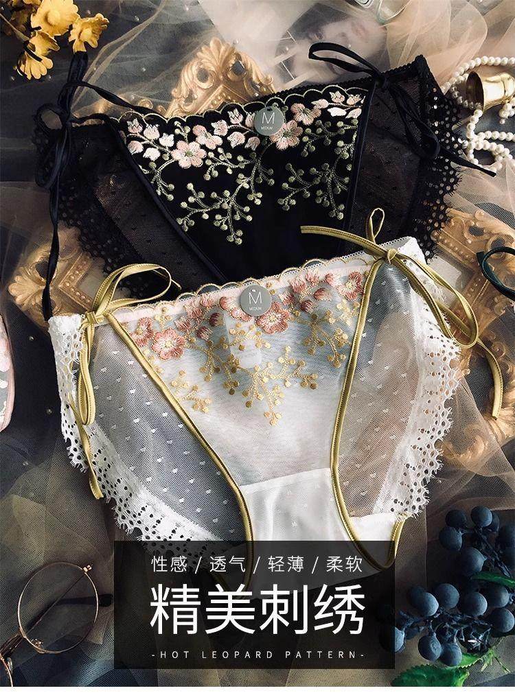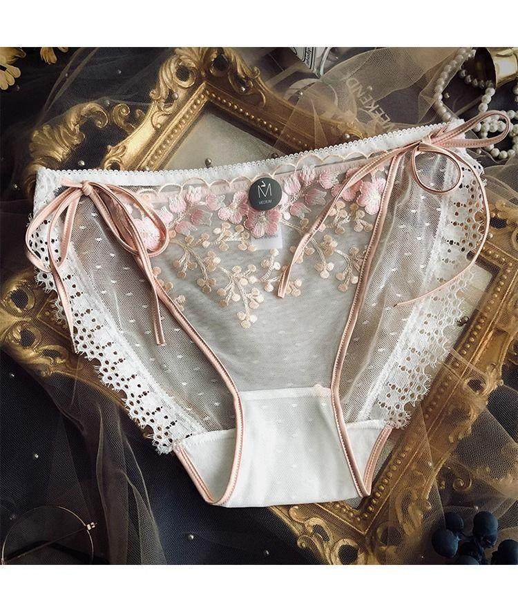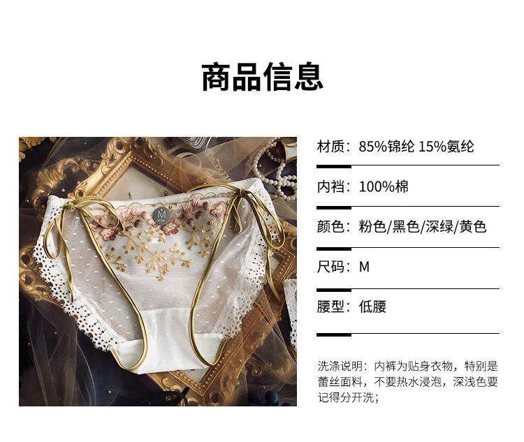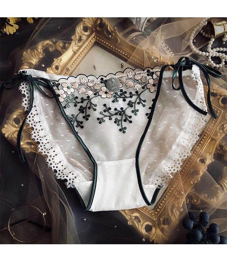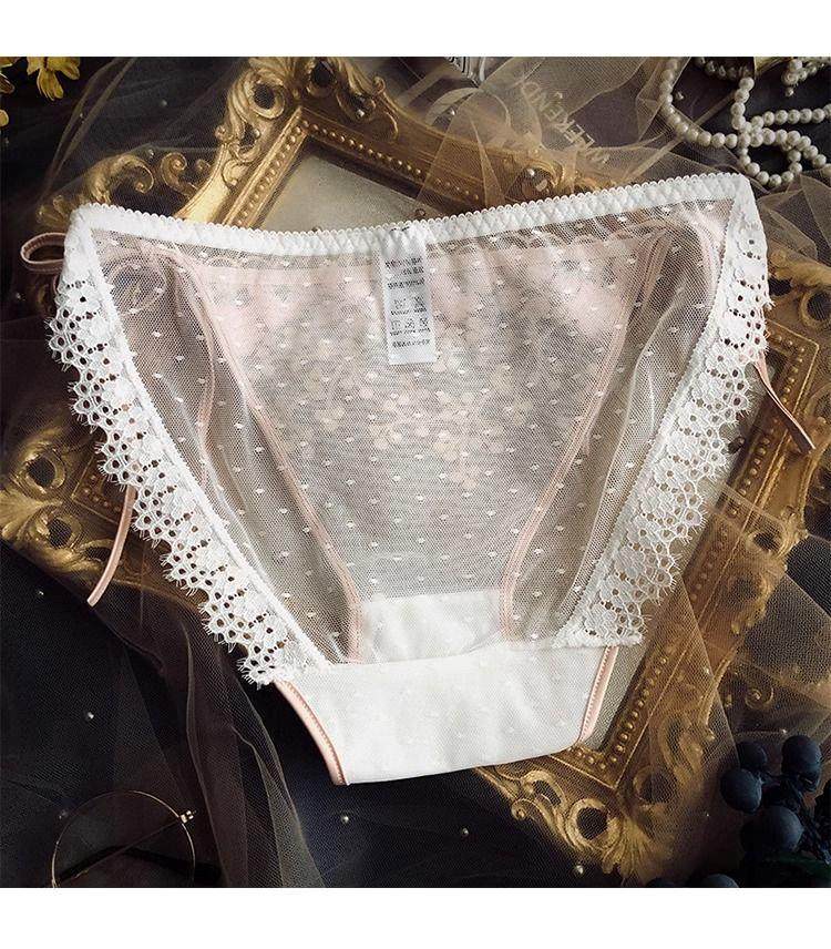 Sexy Lace-Trimmed Mature Style Panties for Women, Mesh Comfortable Cotton Crotch Girl's Briefs