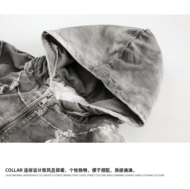 Wukong Has in Stock American High Street Wasteland Style Washed Hooded Cotton Jacket for Men, Winter Trendy Niche Brand Warm Casual Cotton Coat